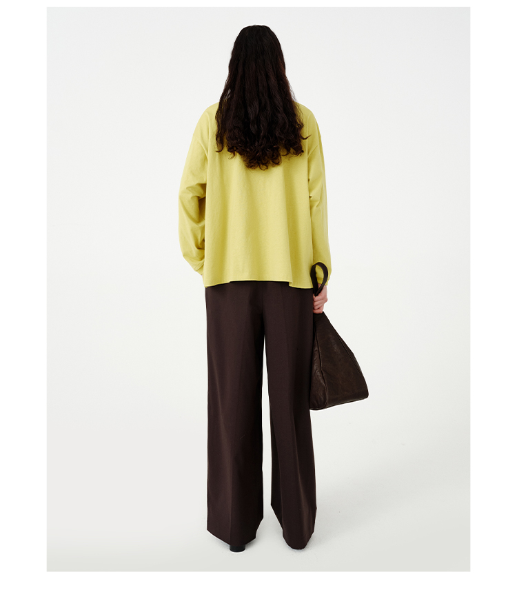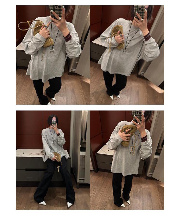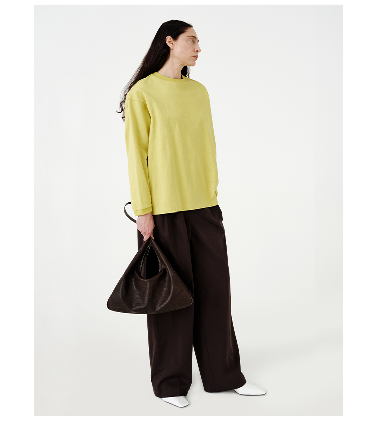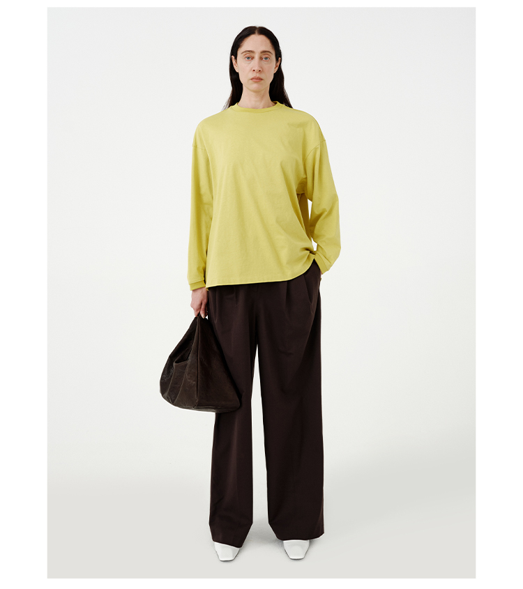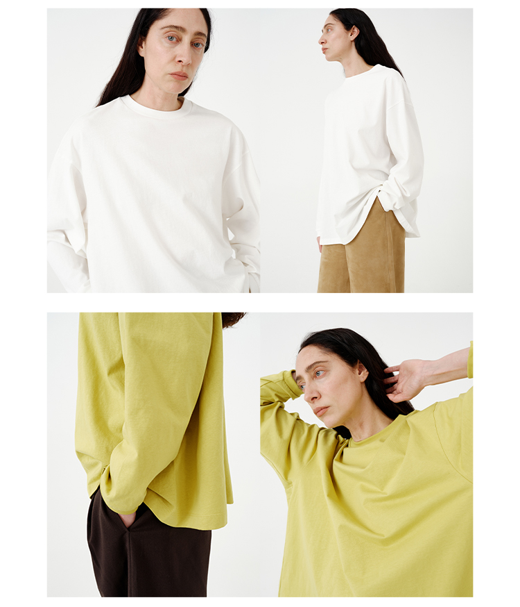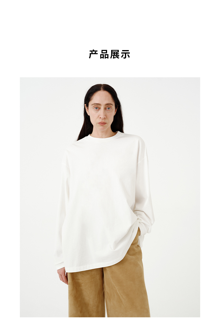 HIDEMI 【当当同款】极简圆领廓形落肩款oversize长袖基础款宽松t恤 奶油青柠绿/黑色/白色/浅灰