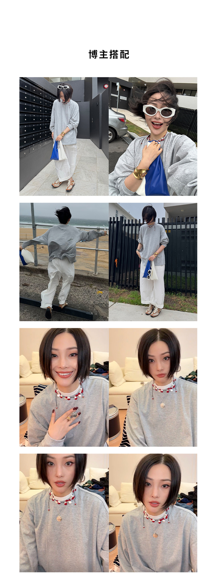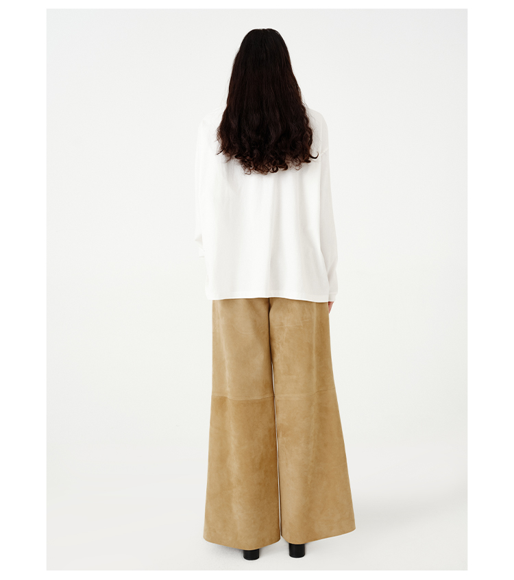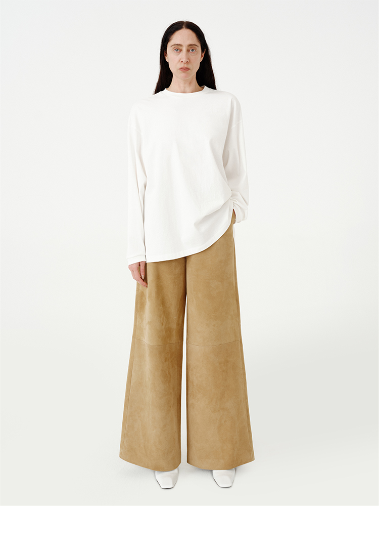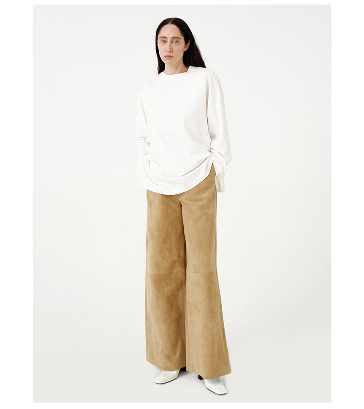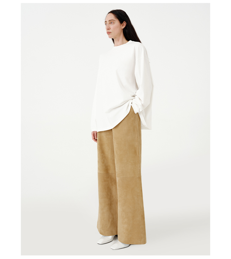 HIDEMI 【当当同款】极简圆领廓形落肩款oversize长袖基础款宽松t恤 奶油青柠绿/黑色/白色/浅灰