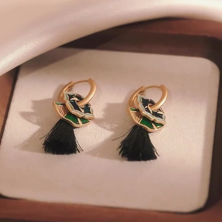 【明星同款❗️时尚百搭】新中式国潮珐琅滴釉扇子耳坠耳环女小众高级设计一款多戴彩绘耳饰。jc