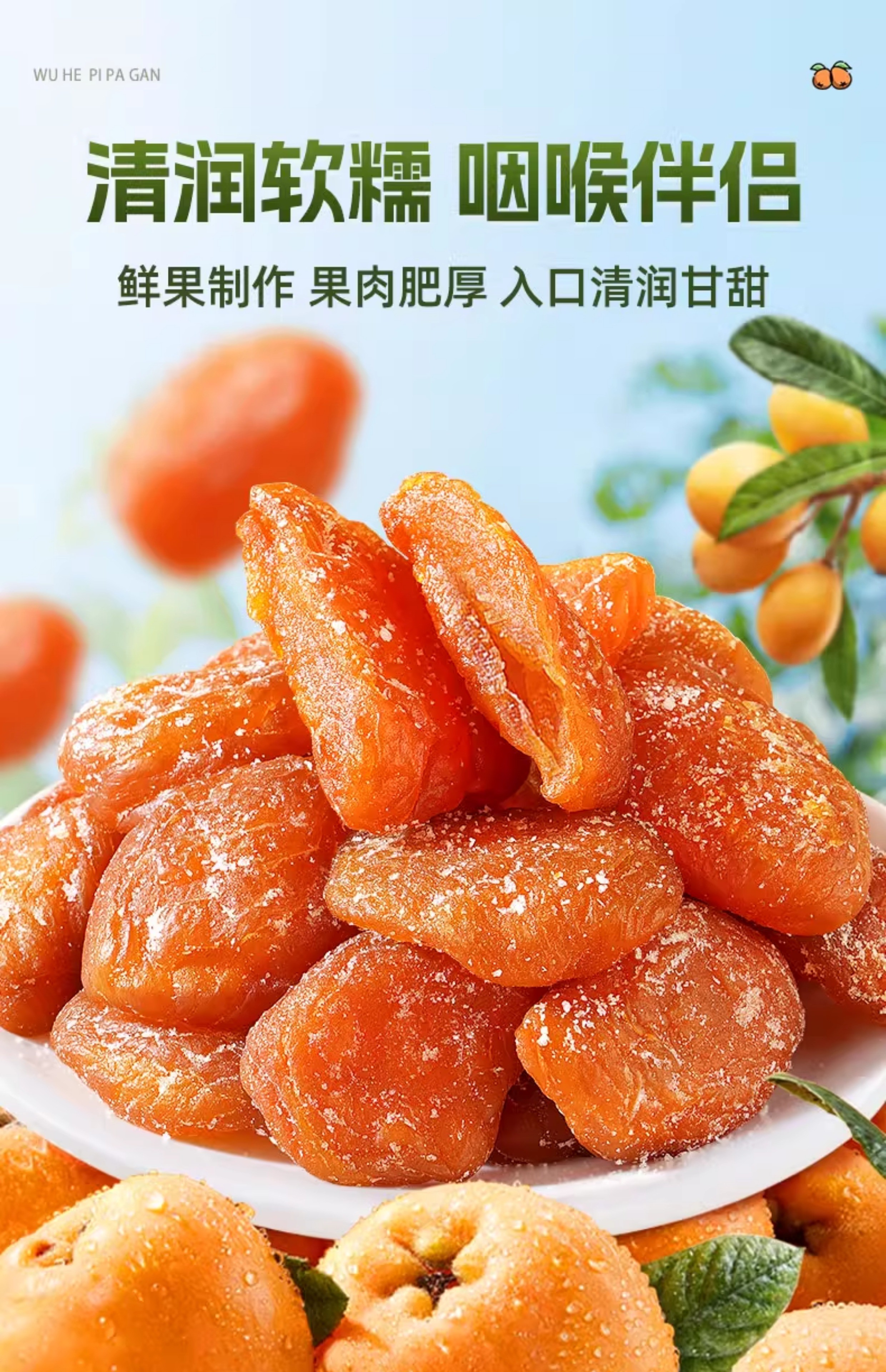 嗓子舒服!不添加蔗糖、防腐剂、香精、色素竹盐枇杷干 250g/袋 鲜果烘干