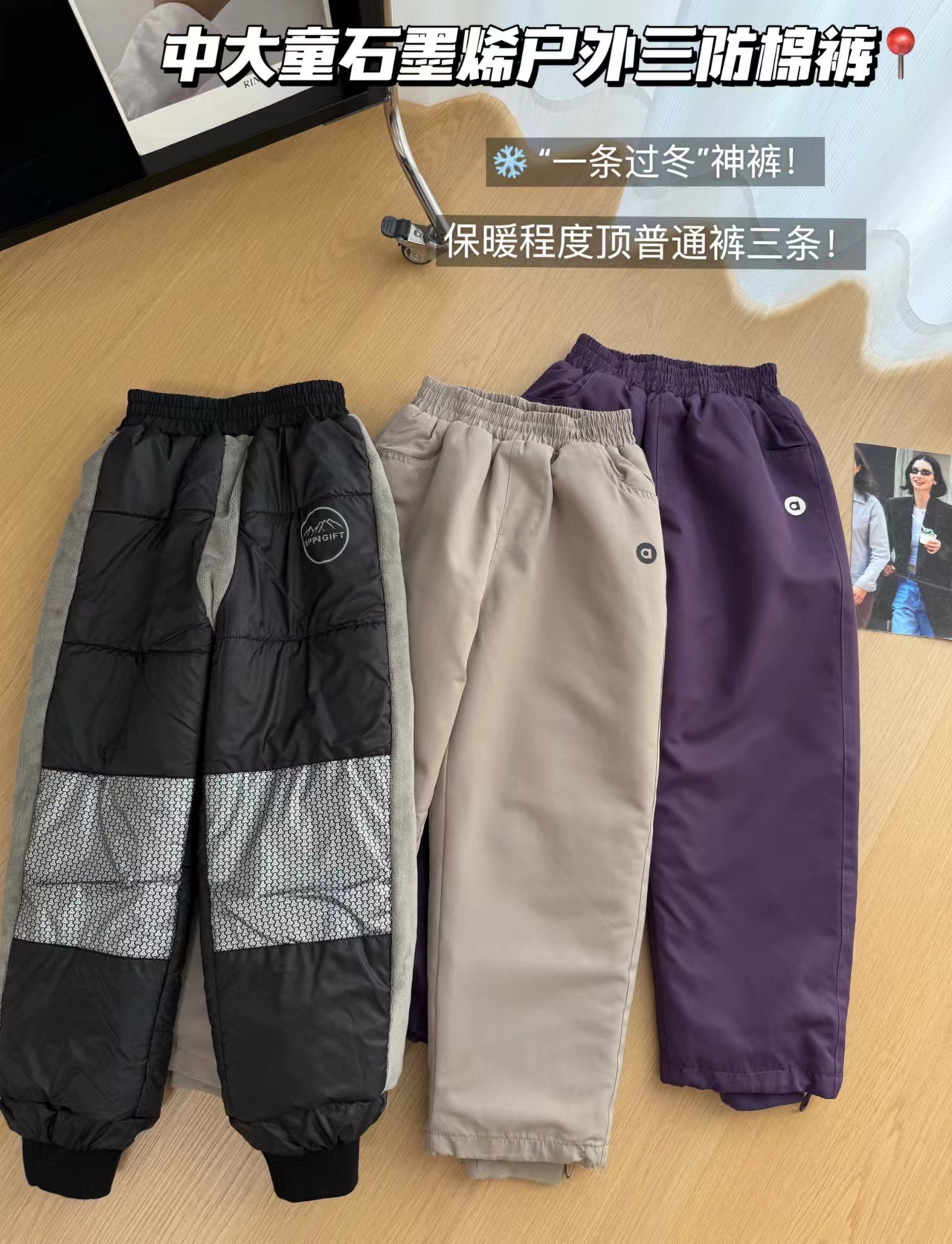 冬日里的小暖炉,断崖式降温Bi囤 【石墨烯户外三防棉裤】三防科技石墨烯工艺+加厚太空棉,保暖性杠杠的!捏在手里全是暖,零下十几度穿都不冻腿,不用在左一层又一层的,巨好穿!上身轻盈又保暖,厚而不笨重,娃在户外撒欢儿也能暖暖和和,这种实用又舒服的神裤,必须给娃安排上!