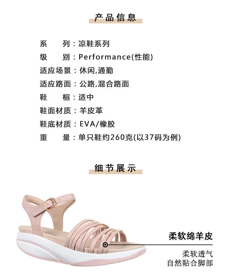 MBT足健康鞋女厚底 凉鞋拉伸小腿 足弓支撑增高抗菌吸汗羊皮 KAWERIA