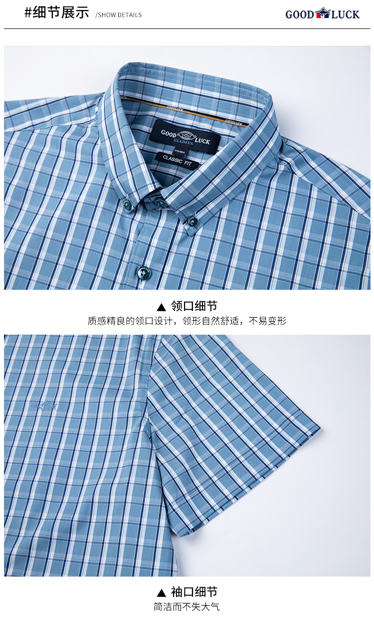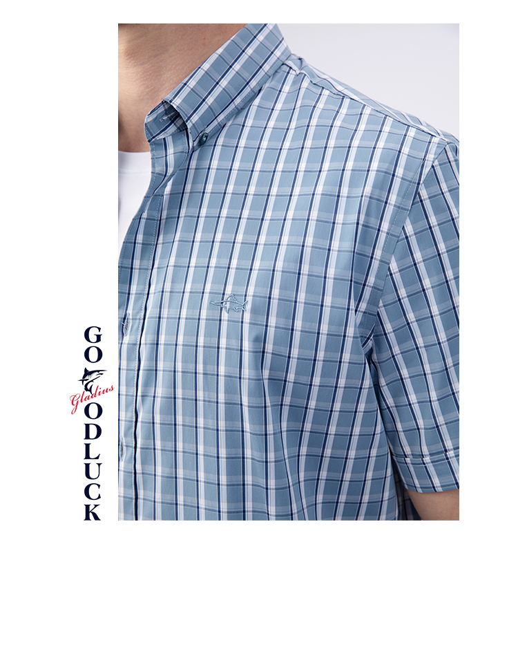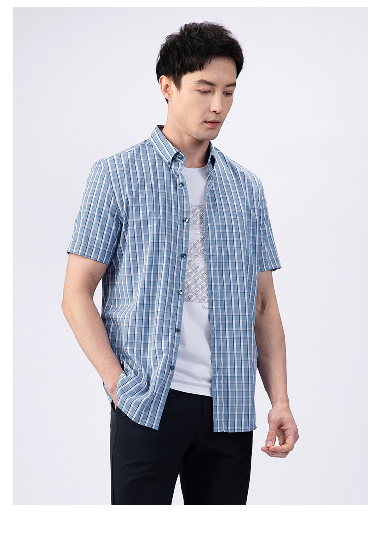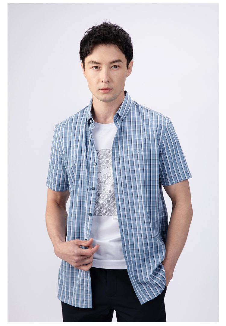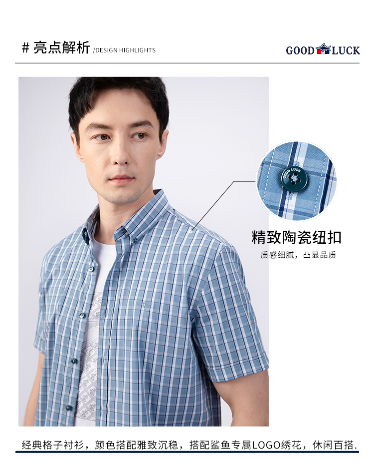 GOOD LUCK/德鲨竹纤维混纺抗菌吸湿格纹短袖衬衫LY21421-832