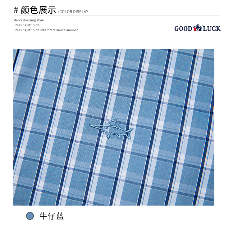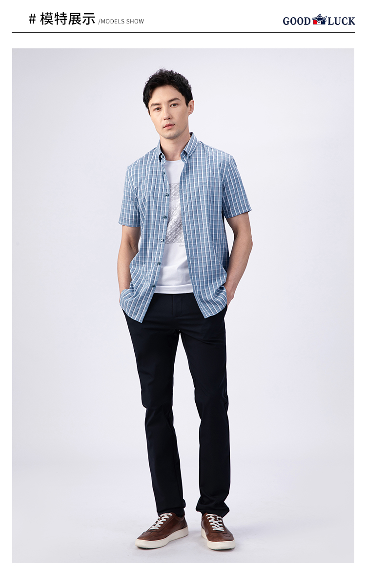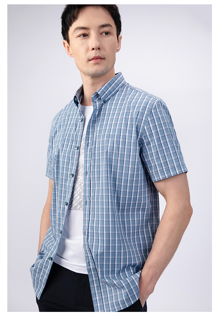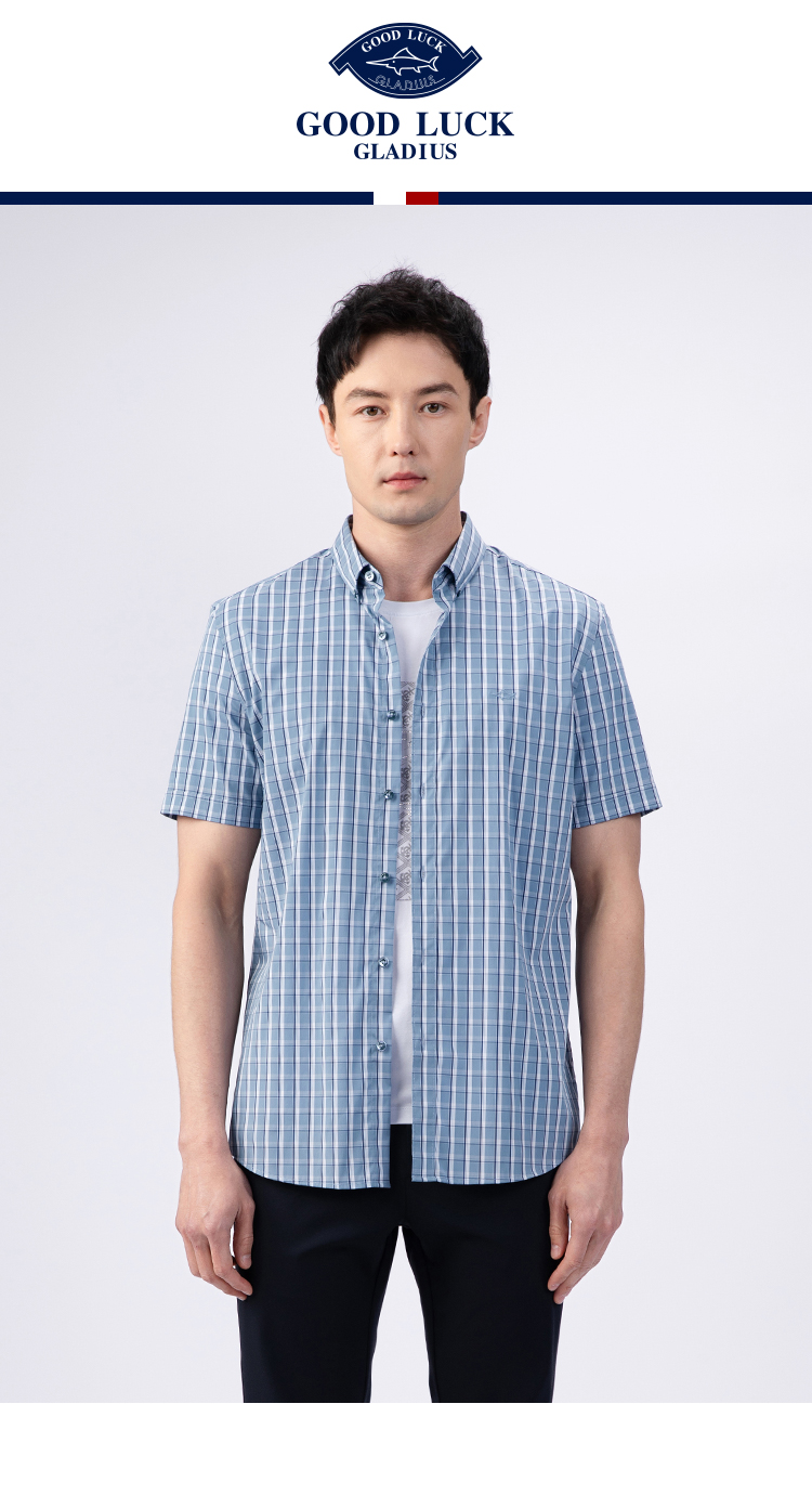 GOOD LUCK/德鲨竹纤维混纺抗菌吸湿格纹短袖衬衫LY21421-832