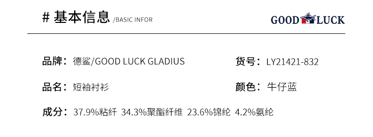 - GOOD LUCK GLADIUS品牌由“浙江德鲨服饰有限公司”引进中国市场,经过多年发展,凭借完善的终端形象,规范化的销售管理,迅速赢得消费者的认可,引领国内消费流行,是成功人士首选男装品牌。