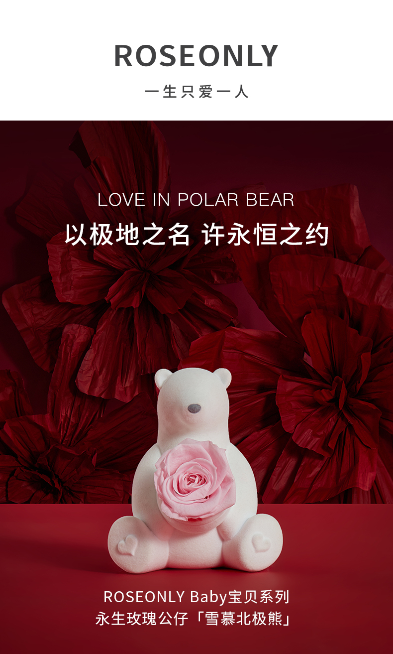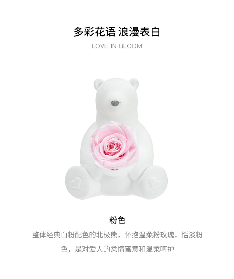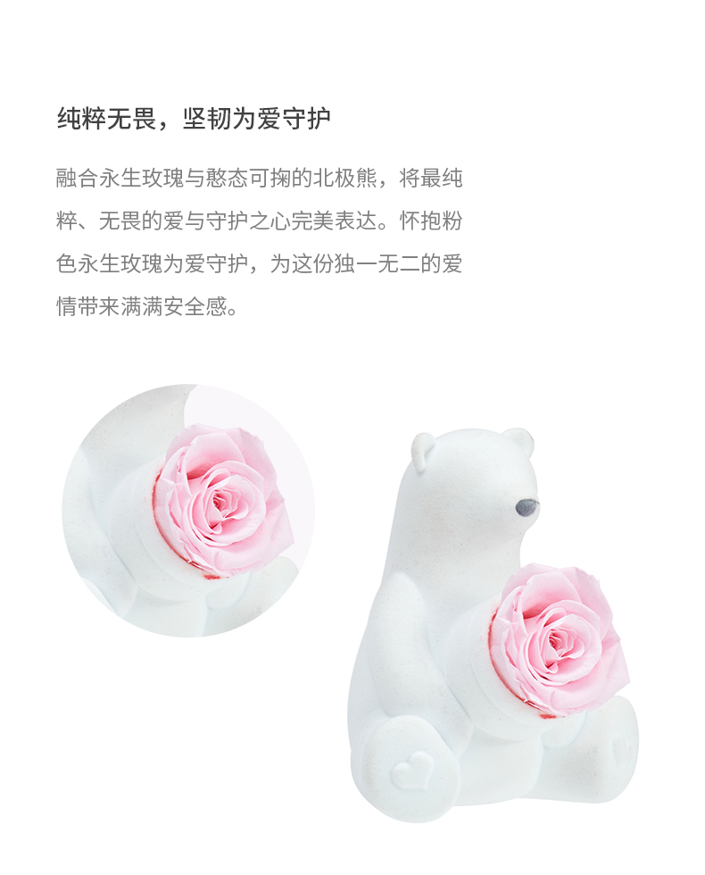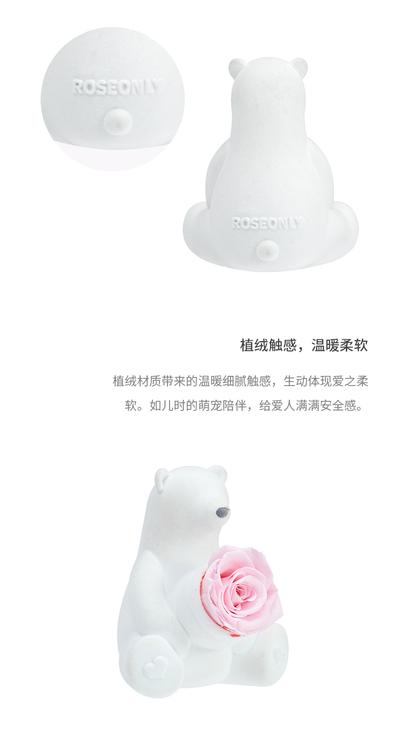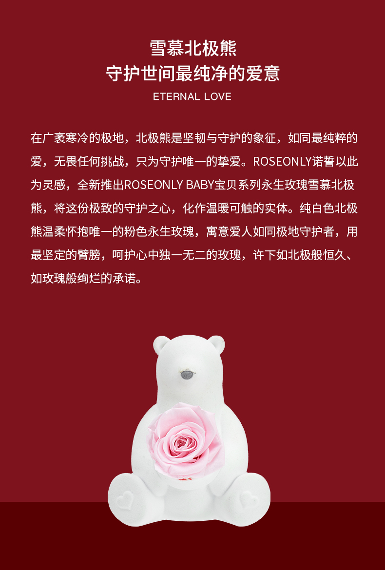 【新品爱礼】ROSEONLY诺誓 永生玫瑰 公仔系列 雪慕北极熊 粉色 送朋友 情人节礼物