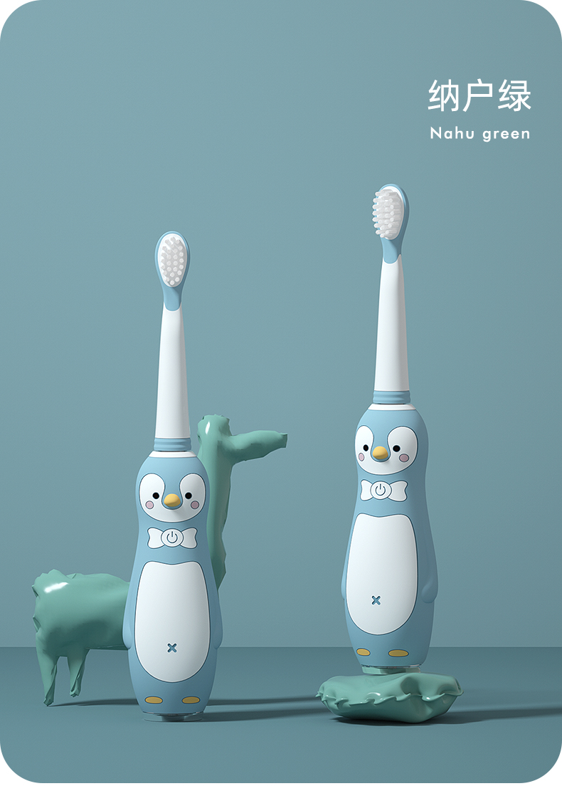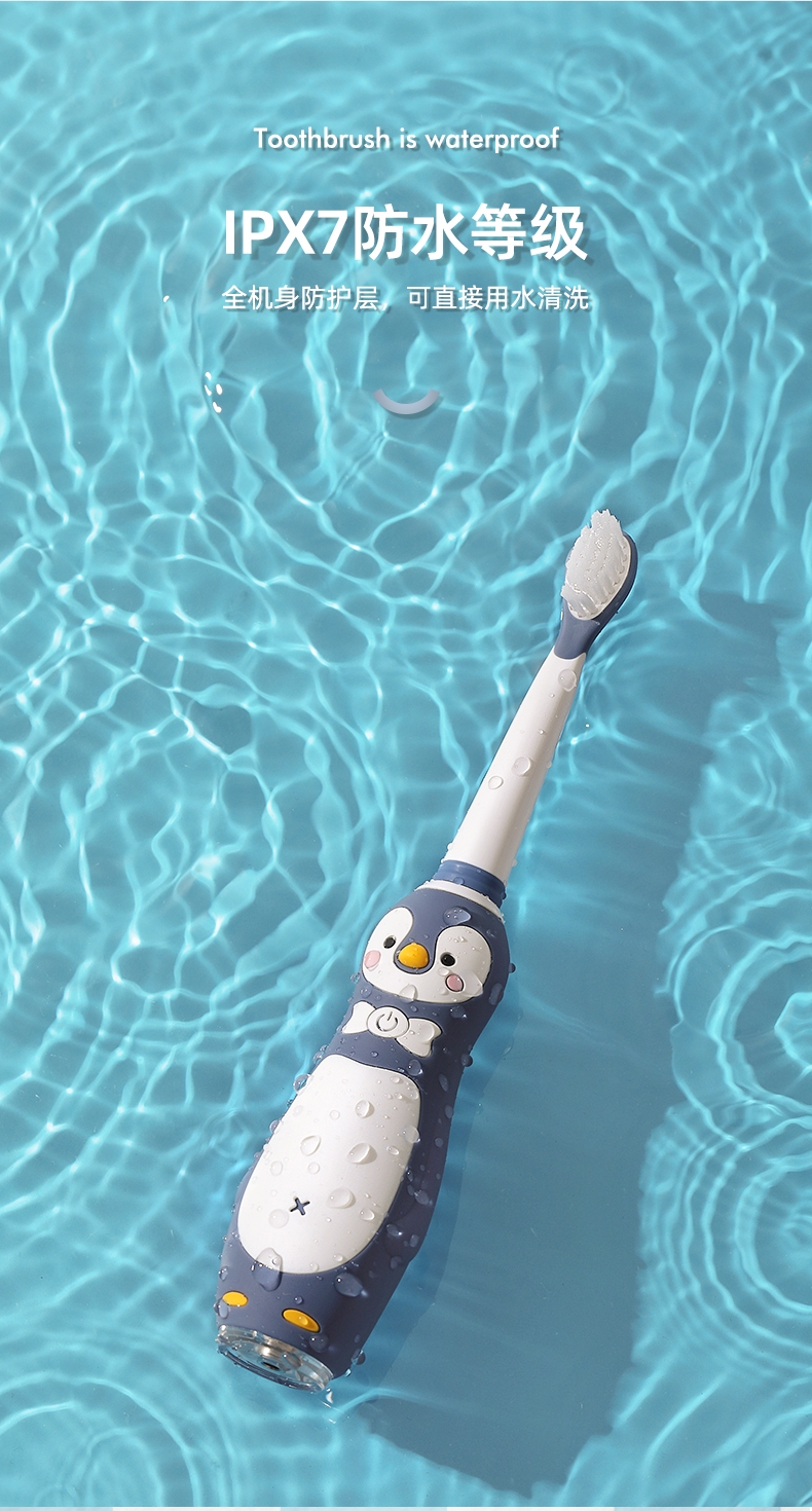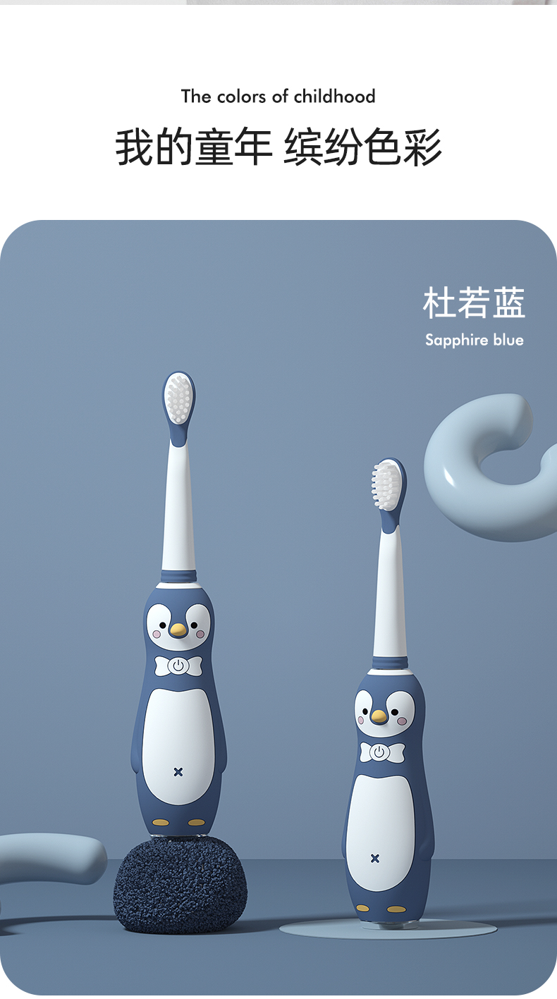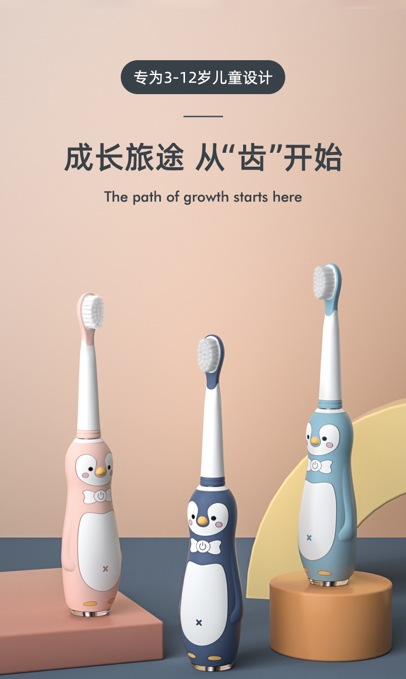 小Qkuta儿童电动牙刷企鹅卡通充电式电动牙刷&新增0-6-12岁牙膏小孩3-6-12岁以上宝宝软刷毛声波自动(1机身+3刷头)