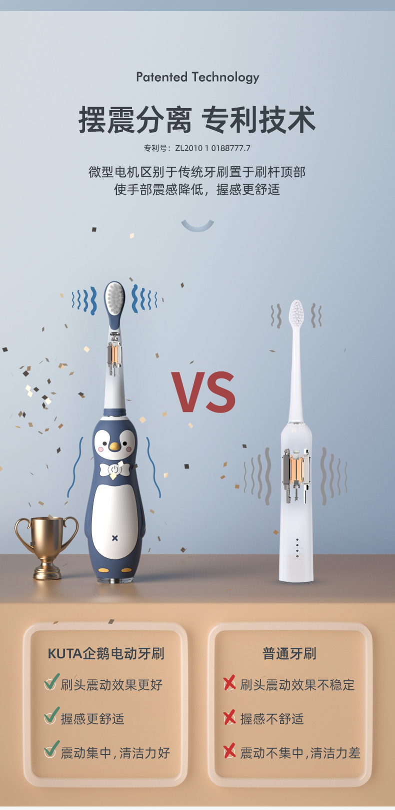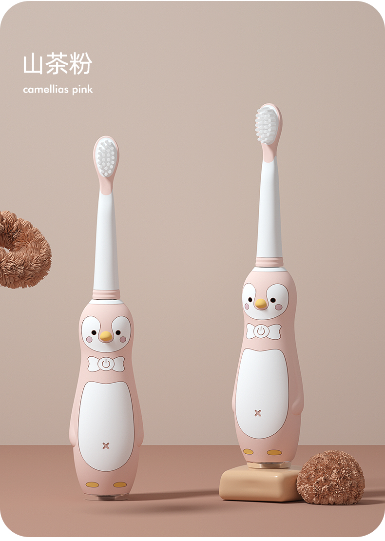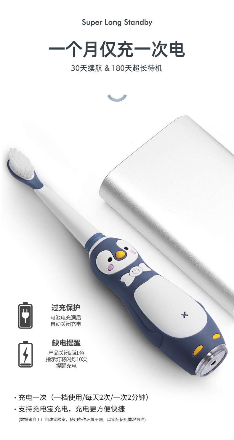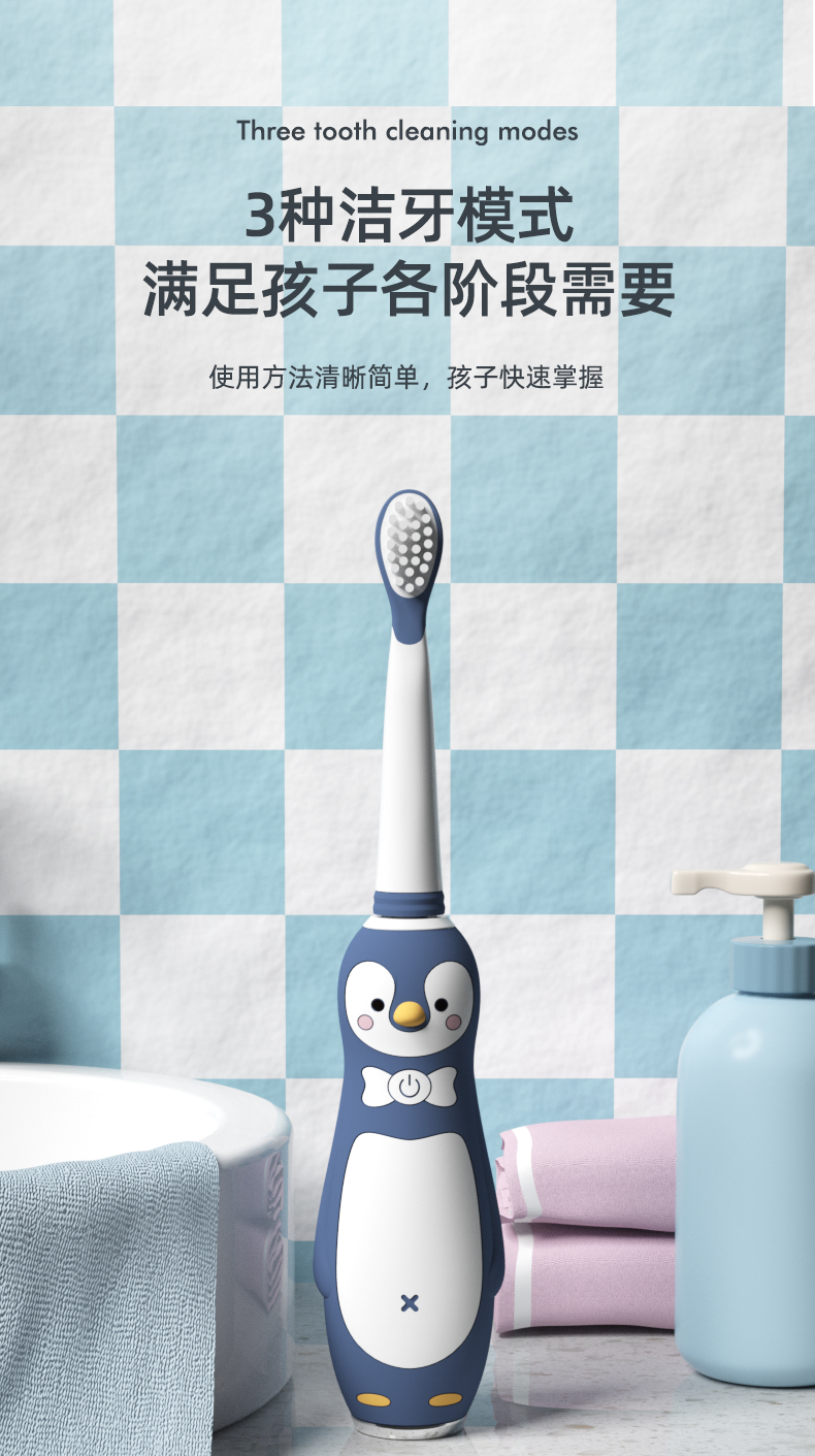 小Qkuta儿童电动牙刷企鹅卡通充电式电动牙刷&新增0-6-12岁牙膏小孩3-6-12岁以上宝宝软刷毛声波自动(1机身+3刷头)