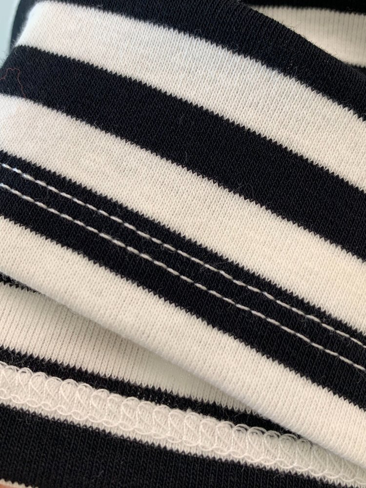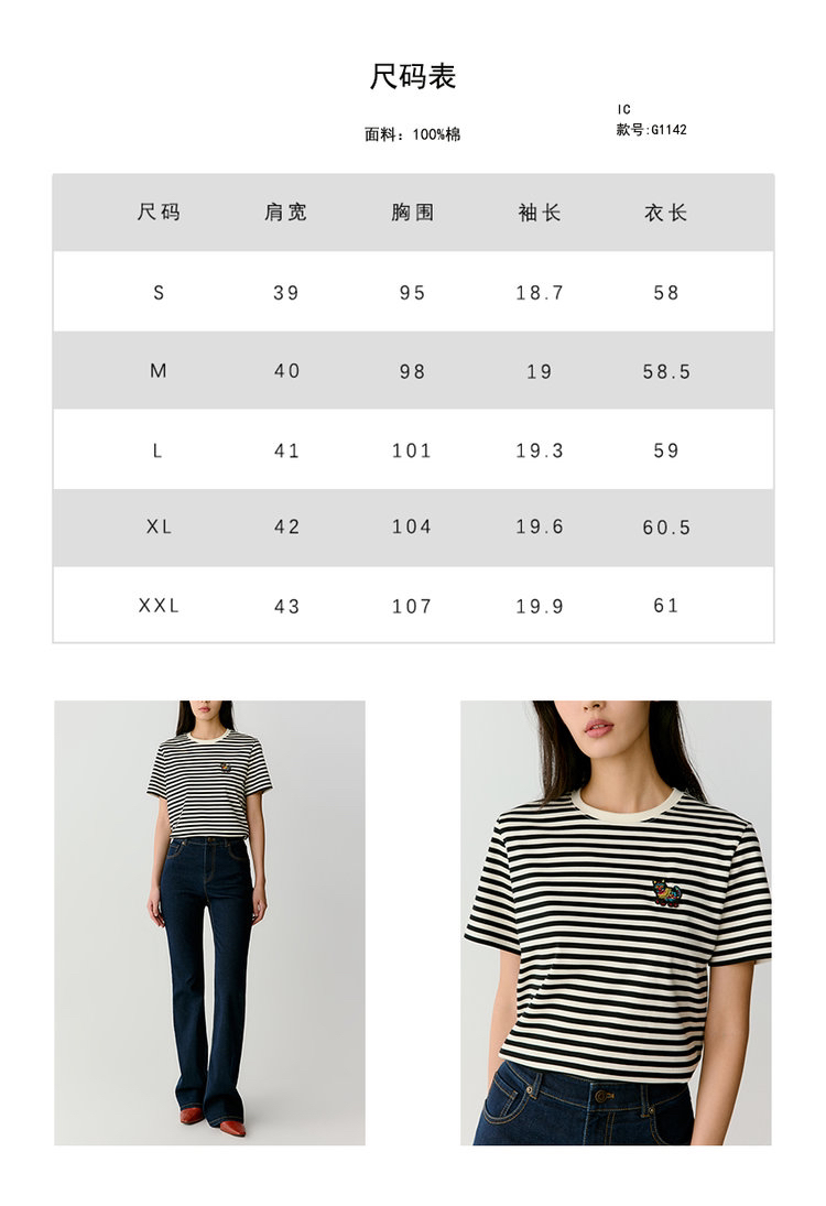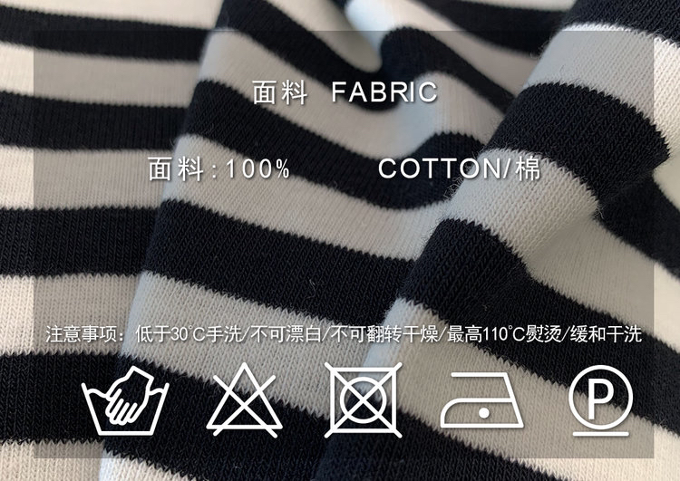 选用100%棉质感面料,质地细腻柔软 穿着亲肤透气,舒适好打理,经典的黑白条纹配色,简约又不失调性,耐看不易过时,单穿或作为内搭都很实穿好搭,是能够陪伴你很久的款~