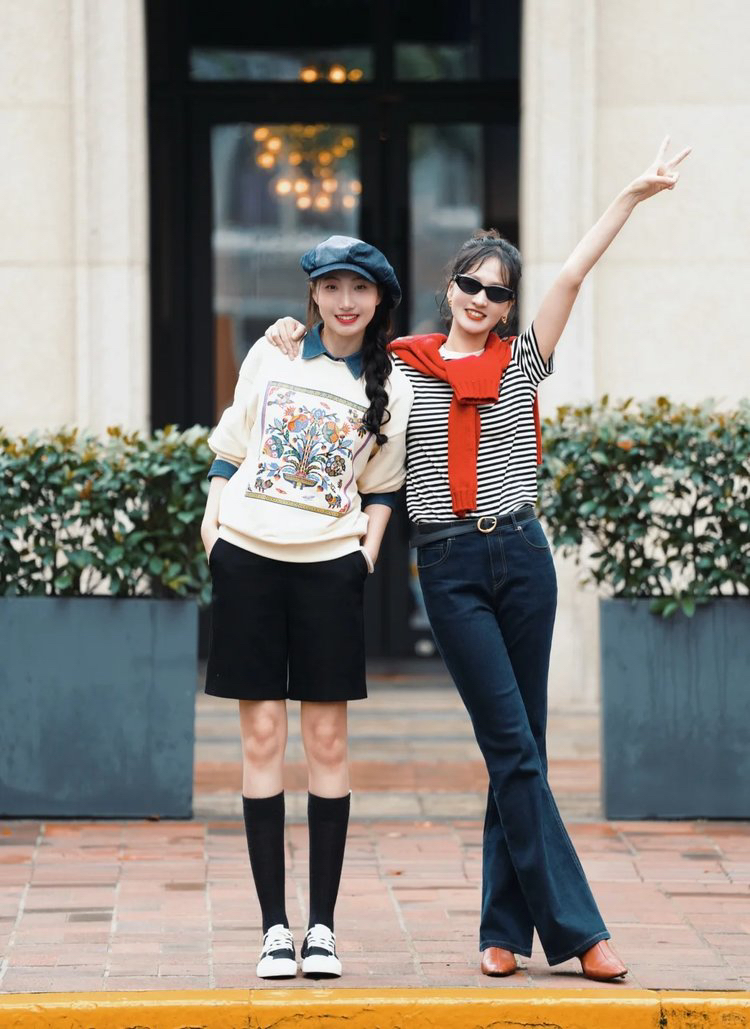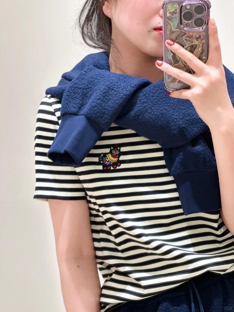 胸前绣标,形象细巧可爱,增强了精致的品质感。圆领设计,修饰脸型的同时,凸显整体精致感。