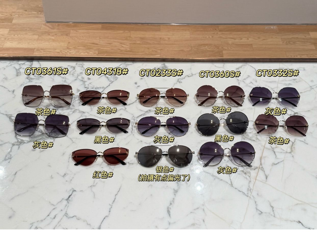 口碑来了❗️纯元 cartie* 卡地*亚 渐变系列墨镜/太阳镜来咯!夏日来临 无论日常还是过几天假期出行必备单品!这次请大家且行且珍惜 因为几乎全部都是蔡司镜片 非常难得aaaa只有3-4 个颜色不是蔡司镜片! 常年带眼镜的应该都知道 单独这个蔡司镜片我们找人配一副墨镜也要500多软妹币!更别说卡地亚的呀镜框了! 纯原单出品 就这么一批 厂里搬出国内了 要不然留不出来! 随便去店里线上对比 上次拿了几个款 好评满满 因为这是纯原单~ 这次别错过了aaaa 别等没了再喊我要 全部都是实际数量 售完无补~ 这次应该是最新的款式 后面可能还有2-3个款 就不会有了 因为工厂后期不在国内了! 如果再想要估计就难了! 所以真的推荐大家多入手几幅 都是最新款~ 秦海璐 白敬亭 谢霆锋 等明星同款 男生女生都能驾驭! 姐妹们一家人的选择哈 我自己留了好几幅送家里人~ 因为真的太超值了! 过了这村没这店了 官网基本6000-11000 区间 不同款式价格不同 这次的几个款全部都是卡地亚很新得款 且都是他家最经典的墨镜形状! 白敬亭那个系列8000多软妹币 也是最近主推的~ 这次的镜片全部都是成本都要上千块 卡地亚定制品牌 深圳南油市场批发700多一副 零售价格1700 你们自己想想好了 你们实体店拿回去分分钟500 800 的售价!! 因为这是一万块的墨镜呀! 我送了朋友一副 他家里刚好有卡地亚正品的镜盒 拿到得物鉴定过了! 不是我在说胡说 纯纯的正品 他家每年都在做的经典系列~ 即使不懂你们收到看细节就知道了 超级精致!! 镜腿上都是有编码的 尺寸都在 包括鼻托哪里都有尺寸标识 工艺镀金且珐琅工艺 logo阿 等等弧度凹凸都ok 镜片卡地亚logo 清晰可见 鼻托等等细节都在 非常精致 据说他家螺丝都用的进口的 卡地亚提供的!! 精细程度你们收到就知道多好啦!! 而且这次很多都是猎豹系列 比往常成本贵超级多 关于包装 我们是没有原盒的 但是我自己给你们配了一个普通镜盒方便收纳 因为如果带了包装那么可以卖二手了哈哈哈 相信我的来就行了 这么多年墨镜这块老粉懂 在就说了 如果不是原单的谁着时间拿出来!! 如果不是人家厂里搬离国内 也不存在会出售就属于这种!! 且行且珍惜 这种经典款值得囤!! 一共分五个系列 编号都给你们找好了 CT0360S CT0233S CT0431S CT0332S CT0361S 五个系列 1️⃣CT030S系列 001灰色 002茶色 003黑色 只有黑色不是蔡司镜片 其他都是蔡司镜片 官网黑色是最新的 但是也是他家定制的~ 东西都不会差!! 这个属于圆形 金银两色扭曲相间 超特别 高级 是项链同系列 我留了哈哈哈 2️⃣CT0233S系列 飞行员系列 谢霆锋同款 001 灰色 002茶色 004银色 飞行员都不是蔡司镜片 蔡司没有这个镜片👓 用的品牌我忘记了 和蔡司其名的~ 这个系列很经典 侧面有猎豹🐆 也是卡地亚最为经典的! 送人不踩雷 男女都ok 我给我爸留的就是这个 3️⃣CT0431S系列 白敬亭 莉莉柯林斯同款 001 黑色 002茶色 004红色 一点点小猫眼设计 也是今年热门墨镜形状 这个比想象中更加好看 金属在内里镜片在外无框 精致的很工艺很复杂 而且三个颜色全部都是蔡司镜片 莉莉柯林斯带的茶色 白敬亭带的黑色都贼帅啊啊啊啊啊啊 4️⃣CT0332S系列 官网正在售 001灰色 002茶色 半框棱形设计 全部都是蔡司镜片 这幅有点像秦海璐带的那个款 也是小猎豹镀金标志性logo 更适合妹子 贵妇 送妈妈 朋友这幅很推荐! 不挑人! 什么脸型都ok. 5️⃣CT0361S系列 超大框墨镜🕶️ 也是这里面数量最少的一款 001 灰色 002 茶色 售价好像10000 多~ 也都是蔡司镜片 大脸神器 和圆形一个系列 银金相间扭曲工艺 非常高级特别 好像这个工艺非常贵 和其他品牌墨镜不同 其实她做的成本非常高 因为他是比较精致仟细的做工 收到你们就知道了!! 形状很相似 差距是细节和配色 镜片有的是变色有的是渐变 所以真的不可能假 不够费精力的哈哈哈哈哈哈 因为是原单的整体数量还可以但是个别的少 大家别错过!!! 最后我说一下 因为他是新老款订单把按照一个款区分的 我不确定是不是我说的蔡司镜片每一幅都相同 可能存在我说的蔡司镜片实际收到新款片无蔡司logo 随机发货哈 但是我大概的看了下 和我说的是一致的 只是不好说会有会有落网之鱼 因为这种原单的无法避免!