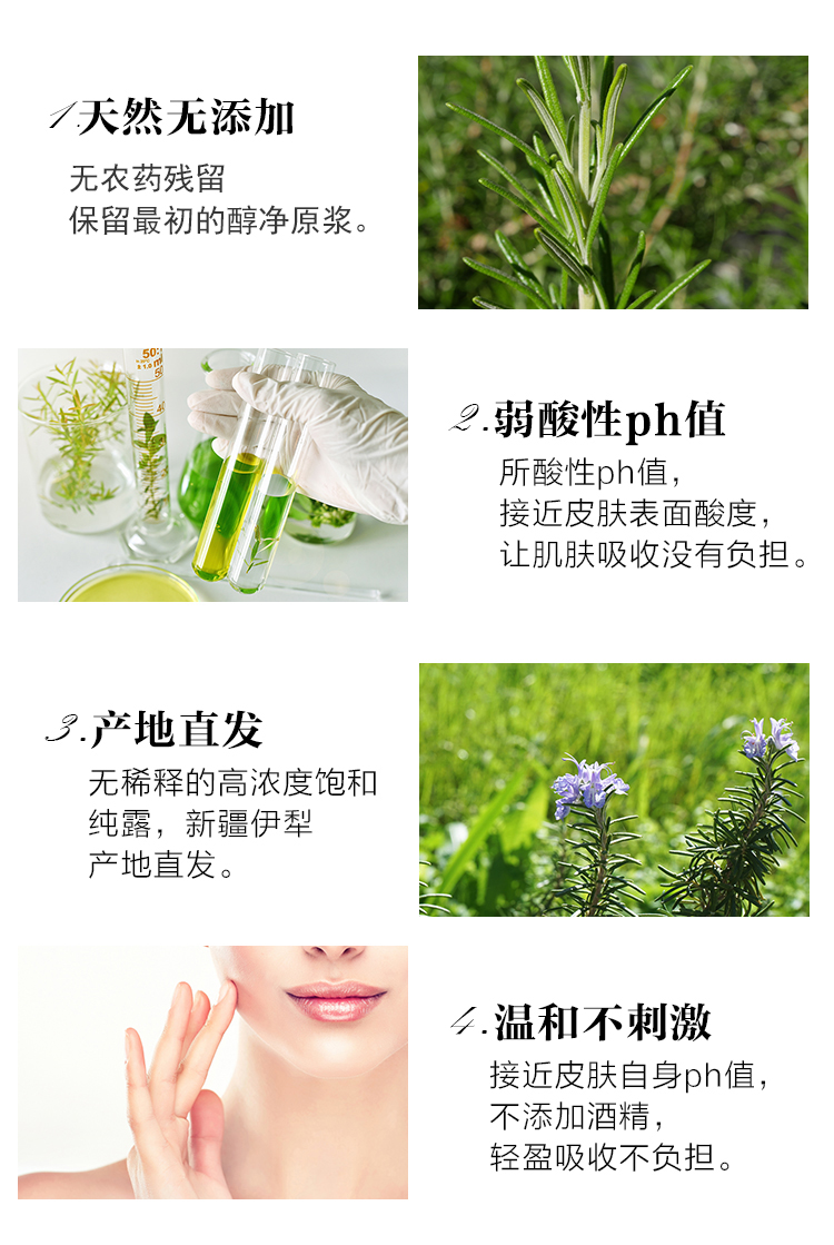 【注意事项】1、本产品生产所用植物为马鞭草酮迷迭香,马鞭草翻迷迭香是迷迭香植物里面的一个品种。