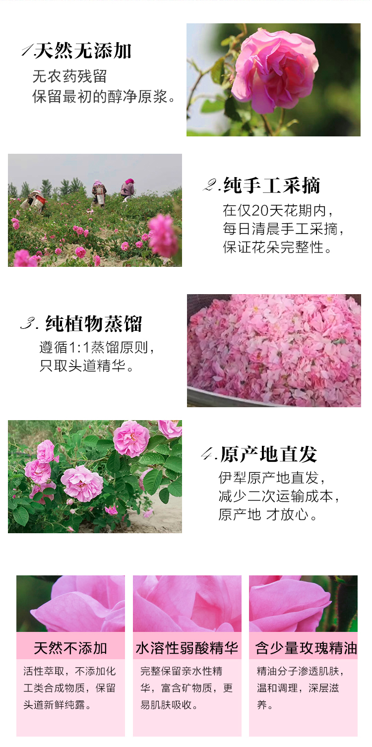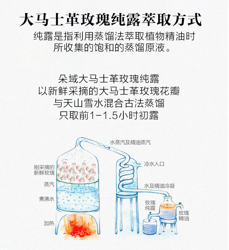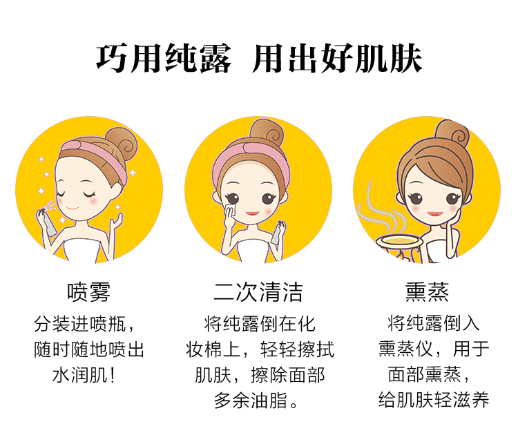 【温馨提示】纯露源于花材,因气候不同、批次不同而气味、颜色、沉淀有所差异。