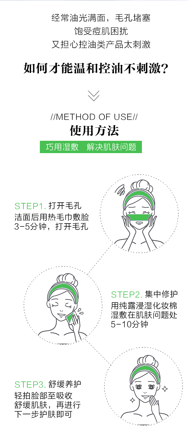 【产品功效】滋润肌肤、平衡油脂、收敛毛孔。