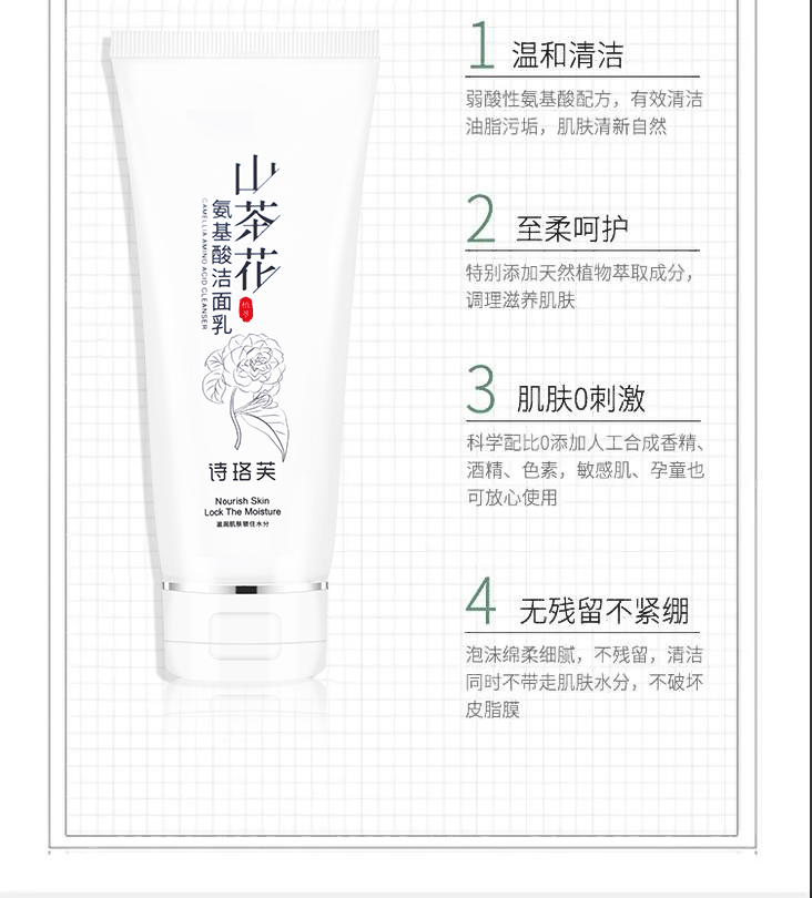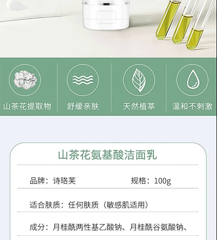 断货王【诗珞芙-山茶花氨基酸洁面乳】 男女温和平衡水油水润不紧绷 敏感痘痘肌 孕妇洗面奶 孕妇专用 纯天然 清洁不刺激男女可用