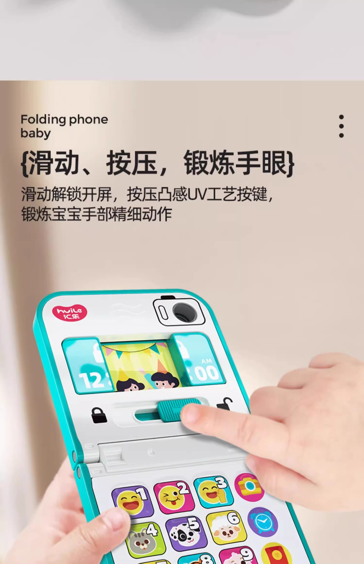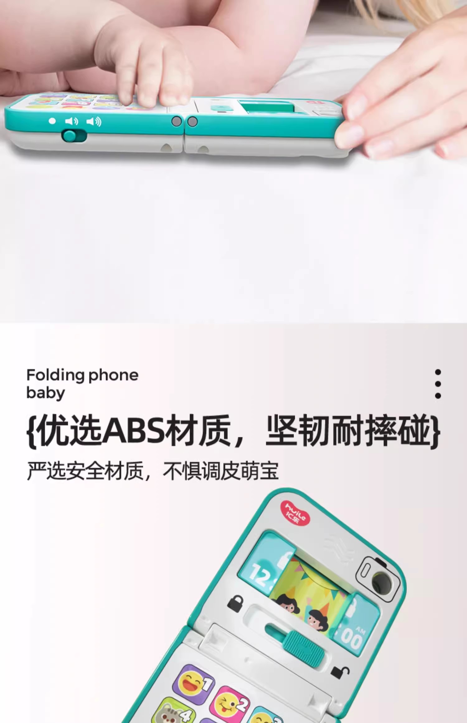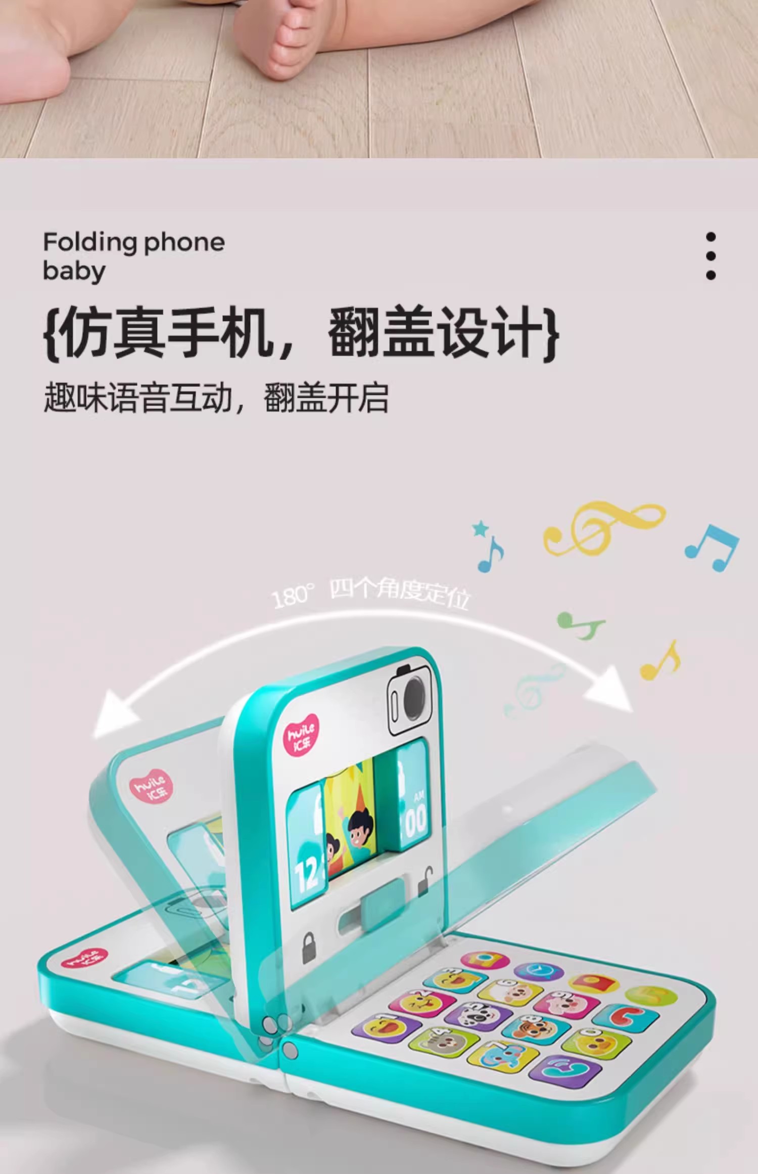 汇乐折叠手机遥控玩具儿童仿真电话音乐手机早教益智男女孩3个月-3岁