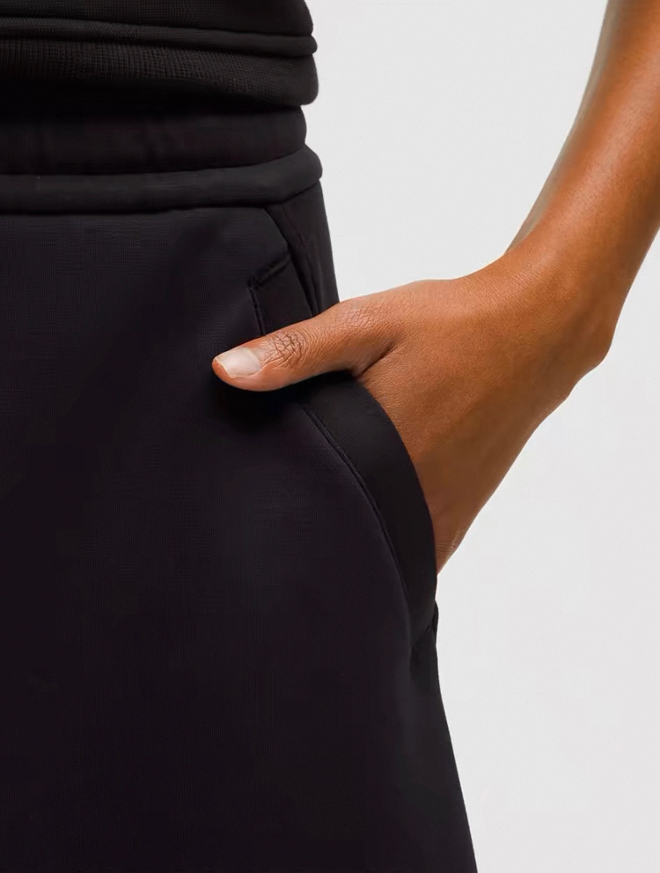 面料采用莫代尔混纺面料 手感厚实软糯,四面弹力,有重量感!外侧舒适柔软 内侧顺滑亲肤,自带垂坠质感,结合A字版型源于运动裤的腰部设计 内外兼顾!腰部弹力设计 另外抽绳设计 腰围可自行调节!不论是日常休闲穿搭还是商务通勤皆可轻松驾驭!即休闲时髦又时尚优雅 特别显瘦 超级百搭!怎么穿搭都好看!两侧斜插式口袋,带隐藏式卡片带 方便日常储物!不啰嗦 喜欢的抓紧囤吧!