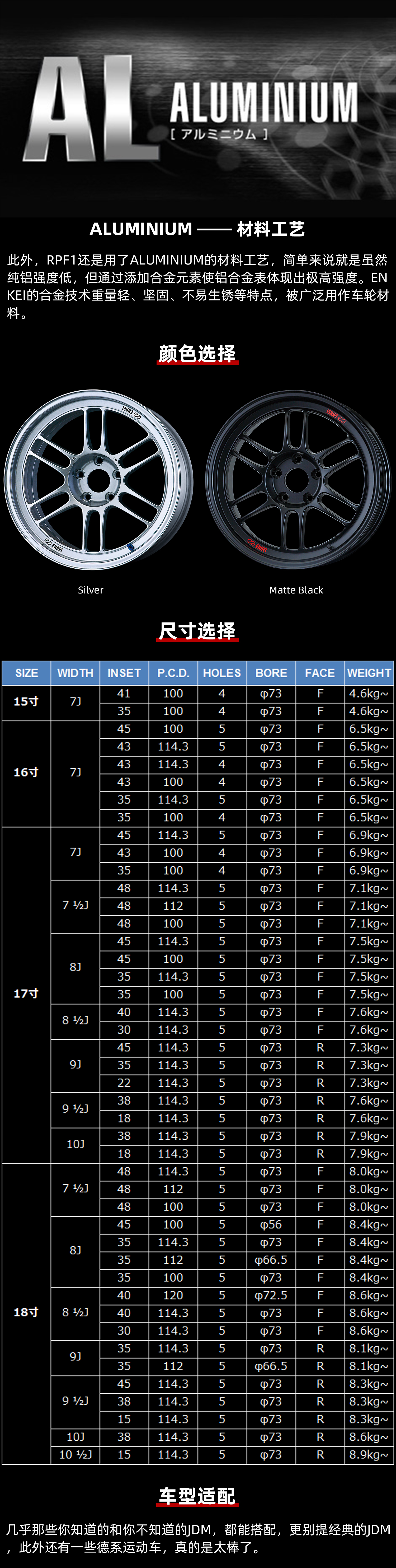 ENKEI RPF1系列轮圈 15/16/17/18寸 4*100/114.3 5*/100/112/114.3/120 旋压铸造 日本进口 总代正品