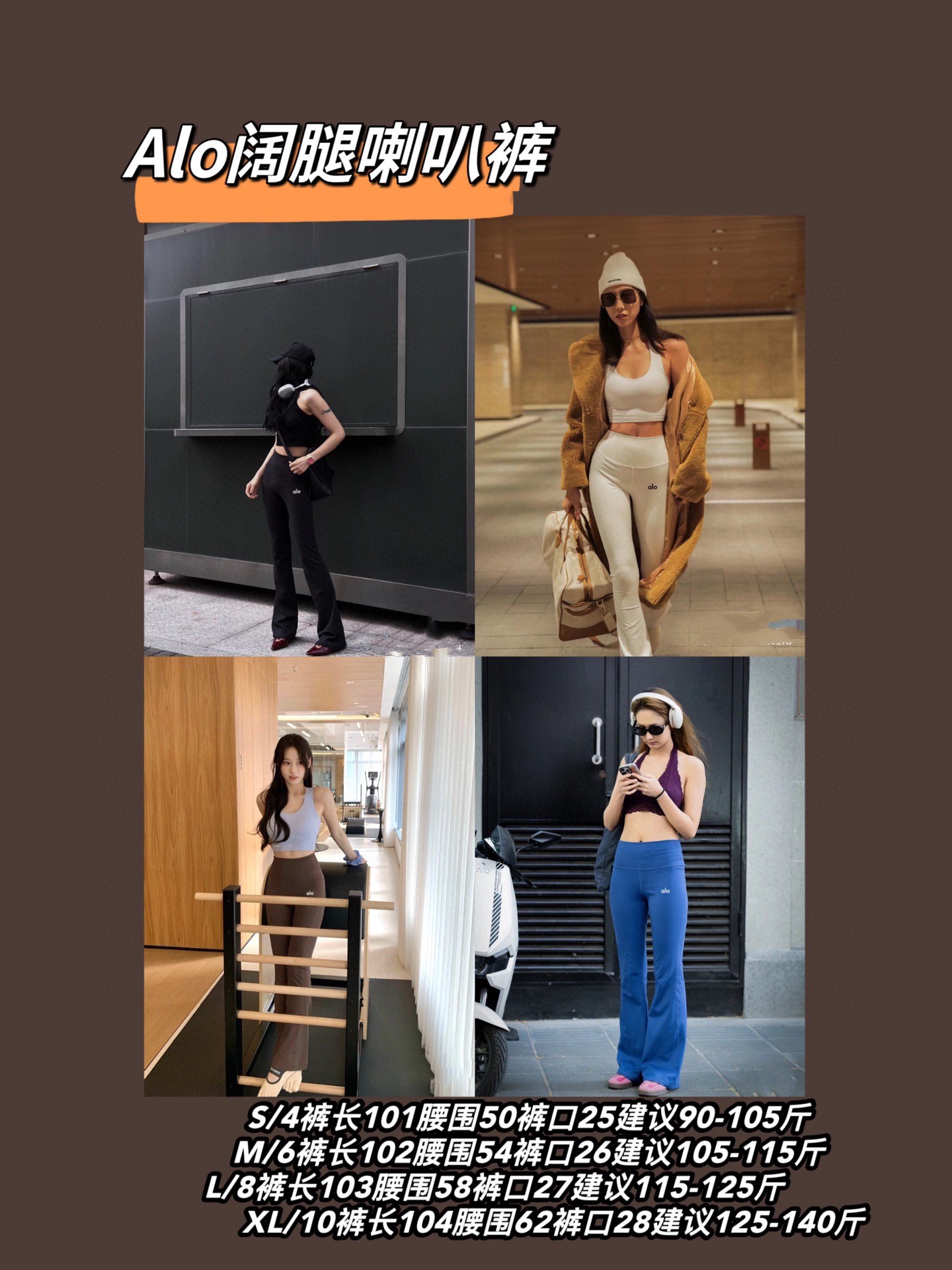 GIGI、贝嫂等一大拨欧美超模、明星们最爱瑜伽裤外穿,把瑜伽裤从一件单纯的运动装备演绎成各种场合都能hold住的时尚单品,瑜伽裤就这么流行起来啦,往日的“尴尬健美裤”才得以成为时尚百搭神器!面料是230g莱卡螺纹面料 25%氨纶 弹力大,回弹性好,高腰设计非常舒适,裤腿包裹度特别好,做工精细到连个线头都看不到,晨练~旅游~瑜伽~广场舞~上班也能穿,人手两条都不多,买到就是赚到!alo很吊的一个牌子,现货发!