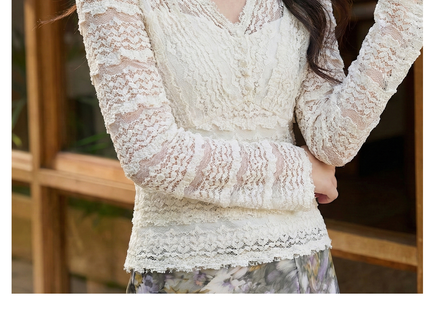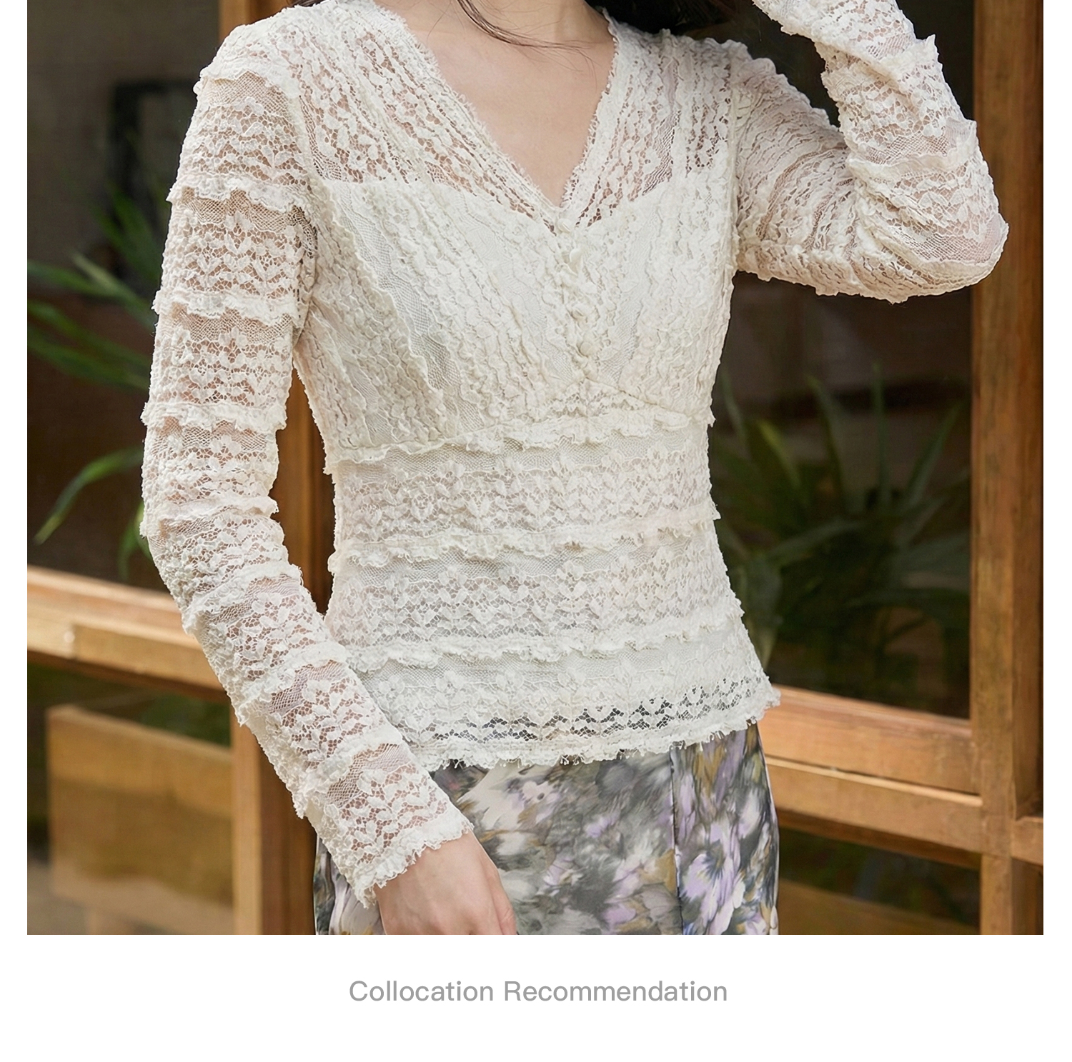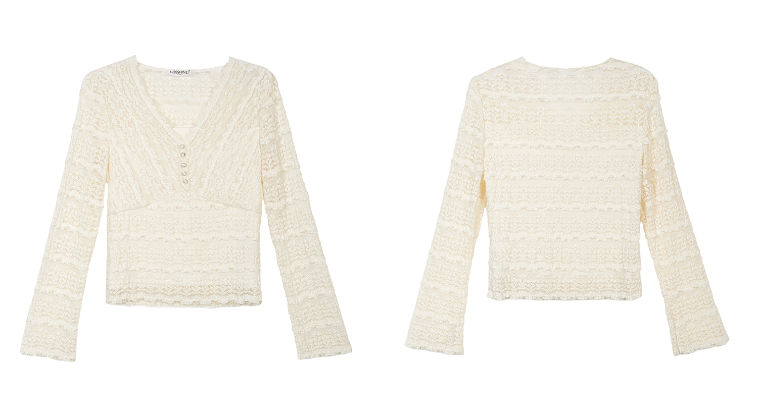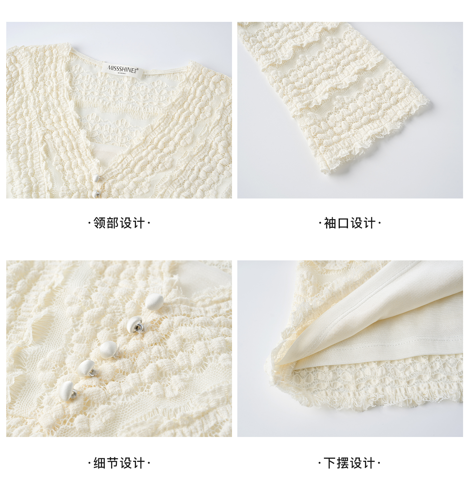 剩S/L 云朵软蕾丝上衣 再生天丝精梳棉混纺 精致不臃肿 米思阳2026春新款法式蕾丝V领小衫气质女人味内搭上衣1519