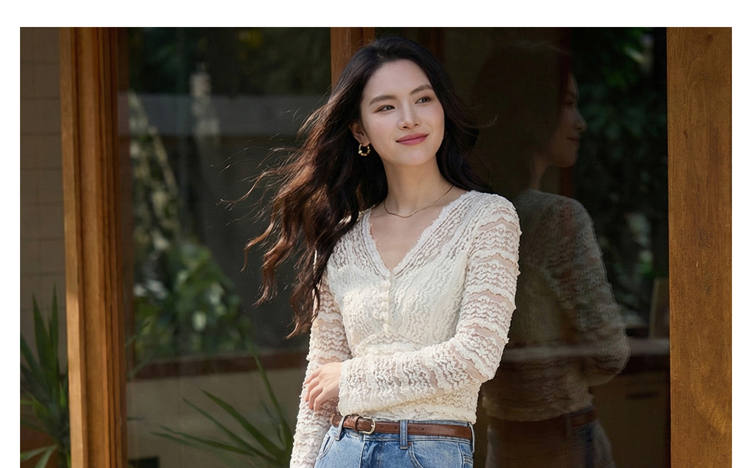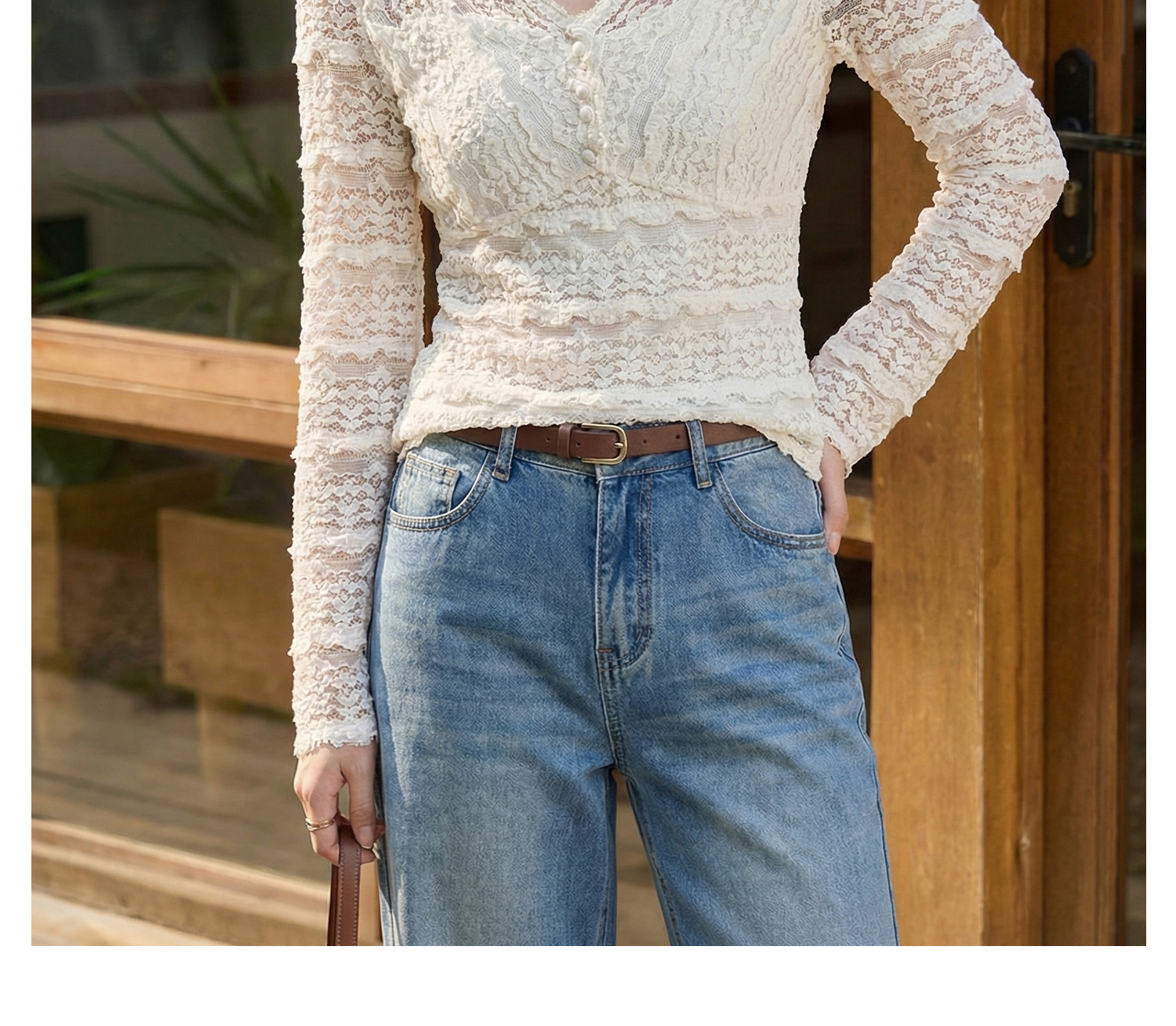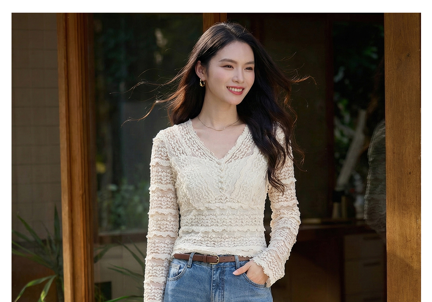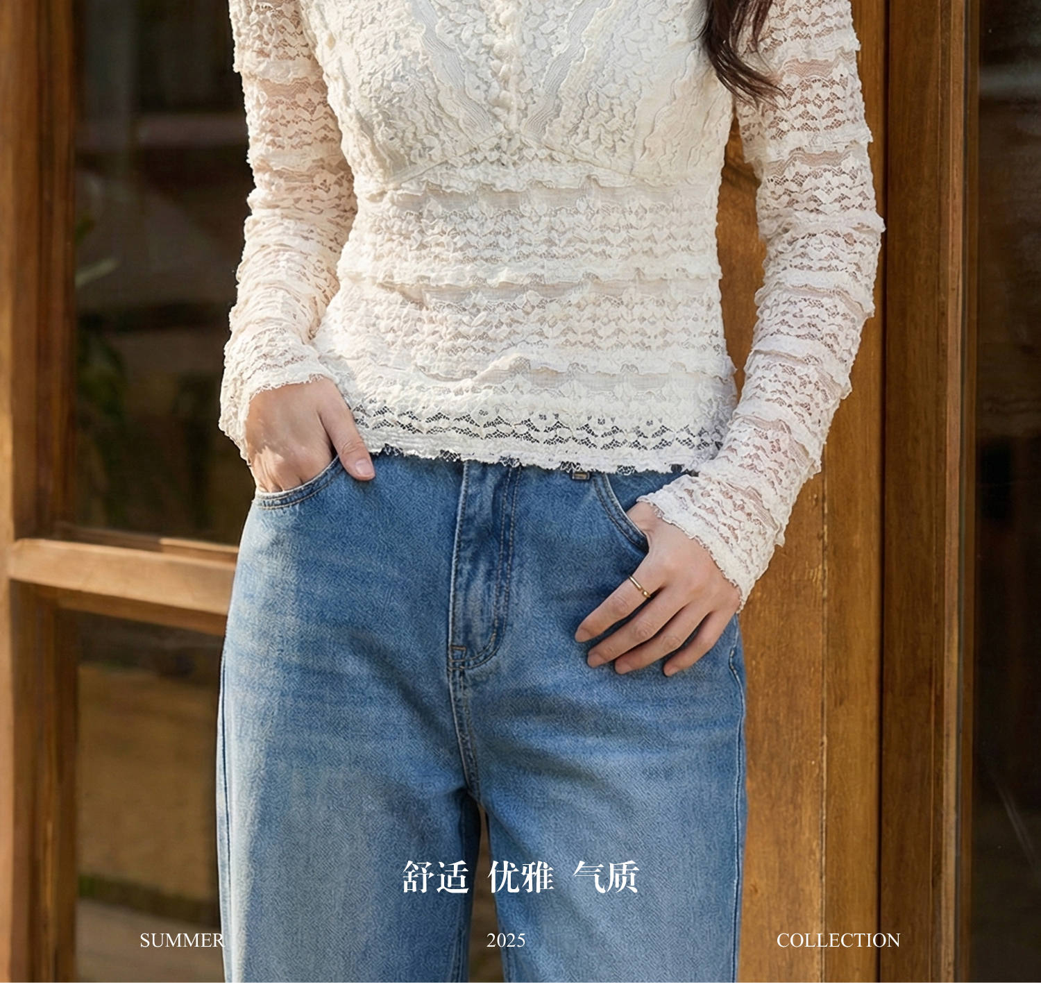 剩S/L 云朵软蕾丝上衣 再生天丝精梳棉混纺 精致不臃肿 米思阳2026春新款法式蕾丝V领小衫气质女人味内搭上衣1519