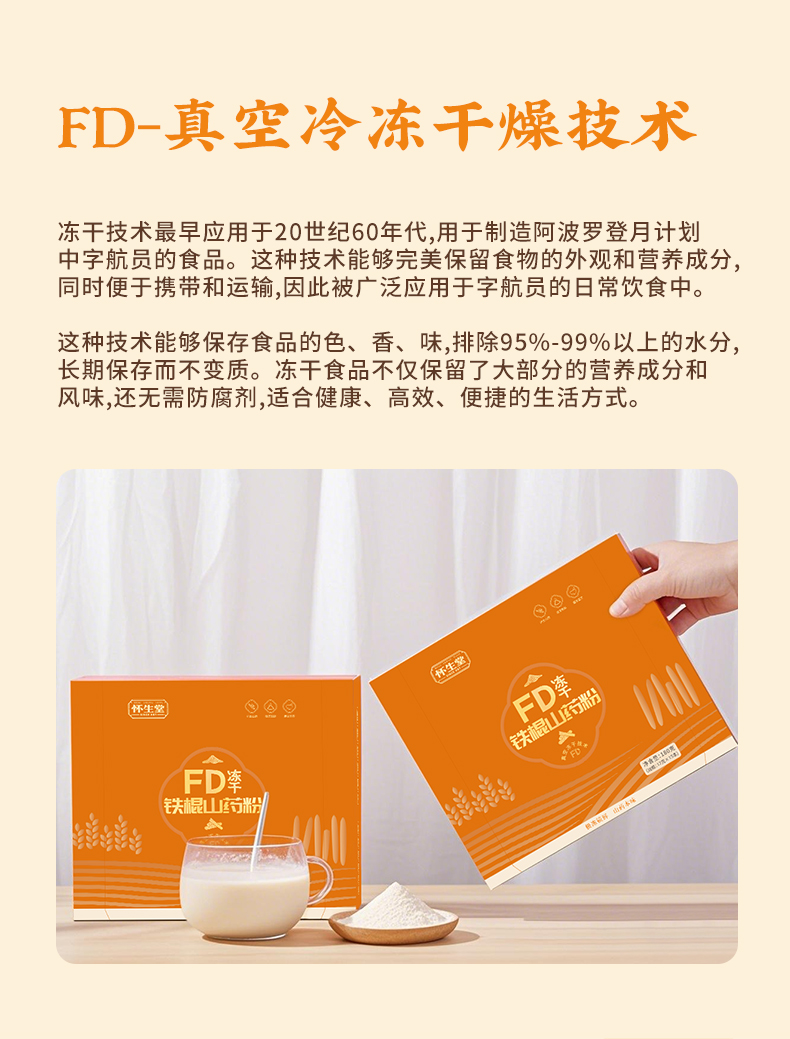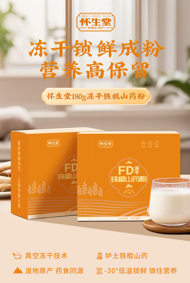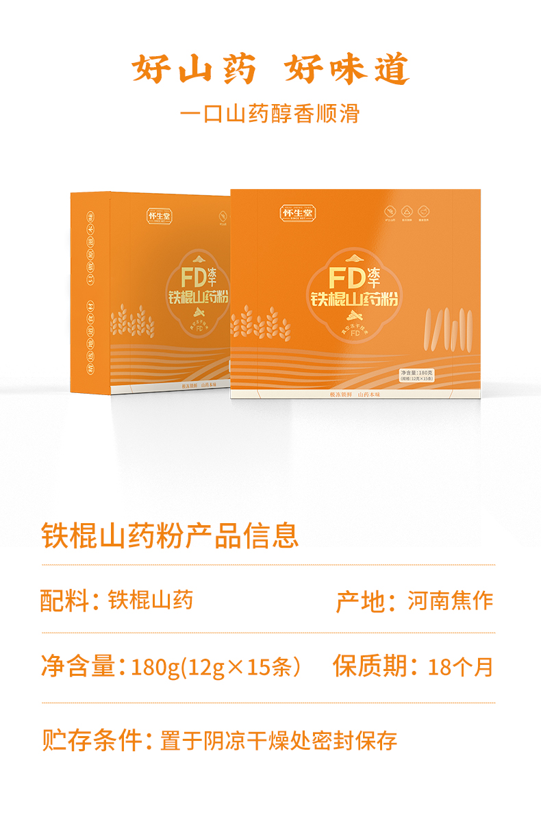 【怀生堂】FD冻干铁棍山药粉,冻干锁鲜工艺营养成分更好,每盒180g(每盒12g*15条)