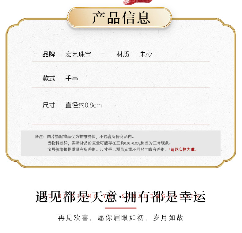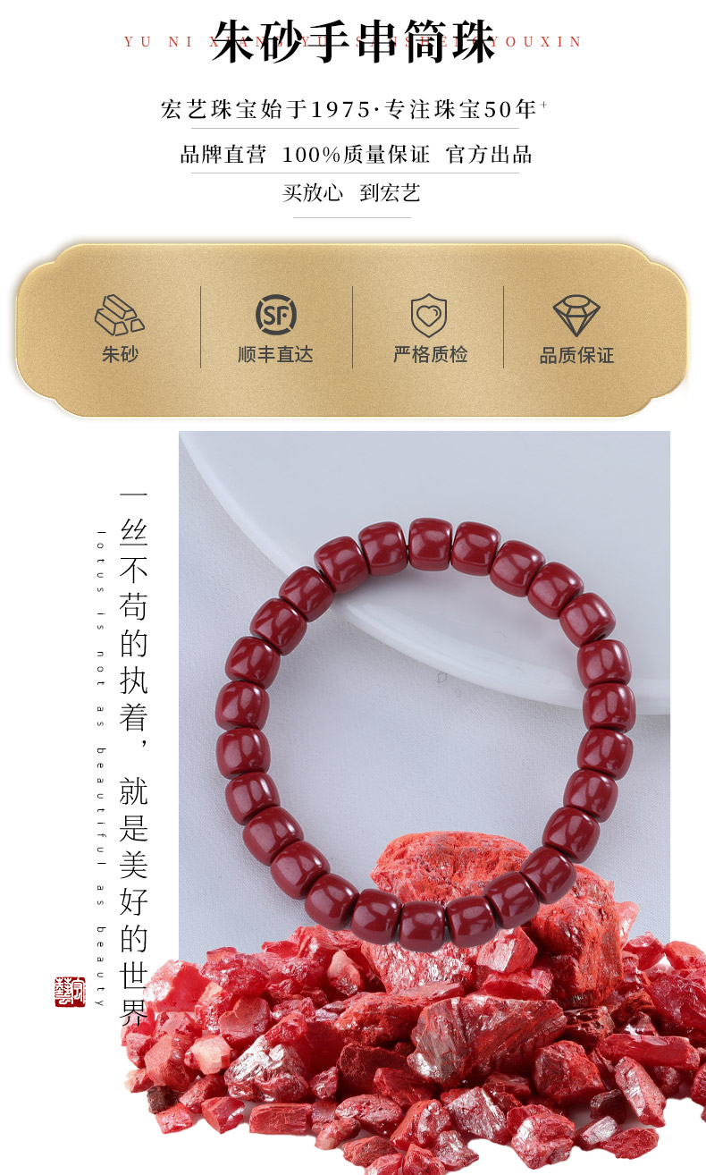 【宏艺珠宝】朱砂手串筒珠﹝主体为晶石类、天然玉石类产品不支持以旧换新﹞