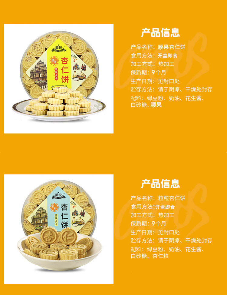 【嘉记园澳门特产杏仁饼】嘉记园澳门特产杏仁饼传统手工制作,严格把控甄选好原料,杏仁酥零食小吃广东珠海手信手工糕点心小吃礼盒QQ
