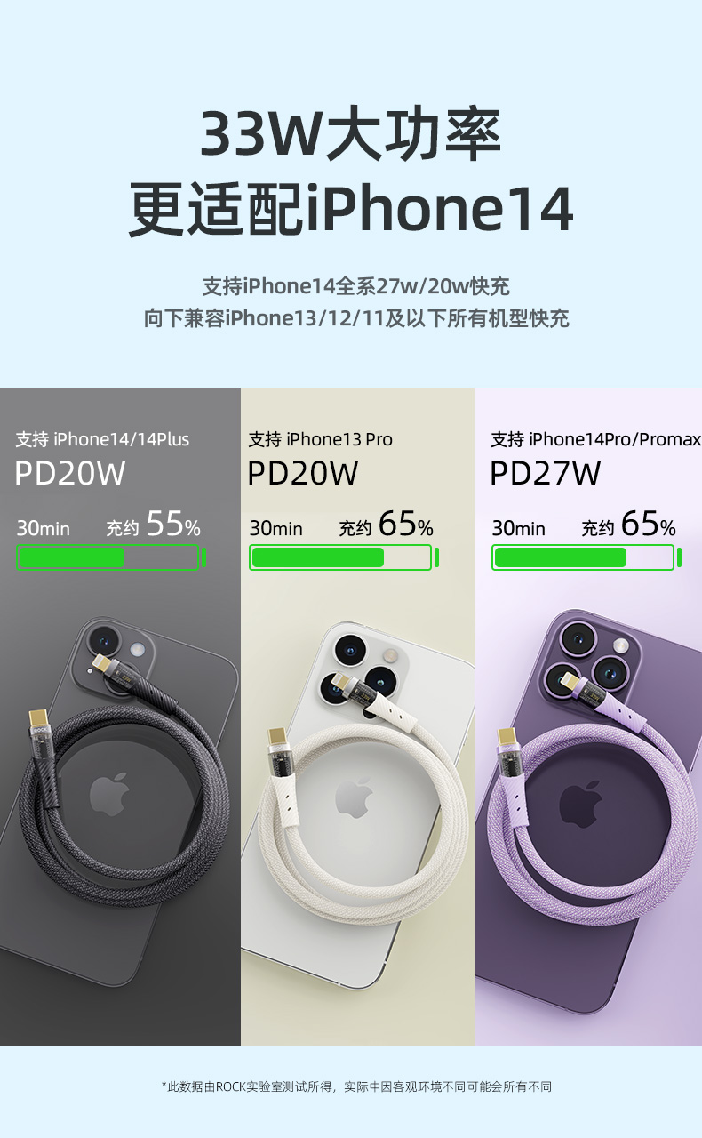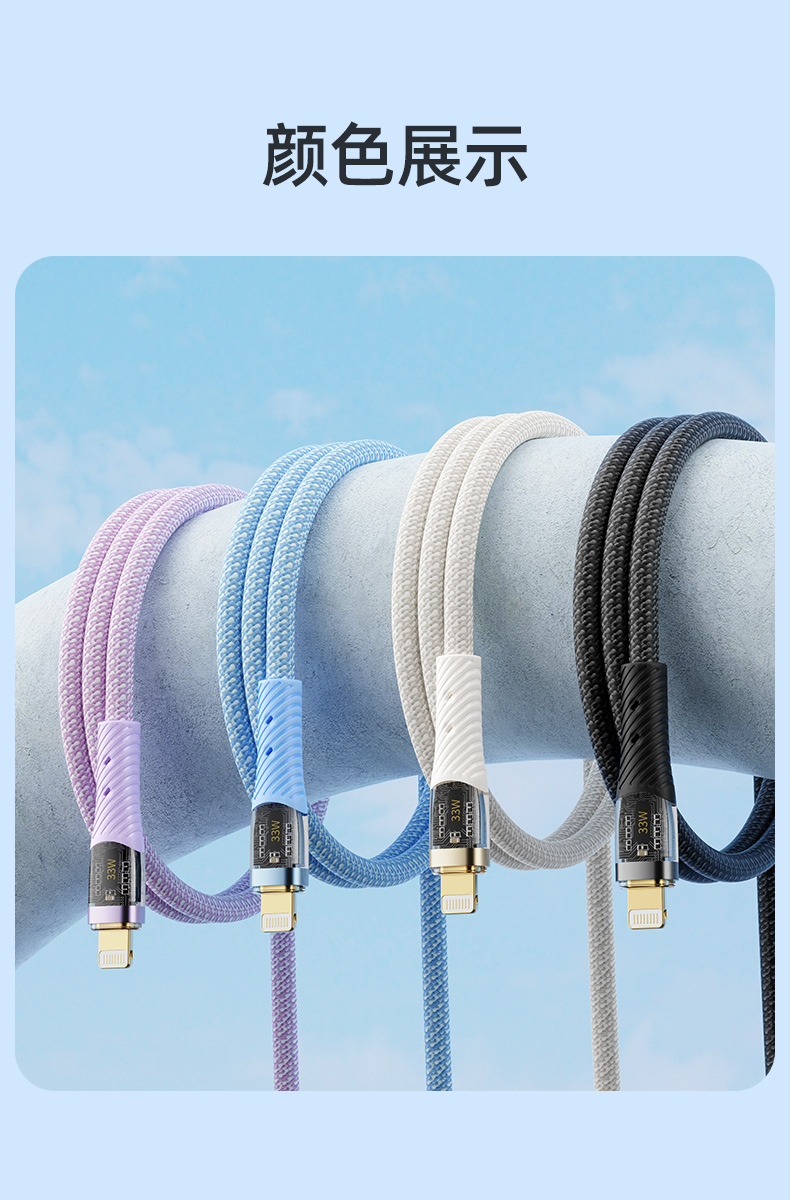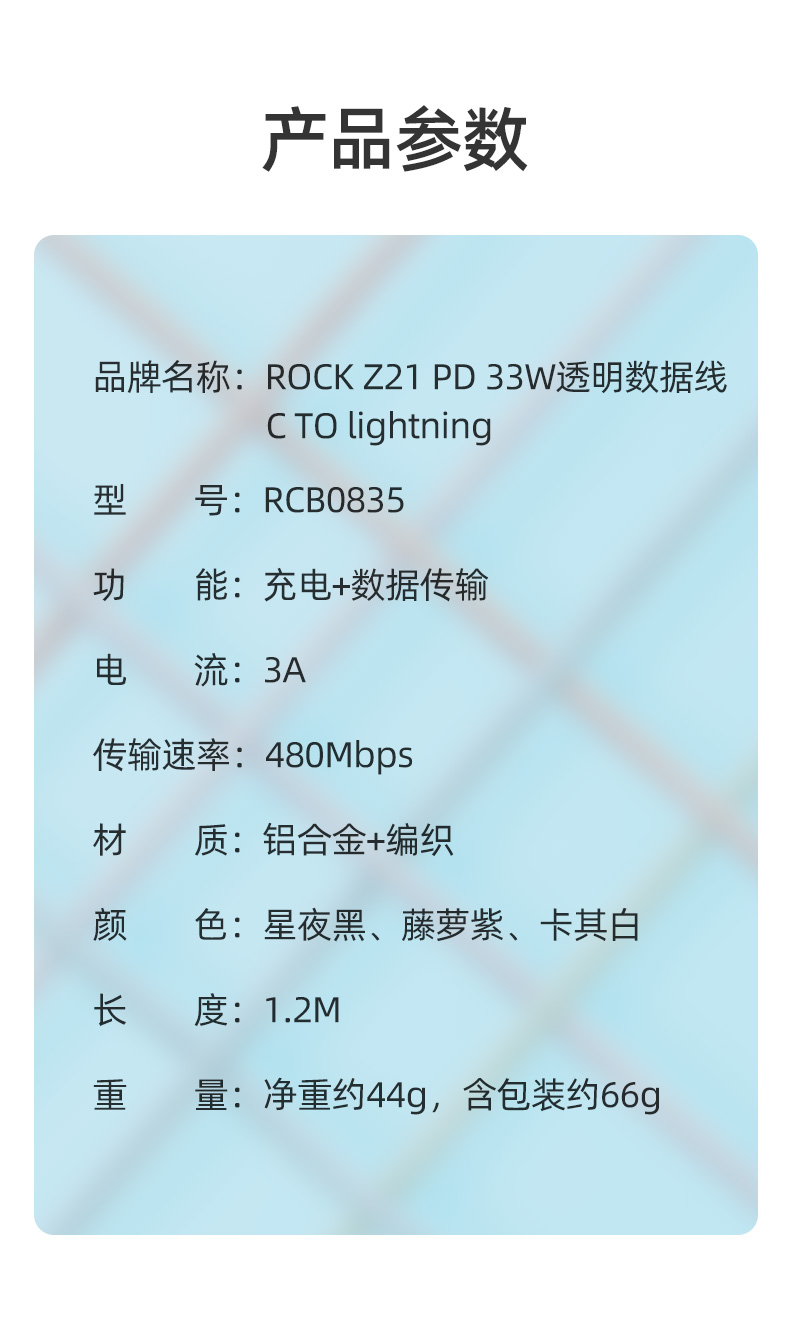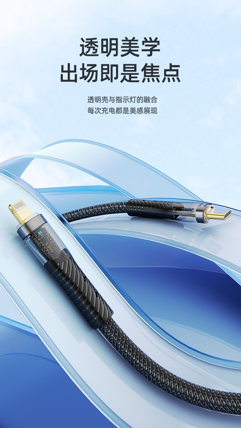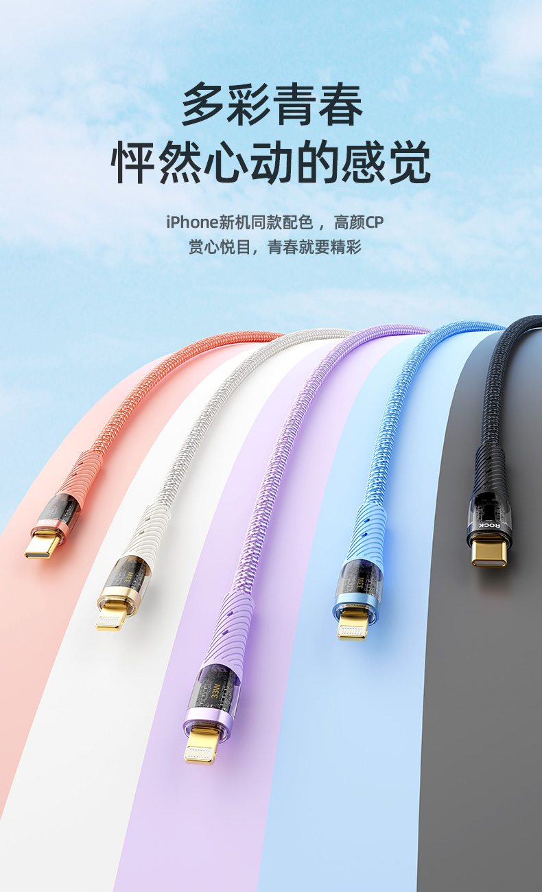 ROCK Z21 PD 33W 透明闪充数据线 C TO lighting L=120CM
