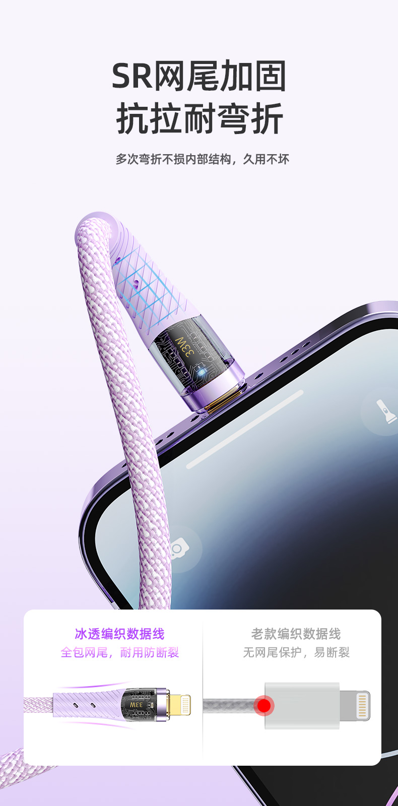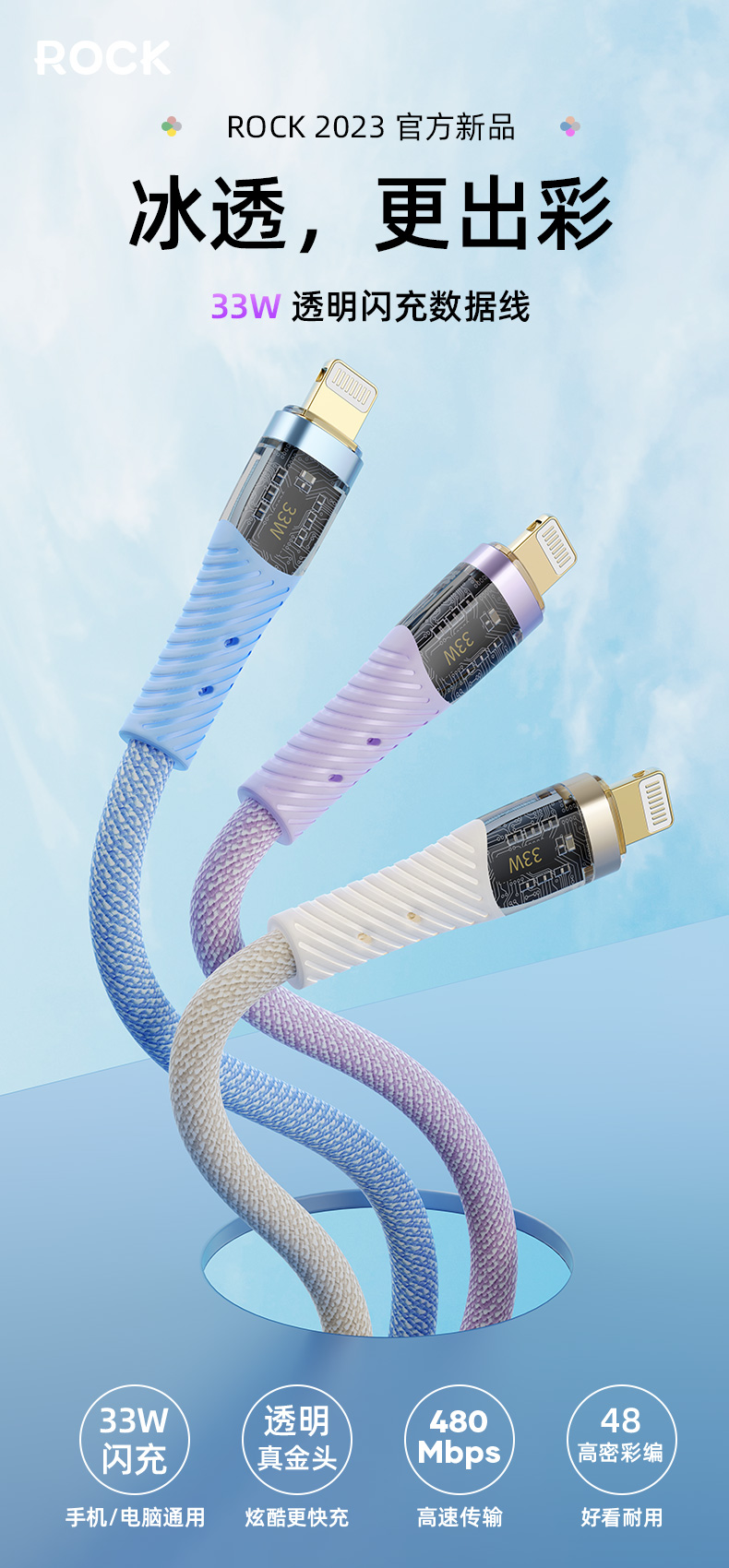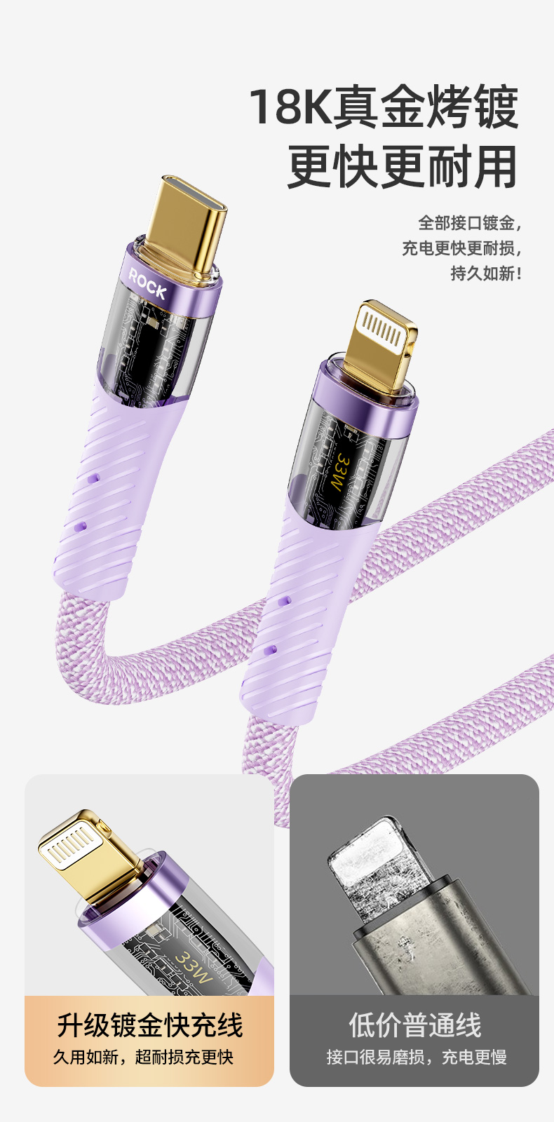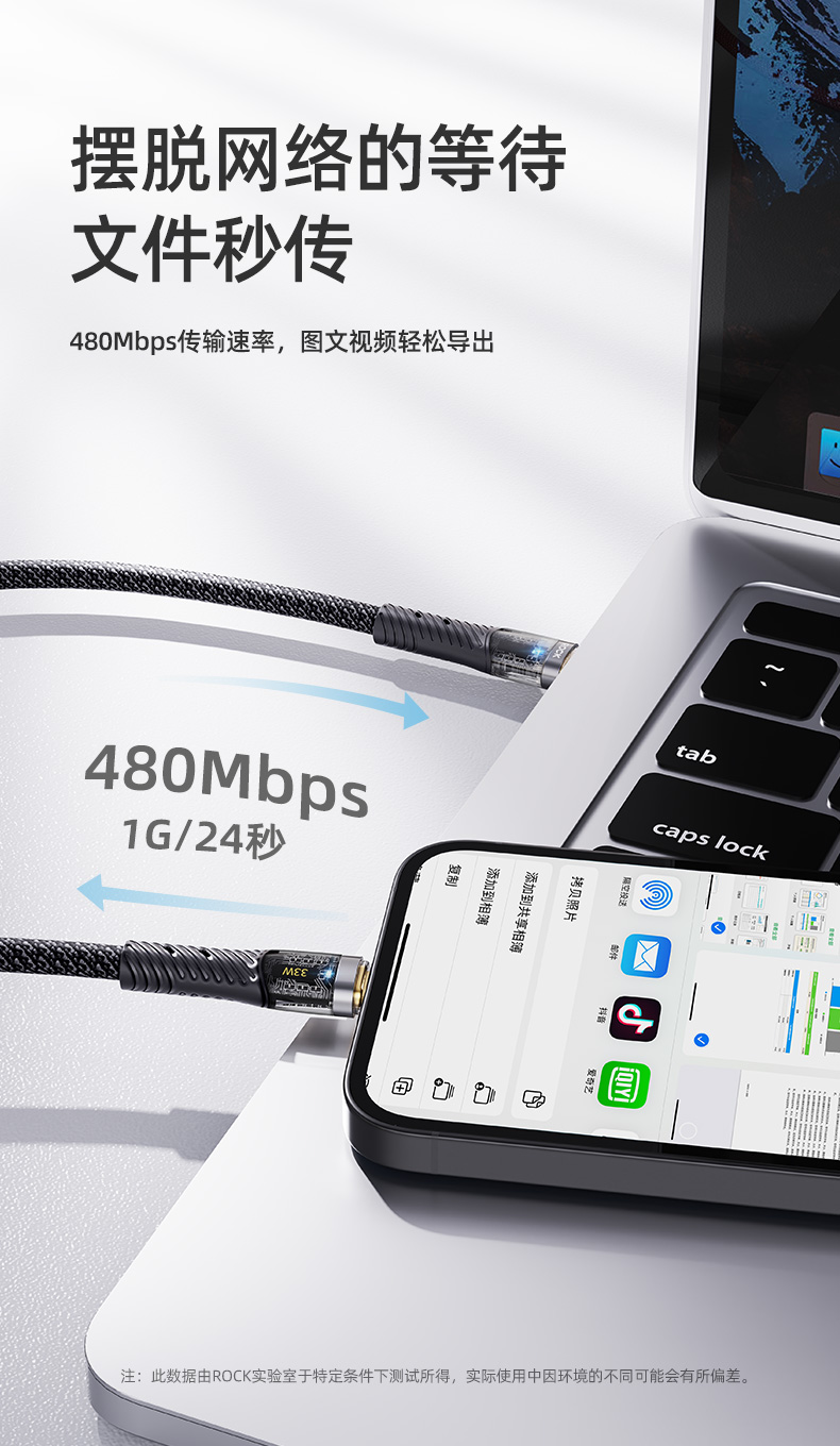 ROCK Z21 PD 33W 透明闪充数据线 C TO lighting L=120CM