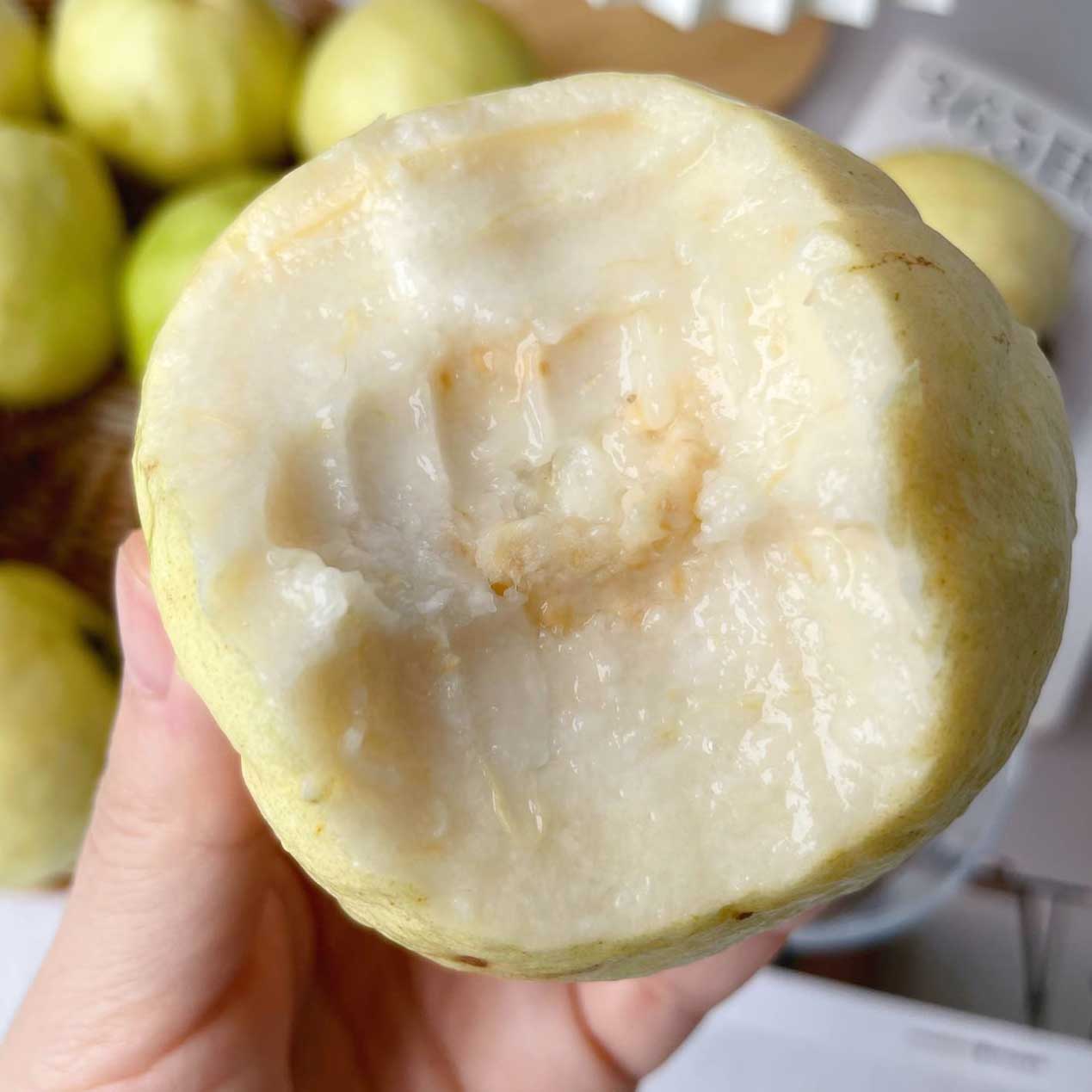 刚收到的芭乐比较清脆,果面比较绿,伴随着清香。想要软糯口感的小伙伴,可以静放两到三天,香味四溢,果肉绵密,汁水丰盈,大口吃才过瘾!