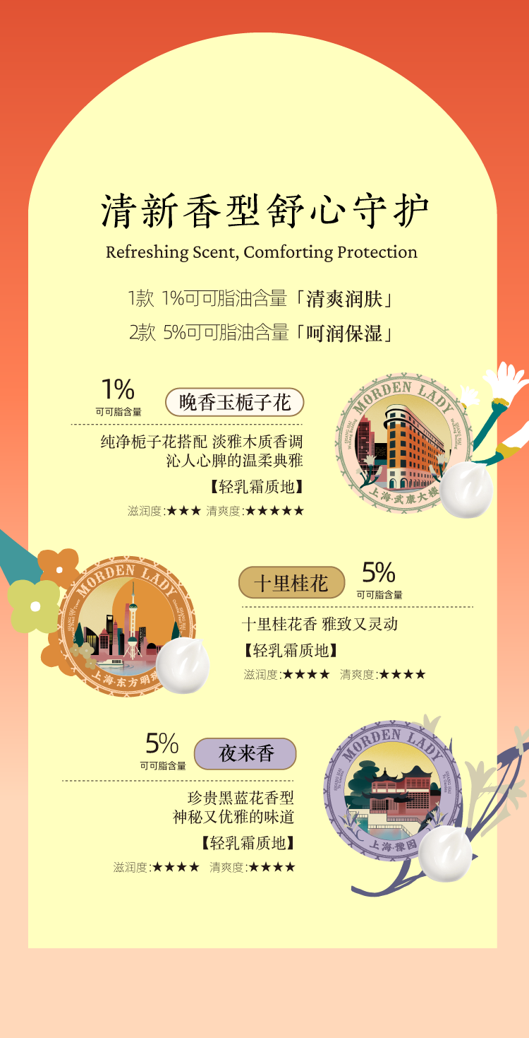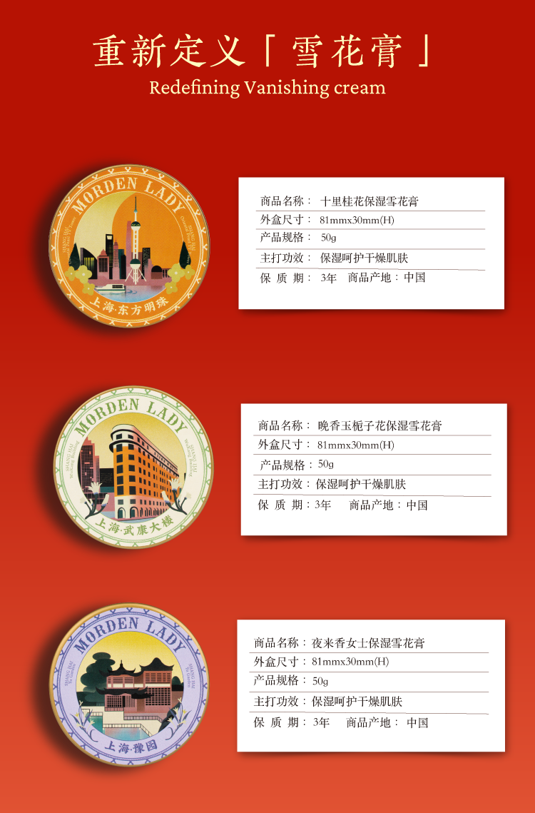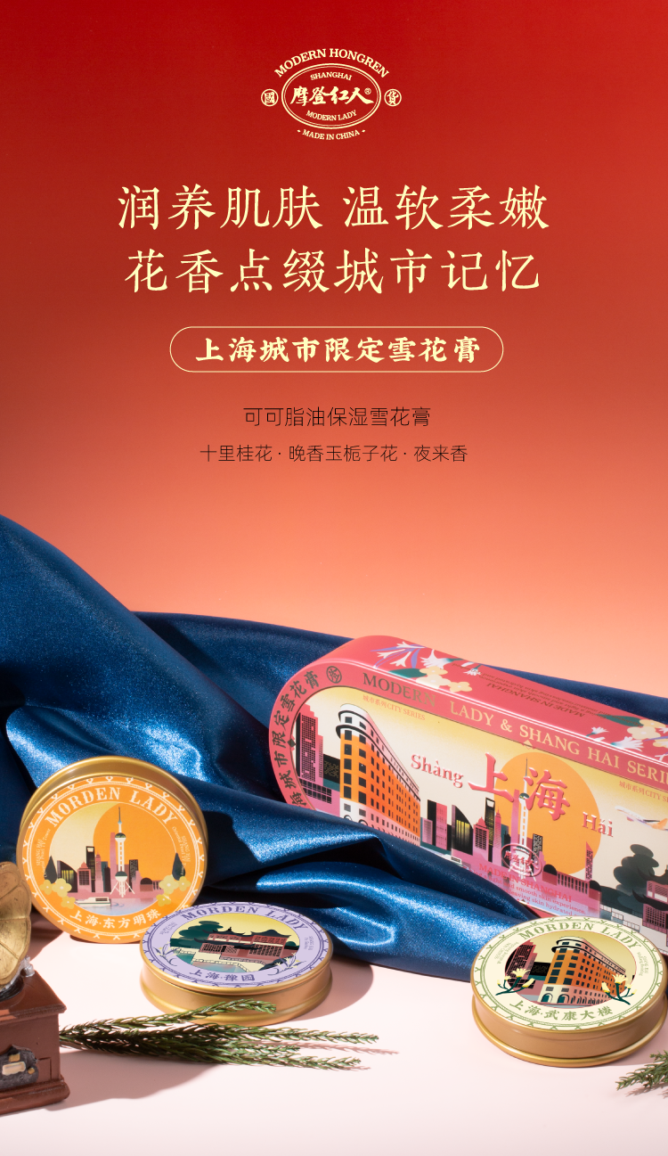 摩登红人官方正品上海城市系列可可脂雪花膏礼盒面霜手霜旅游伴手礼物桂花栀子花香