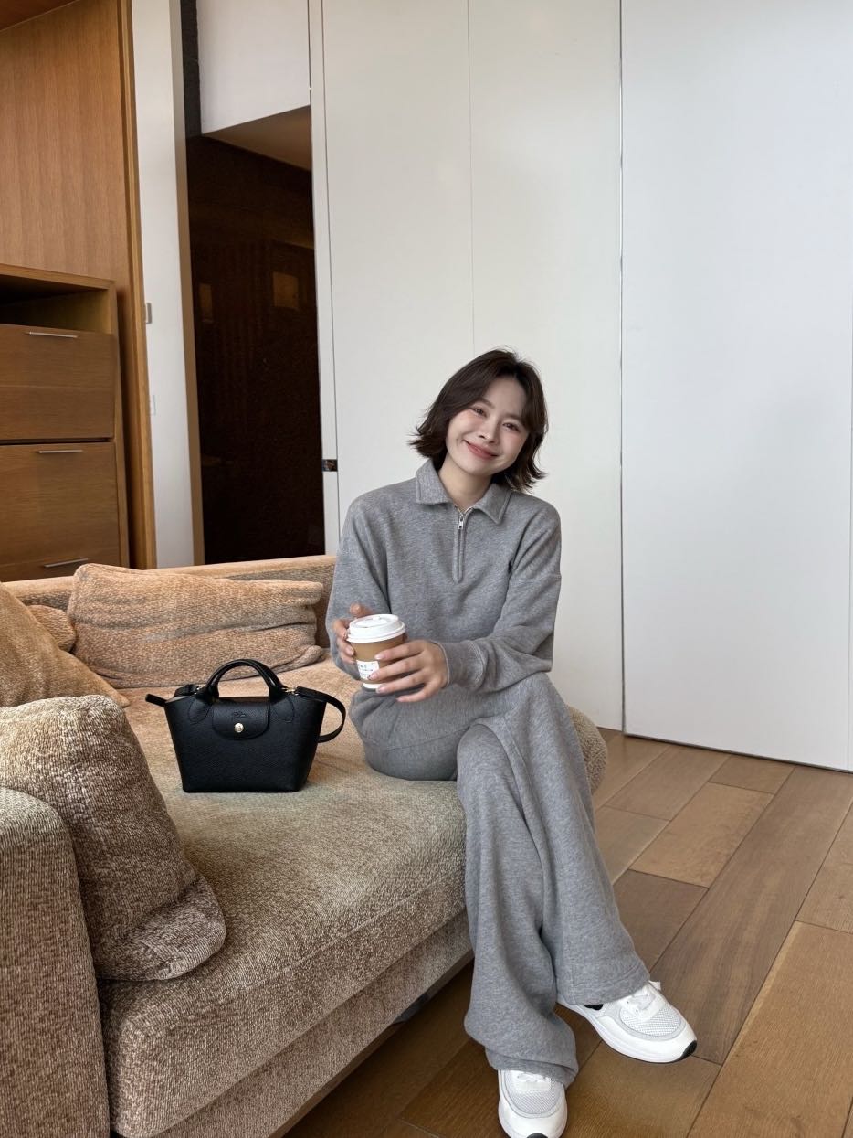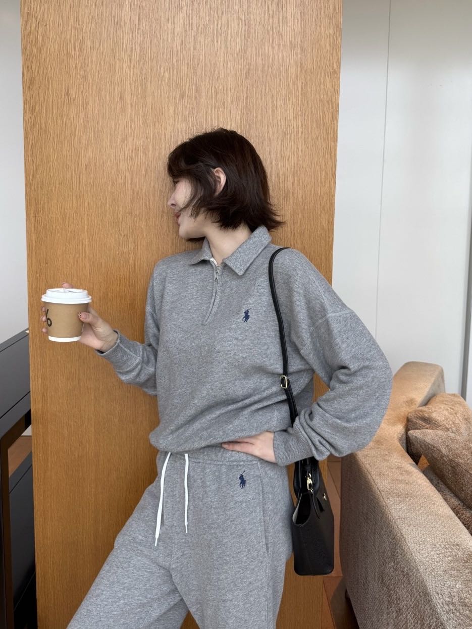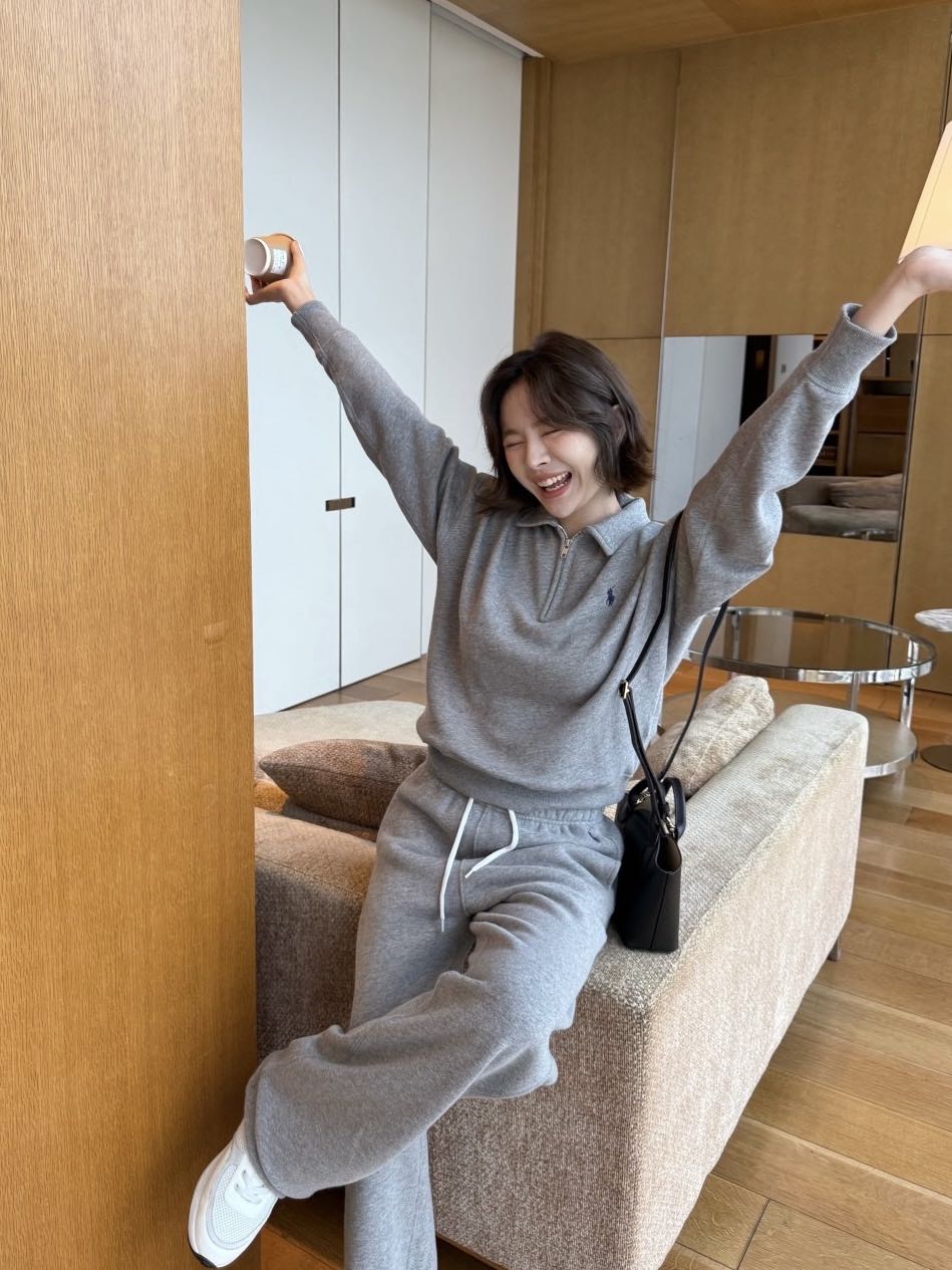 半拉链卫衣是毛圈面料,卫裤则是加绒面料,单穿搭配大衣或羽绒服,都是刚需单品,降温必备!