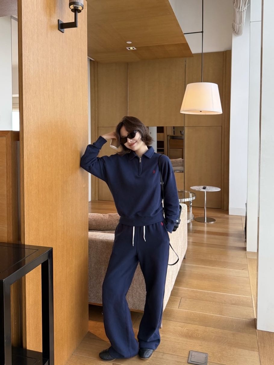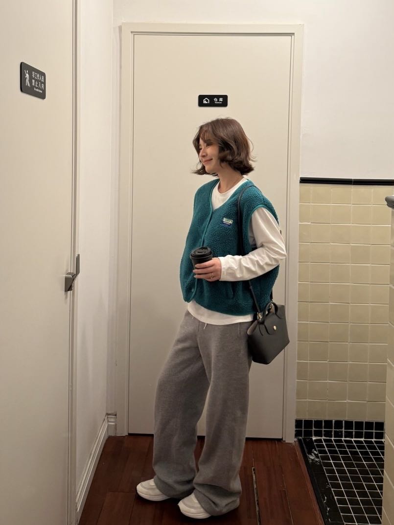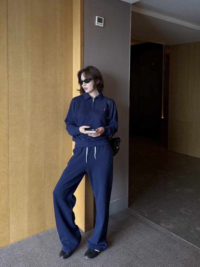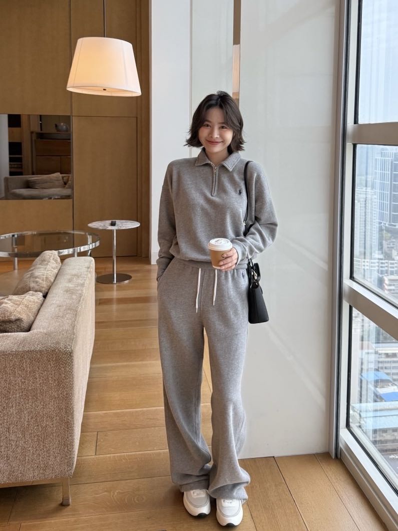 半拉链卫衣是毛圈面料,卫裤则是加绒面料,单穿搭配大衣或羽绒服,都是刚需单品,降温必备!
