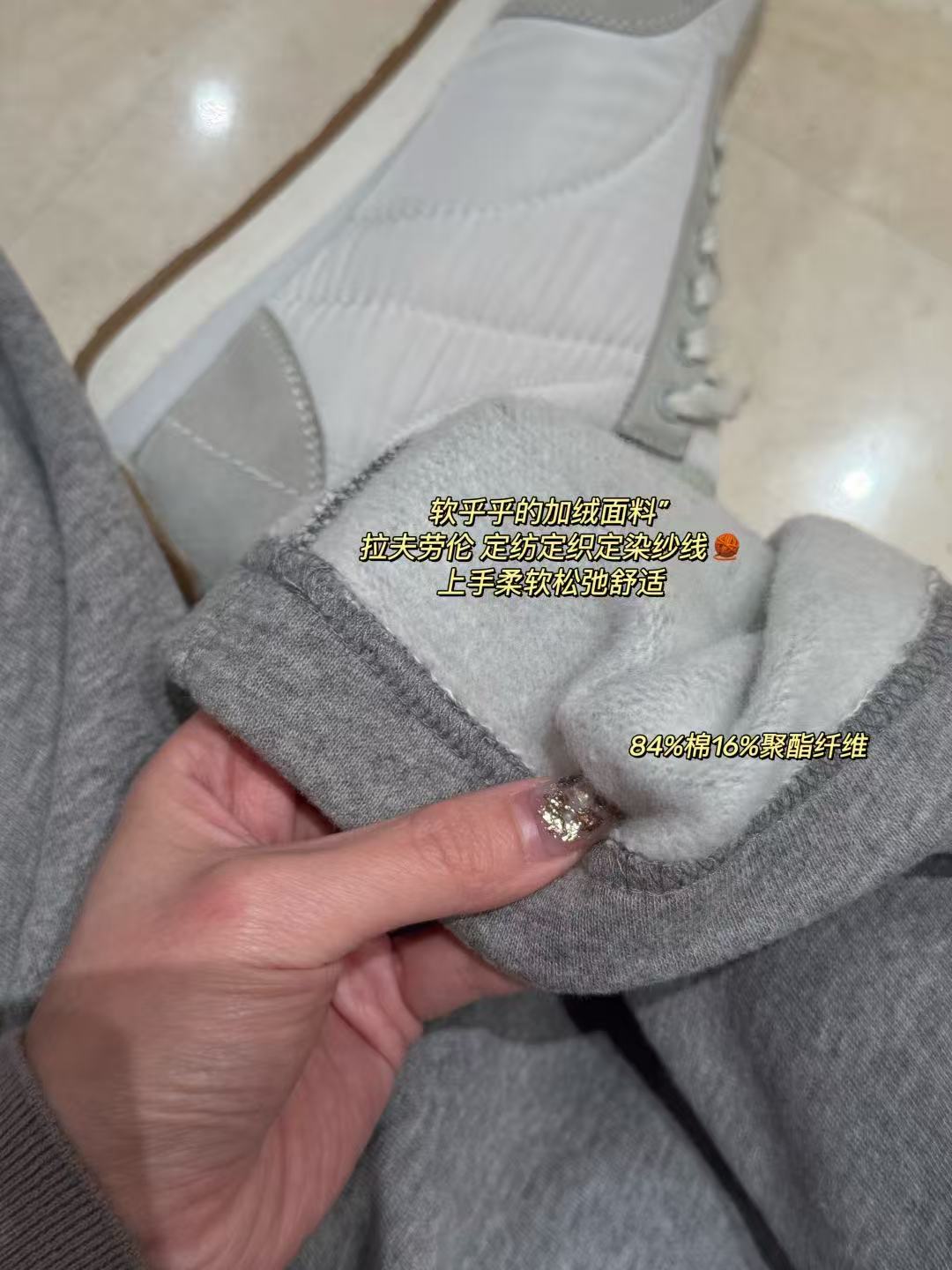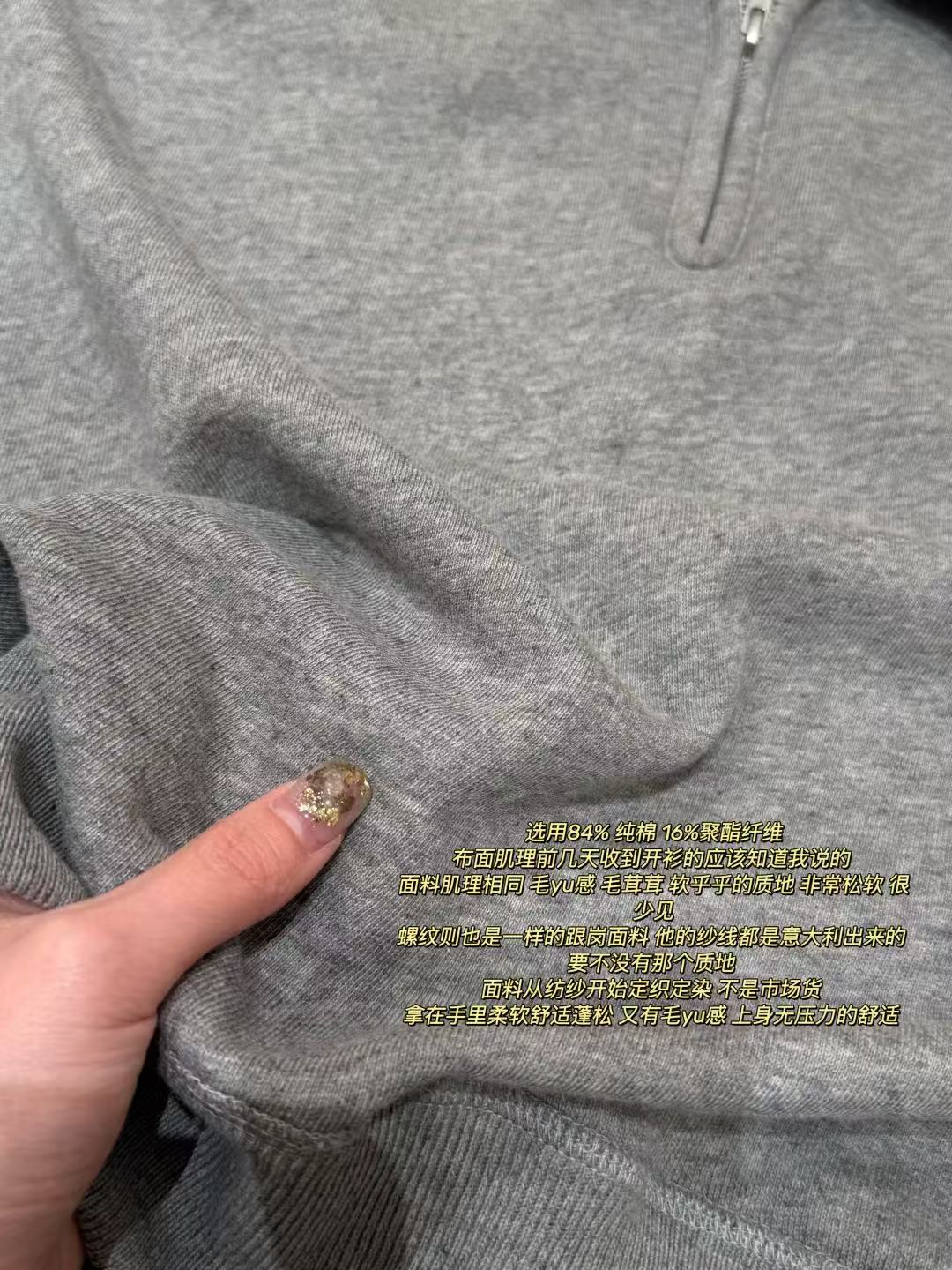 🎗️半拉链卫衣是毛圈结构,🎗️卫裤则是拉绒加绒结构,这也进一步说明了拉夫的考究,