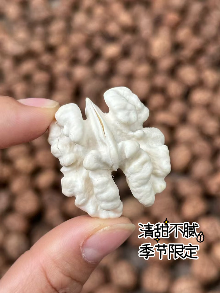 💦 物理清洗,只留本真鲜甜! - 健康安心! 新鲜打落 → 手工剥去青皮 → 清澈山泉水多次冲洗→ 自然晾干表皮。坚决不漂白!不添加任何化学物质! 您收到的核桃,外壳干净质朴,内里果仁 水润脆嫩,鲜气十足