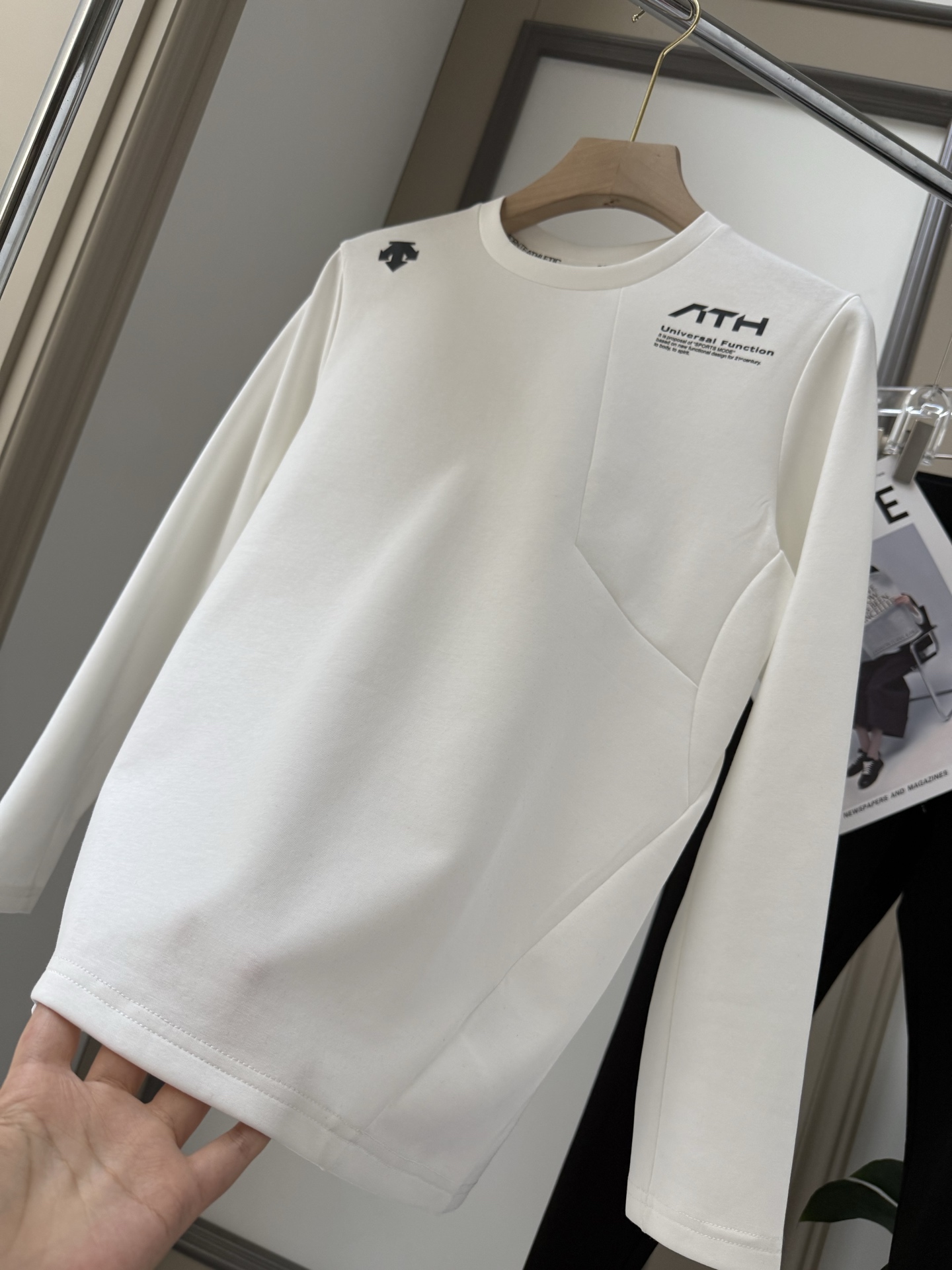 99 货号080756099 xj 迪桑特早秋运动衫!具有辨识度的长袖运动衫。爆款销量 成为众多男士必收的一件、别致的设计风格,点亮上身效果,诠释独有的个性。优质面料,吸湿排汗,跑步、训练均适宜,袖身立体剪裁,贴合手臂轮廓,修型挺括,展现现代精致风格,手感顺滑不起褶皱,经久耐磨,240克曼巴棉针织面料,有弹力且纹理富有质感,黑白两色款式设计细节非常繁琐,使上身更有层次感,凸显精致,让衣服更显运动元素,搭配衣领气质简约而不简单,美观且方便携带运动随身物品!!衣服胸前高档立体logo,彰显限量版的独特气质,全身采用客供的辅料,全部都带logo。整体车线走针整齐精密,高端系列ACTIVE版型剪裁极为出众,对于身材的修饰性 以及舒适度 版型挺括性,都是无与伦比。
