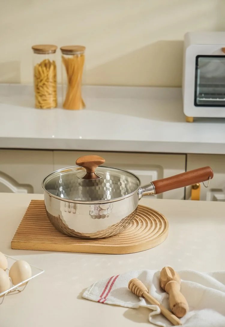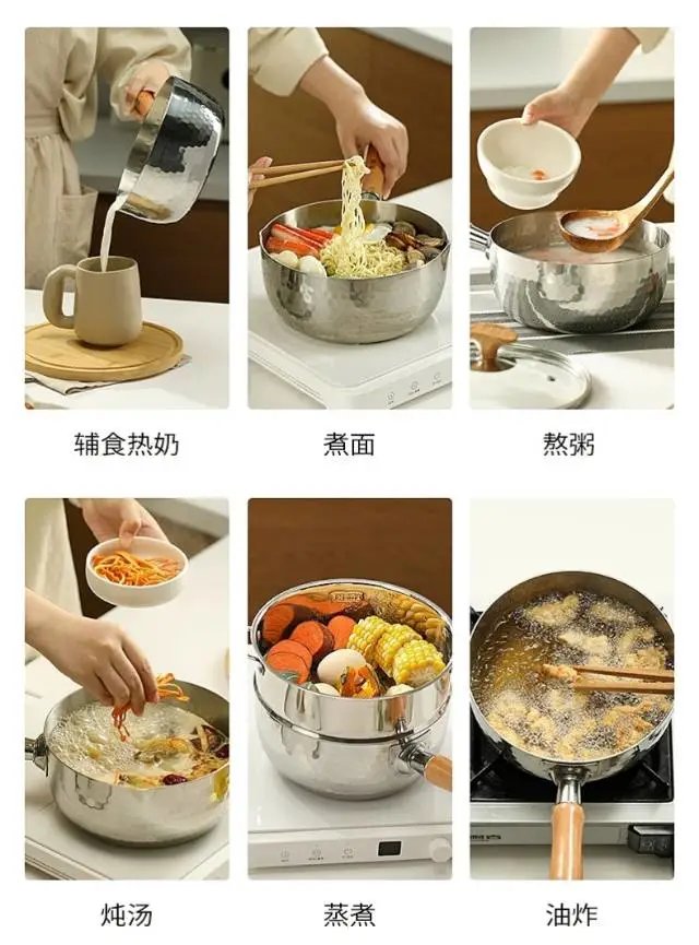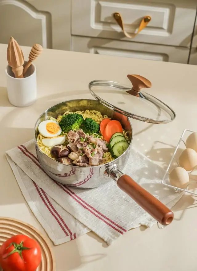 咱先说这锅的材质啊,质量杠杠的。加厚的设计让它受热特别均匀,不像我之前买的那些雪平锅,受热不均不说,还老容易发黑。但这个锅就不一样了,用了一段时间了,一点都没有发黑的迹象。