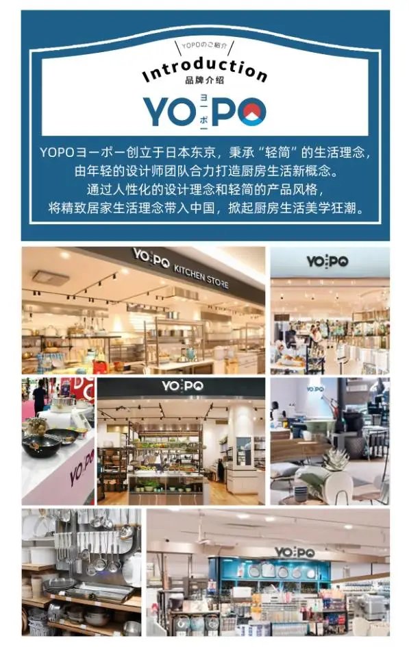 YOPOヨ一ポ一创立于日本东京,秉承“轻简”的生活理念,由年轻的设计师团队合力打造厨房生活新概念。通过人性化的设计理念和轻简的产品风格,将精致居家生活理念带入中国,掀起厨房生活美学狂潮。