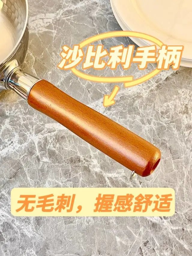 咱再说说这这手柄和钉珠可太有质感了,采用的是沙比利实木,摸起来光滑不刮手。这设计既复古又高档,看着就特别上档次。用这个锅做饭,感觉厨房都变得高级了