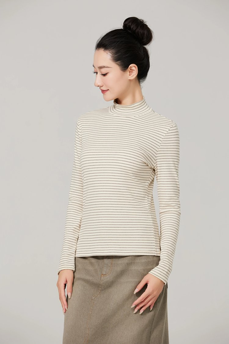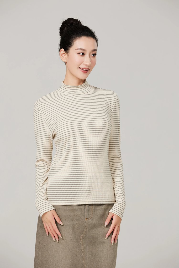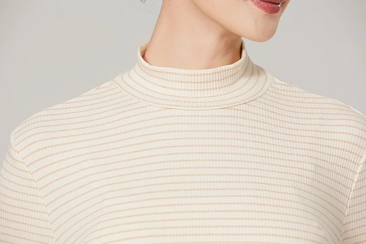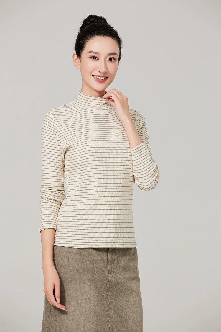 薄款女士打底衫,5cm小高领修身版型,贴合人体曲线,保护颈部皮肤,柔美的线条呈现舒适自然的形态,上身利落干练,简约大气。