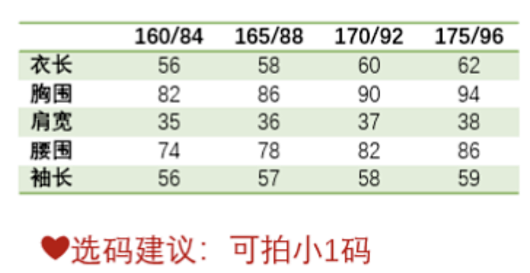 尺码:160/165/170/175
