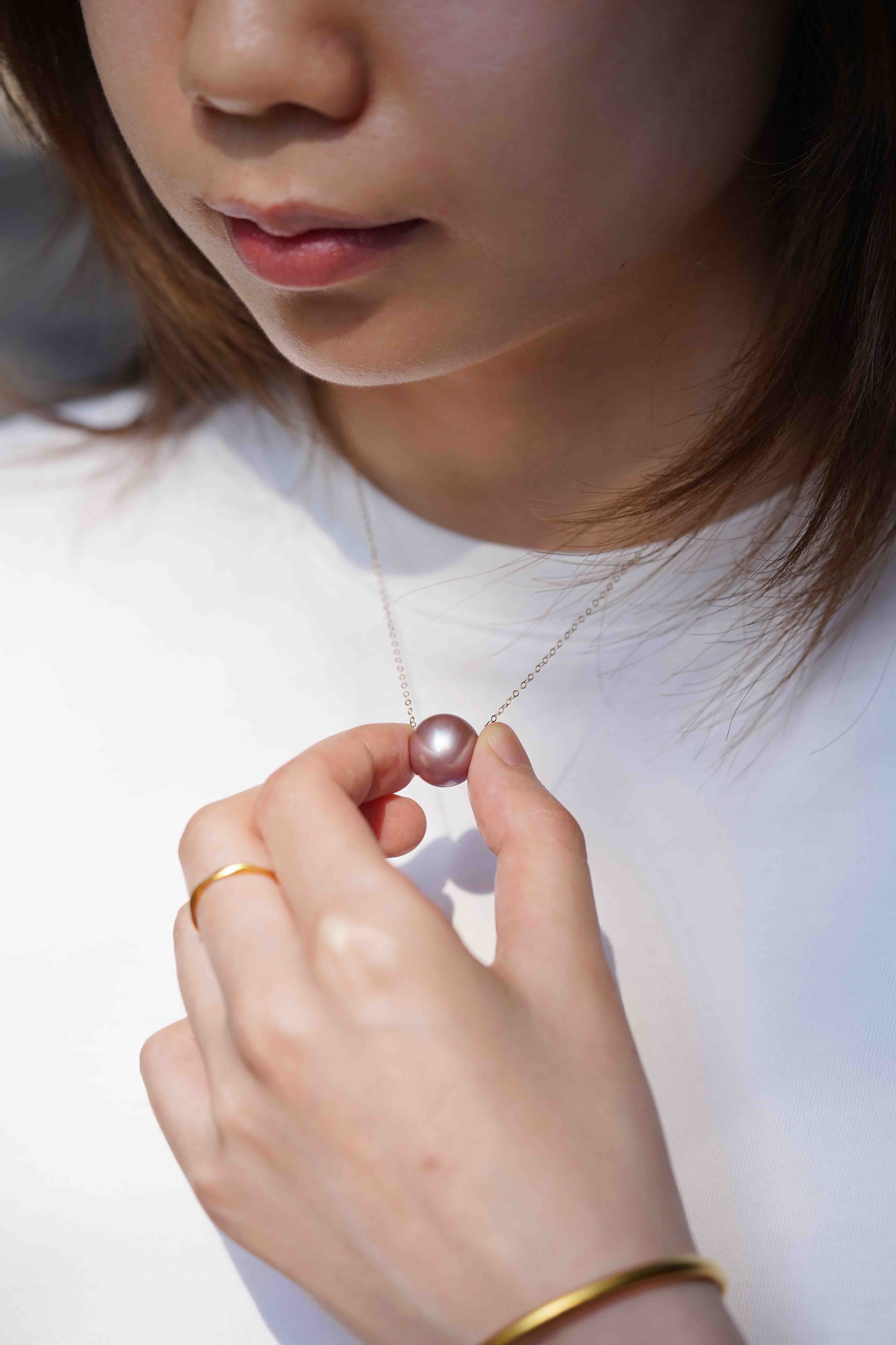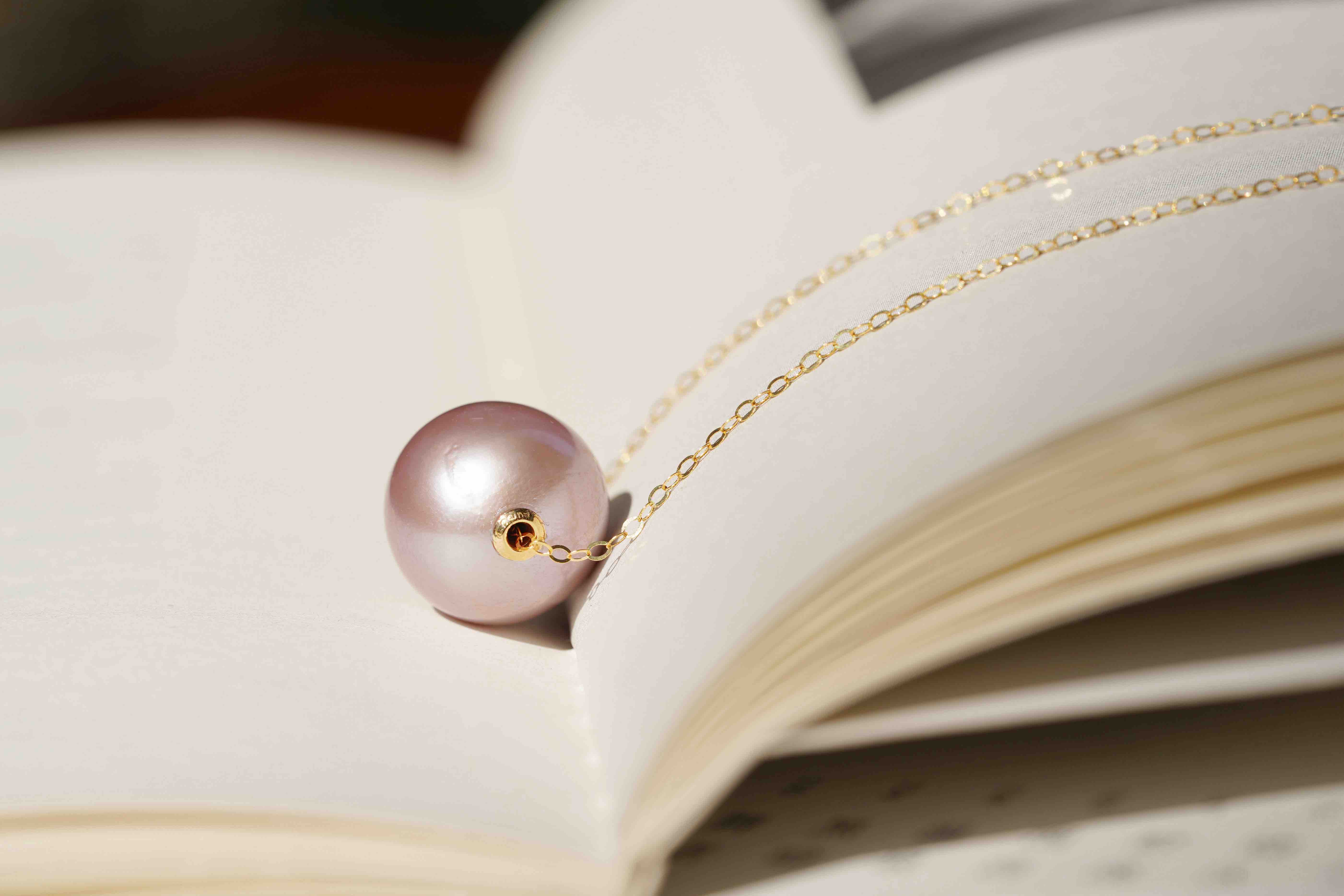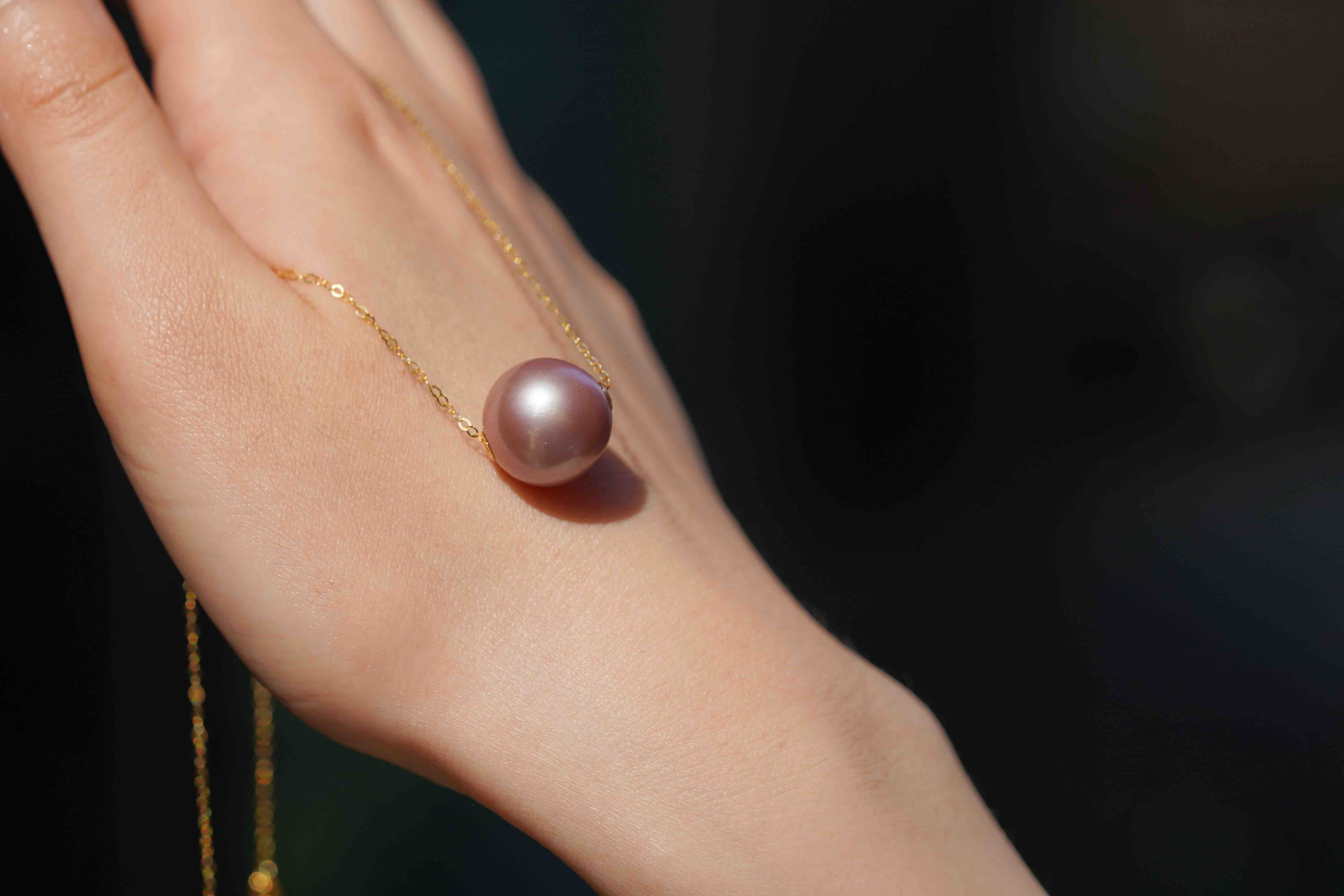 这个作品我们打了通孔做路路通,18k金链。如果最近一定要买一颗珍珠,选她。