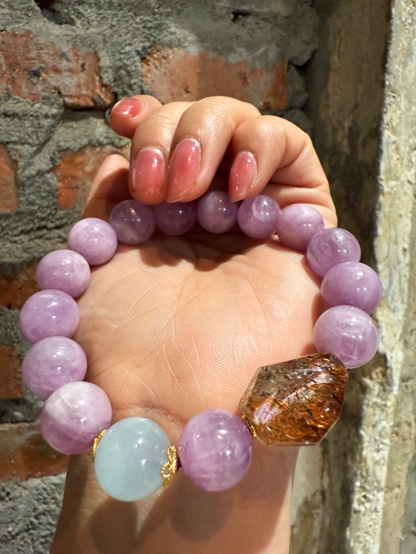 紫锂辉 12mm 大 ➕ 黑金超7 天然随行 ➕ 12mm 单颗海蓝宝