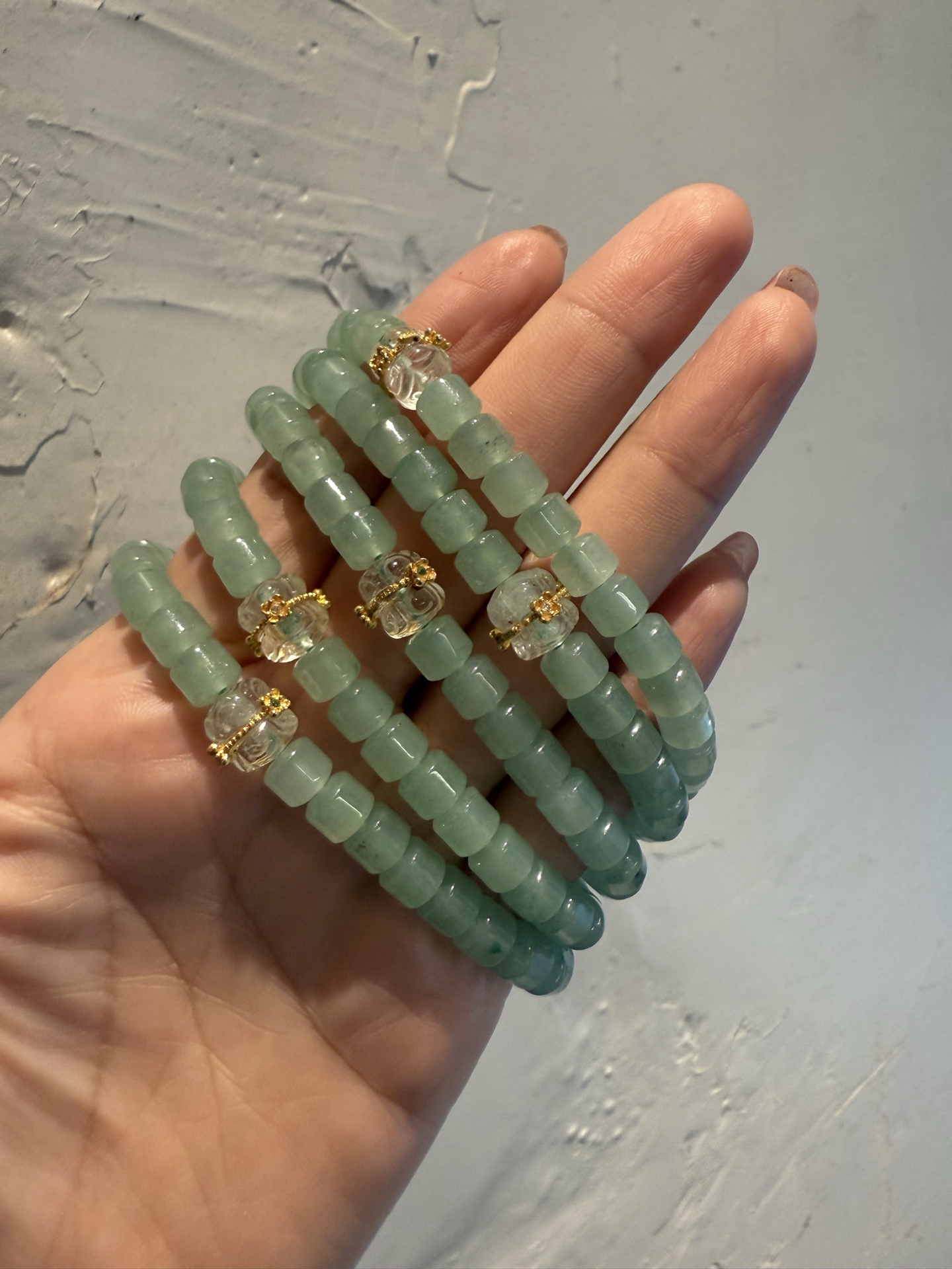 出台湾的 简洁 大方款 东陵玉 加 白水晶 转运珠 手链
