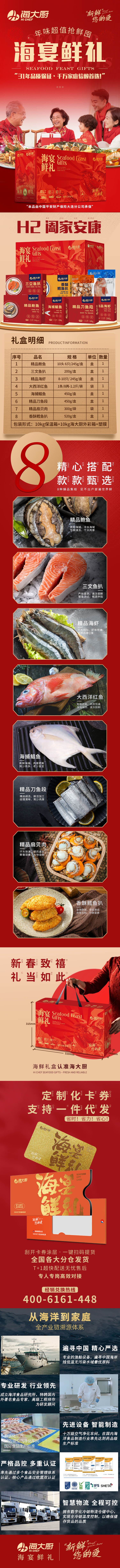 瑞驰海大厨H系列新年海鲜礼盒,让团圆时刻更添“鲜”气,承包您新年家宴的c位大餐!现代化工厂,原料产地可追溯,权威检测机构出具报告,吃的安全买的放心!瑞驰集团出品!顺丰/京东冷链全国包邮(偏远地区除外)