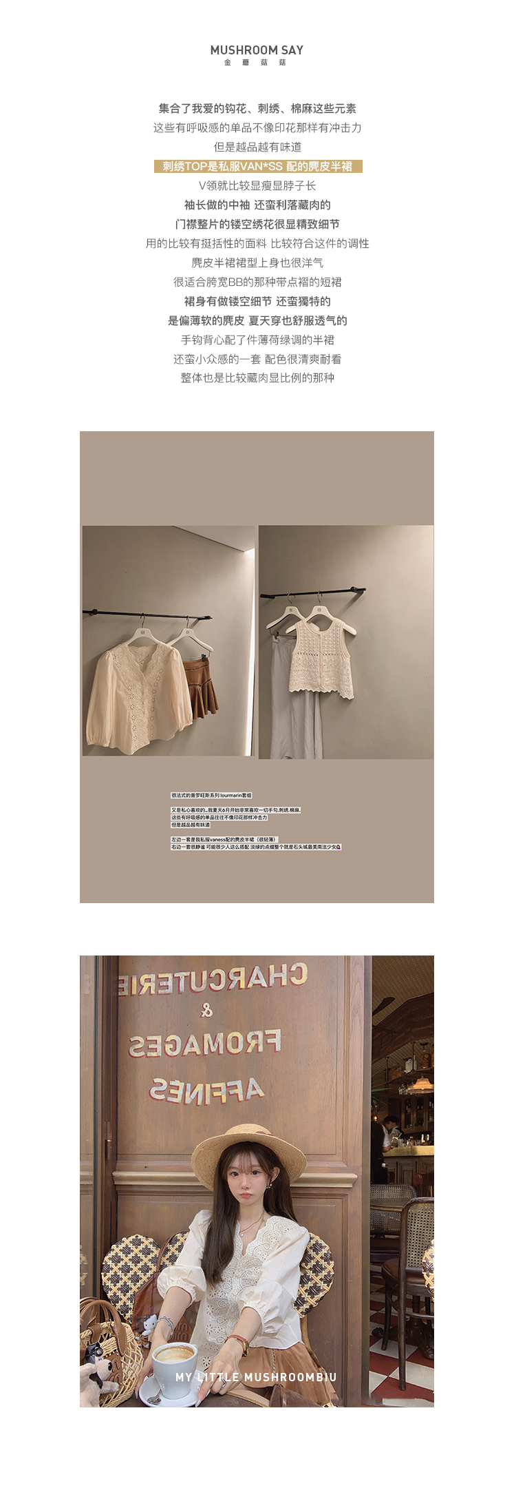 金蘑菇菇 capelongue普罗旺斯 /多版本 法式镂空钩花无袖上衣背心