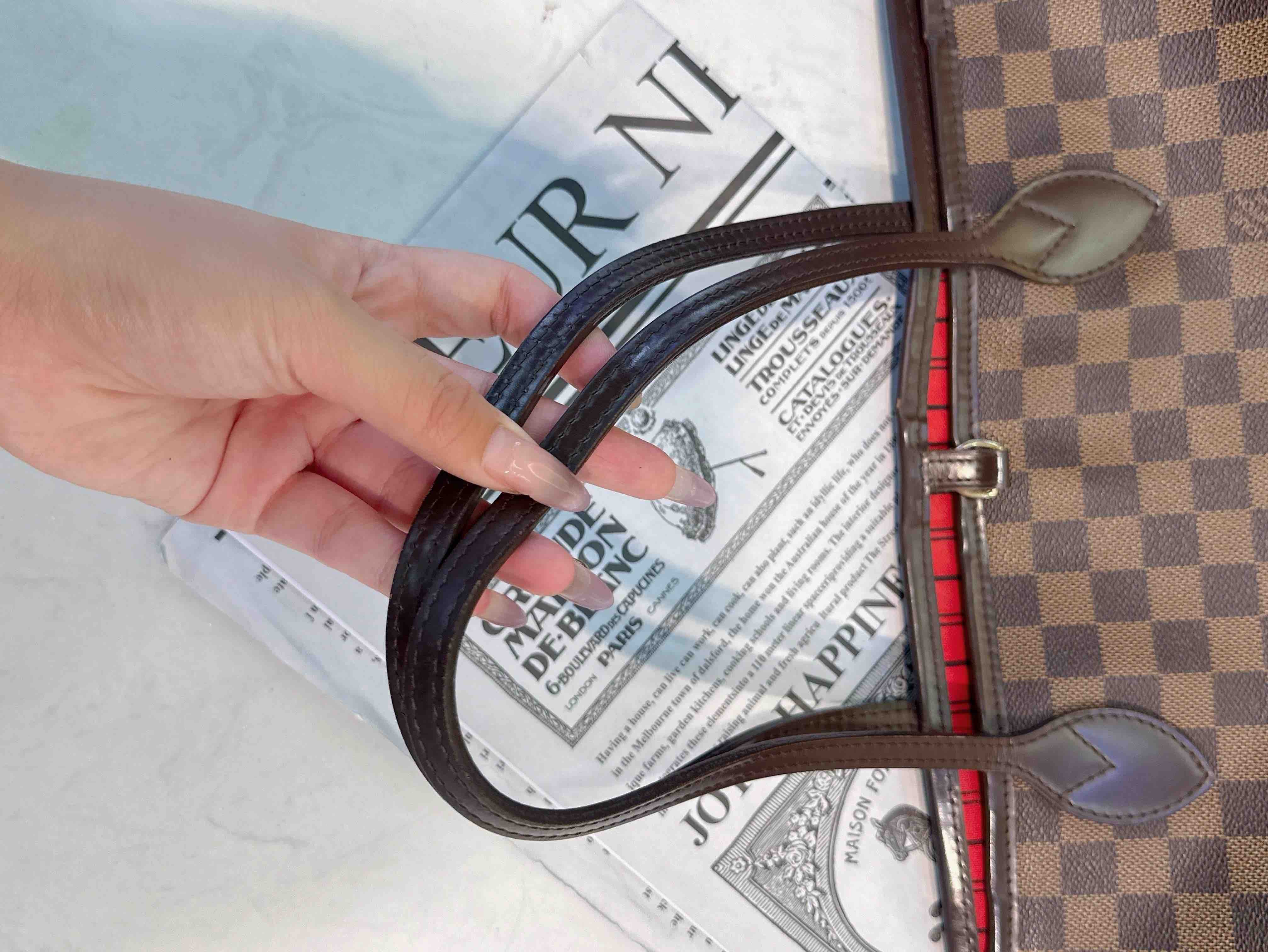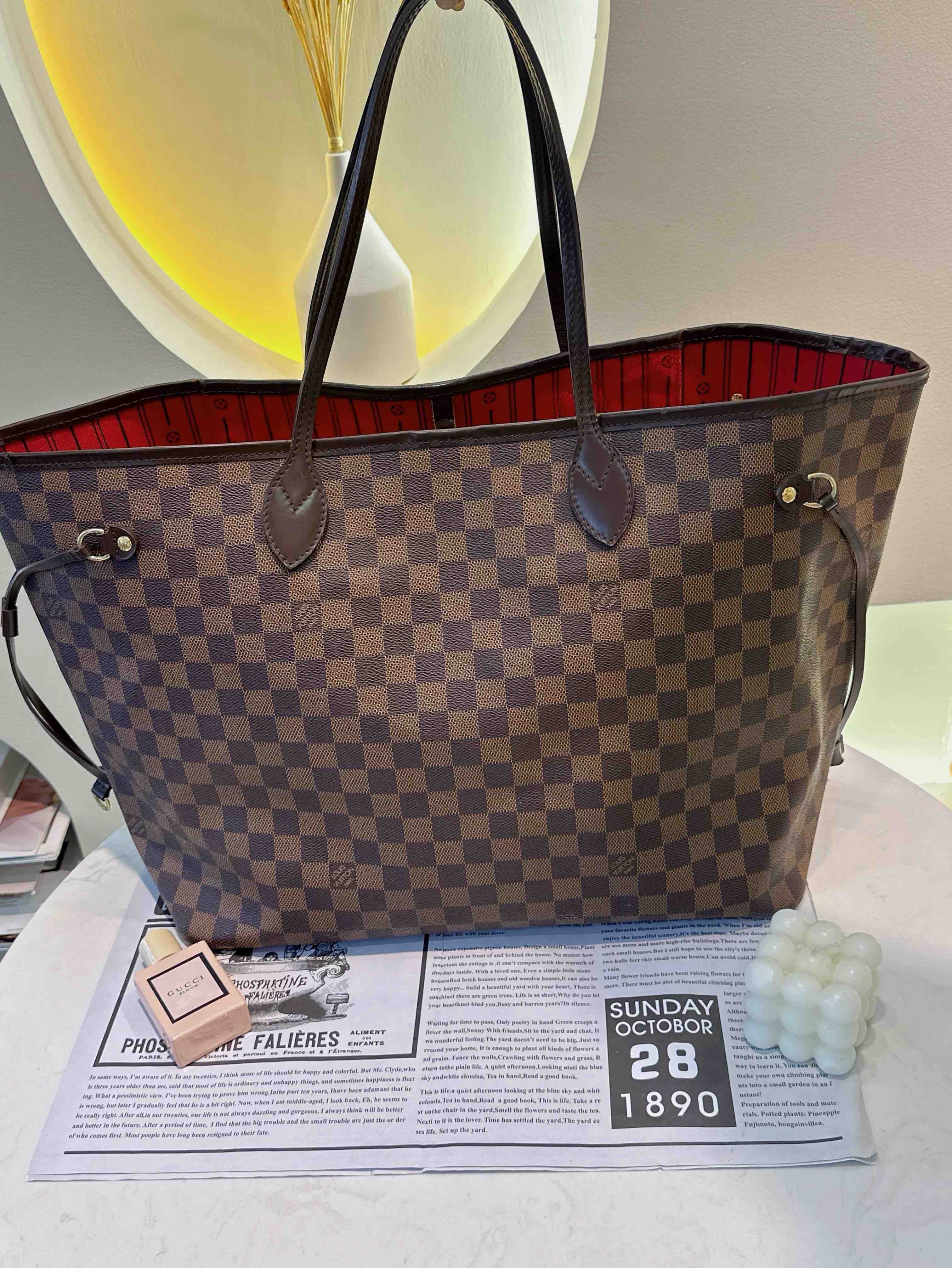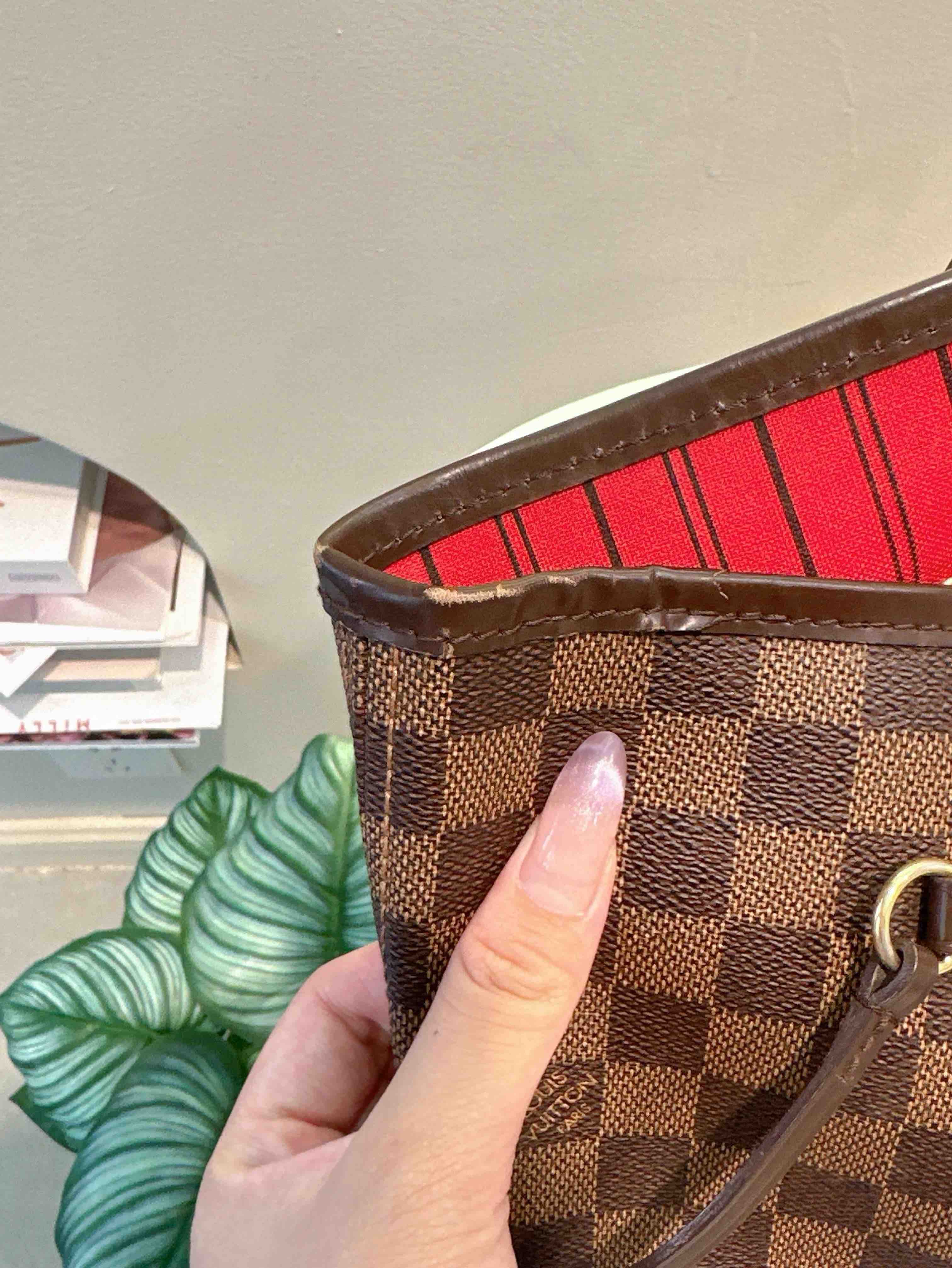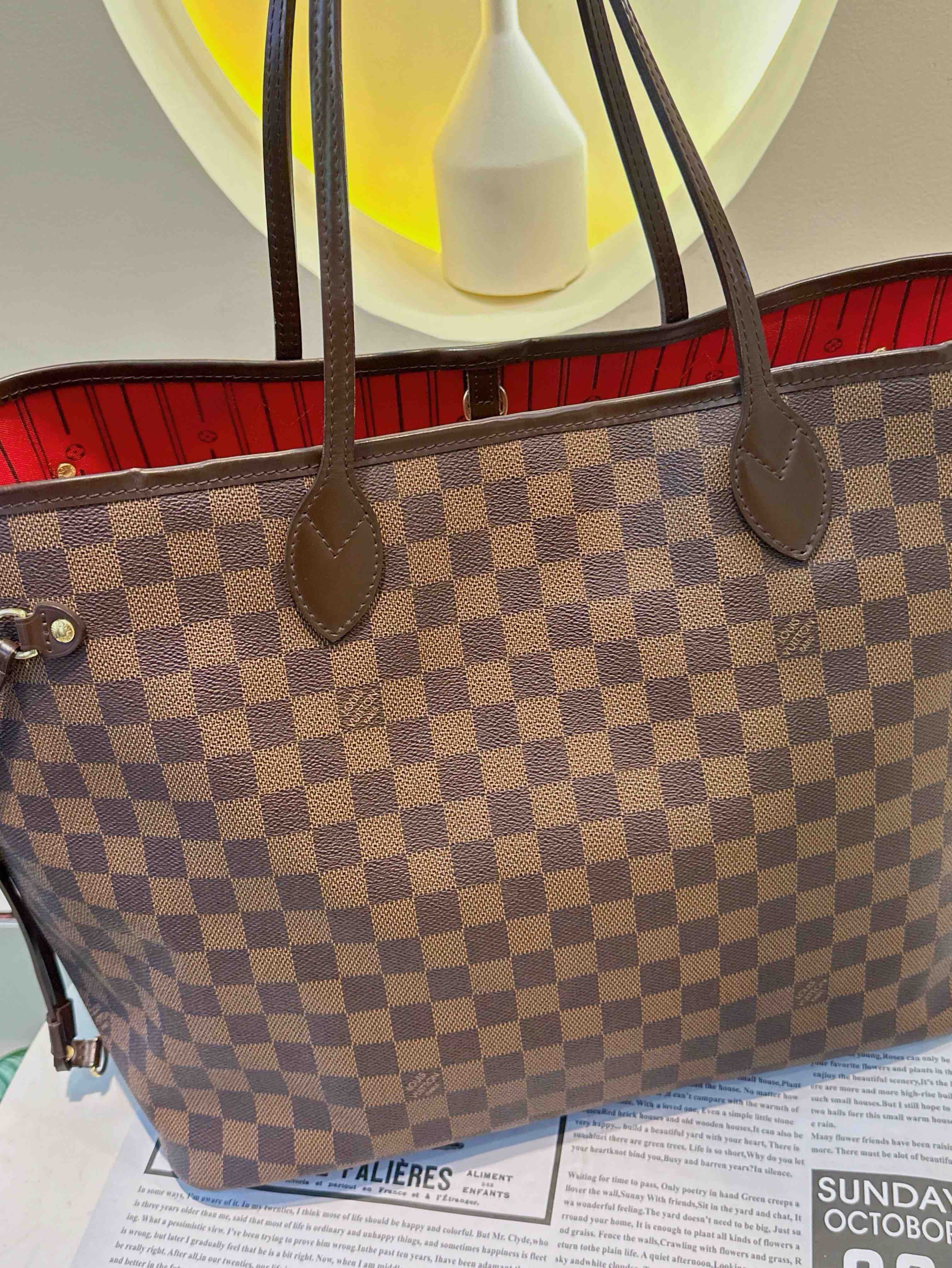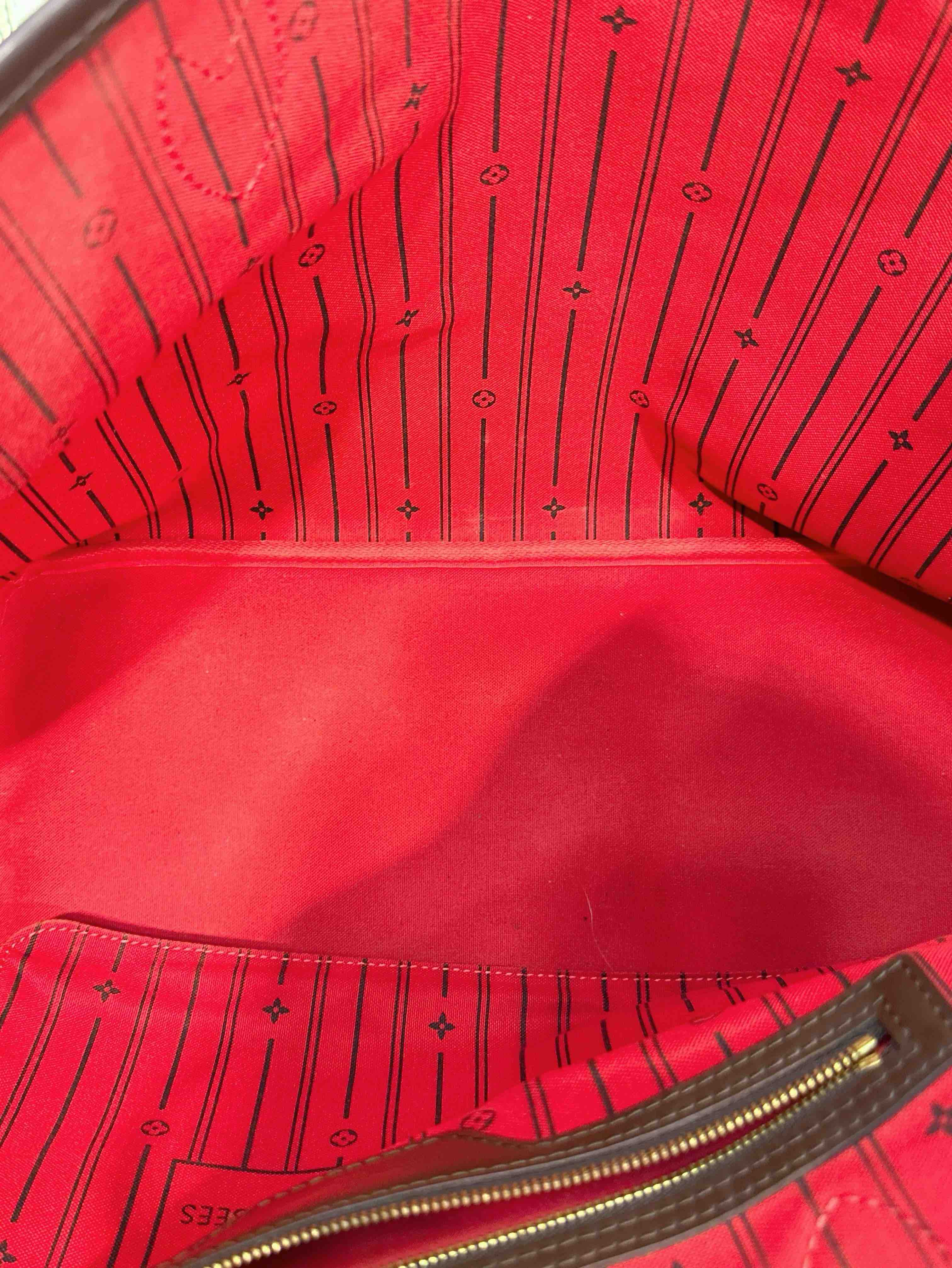 【商品詳情】正品二手 LV 大号 棕棋盘格 红条纹内里 nf 托特包🧸 93新 39*32 配件:子袋。包口包边有使用摩擦 内里有轻微使用脏。经典托特