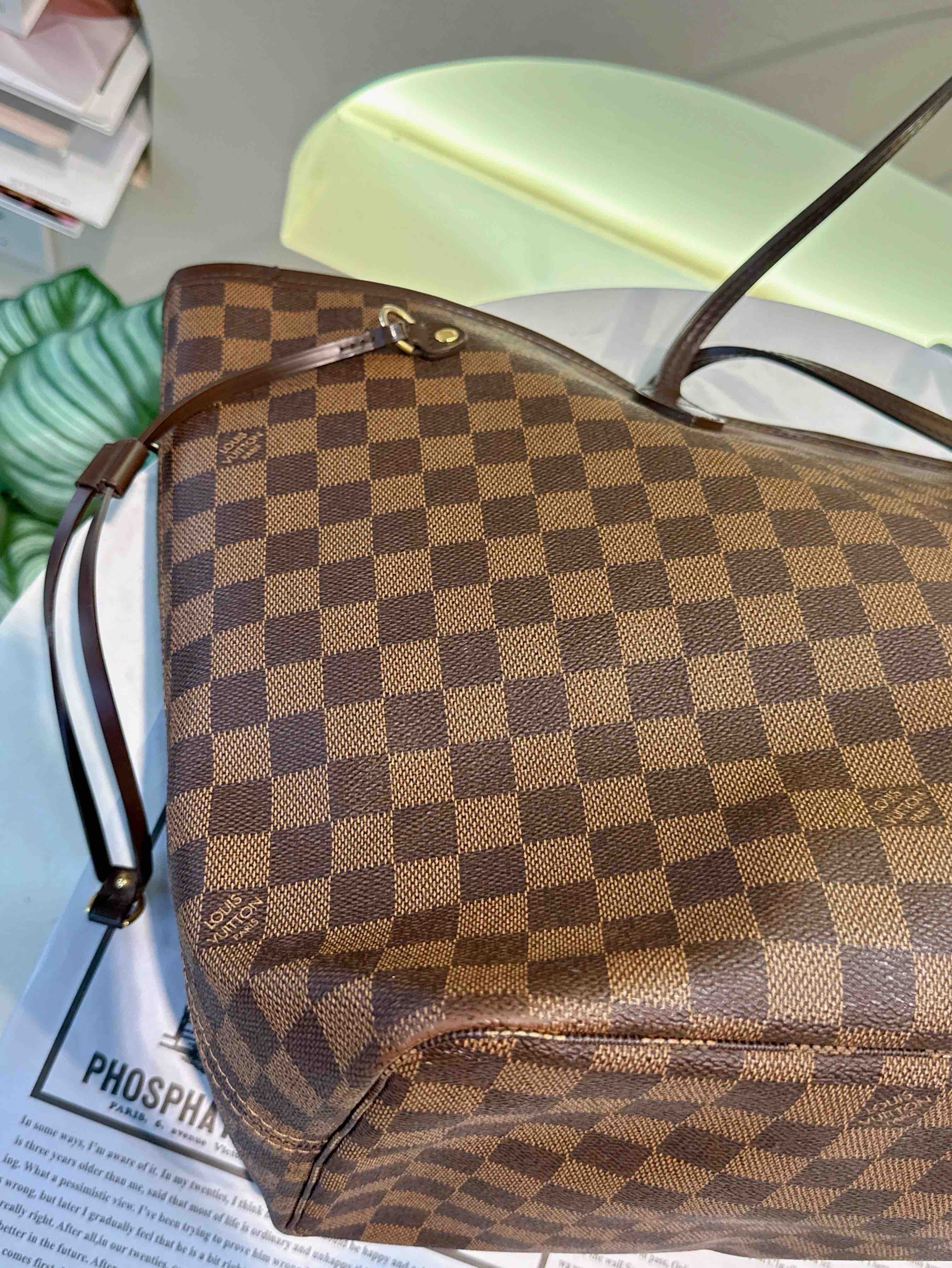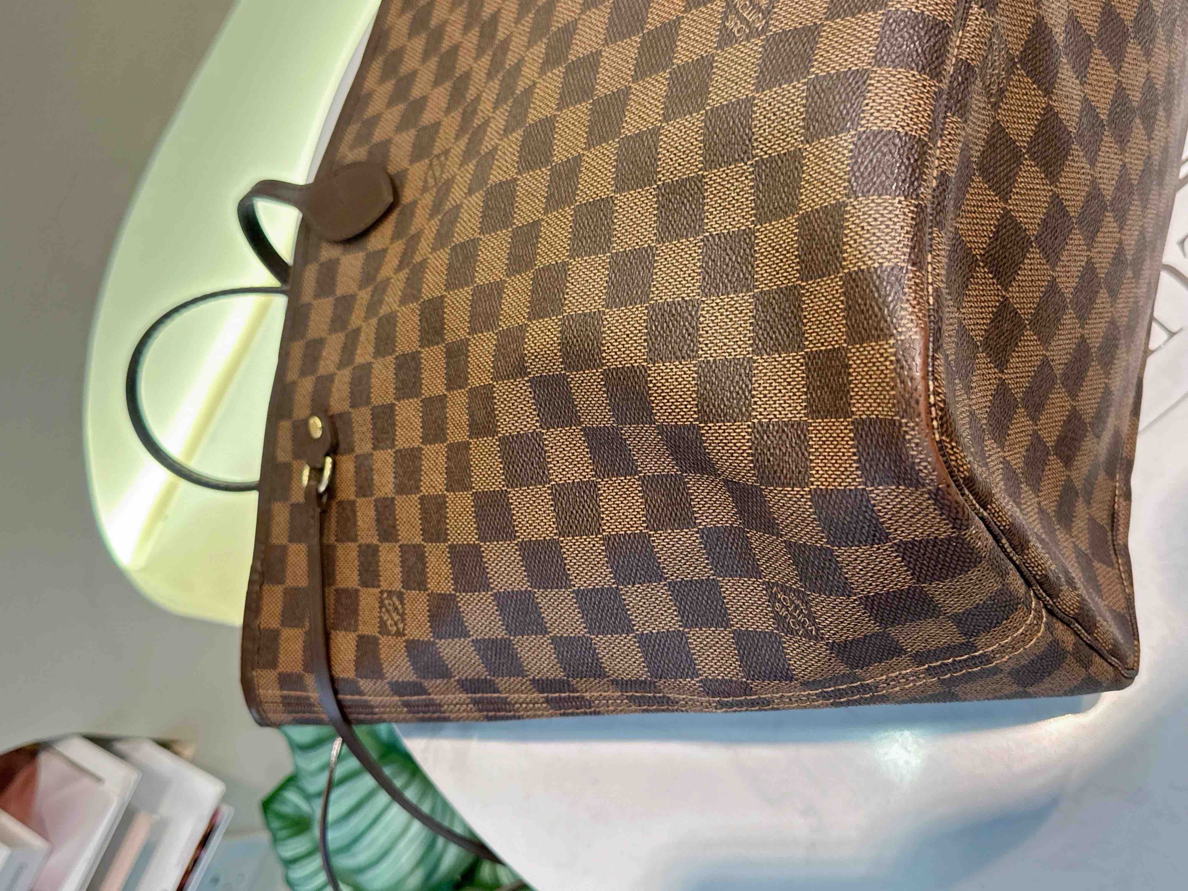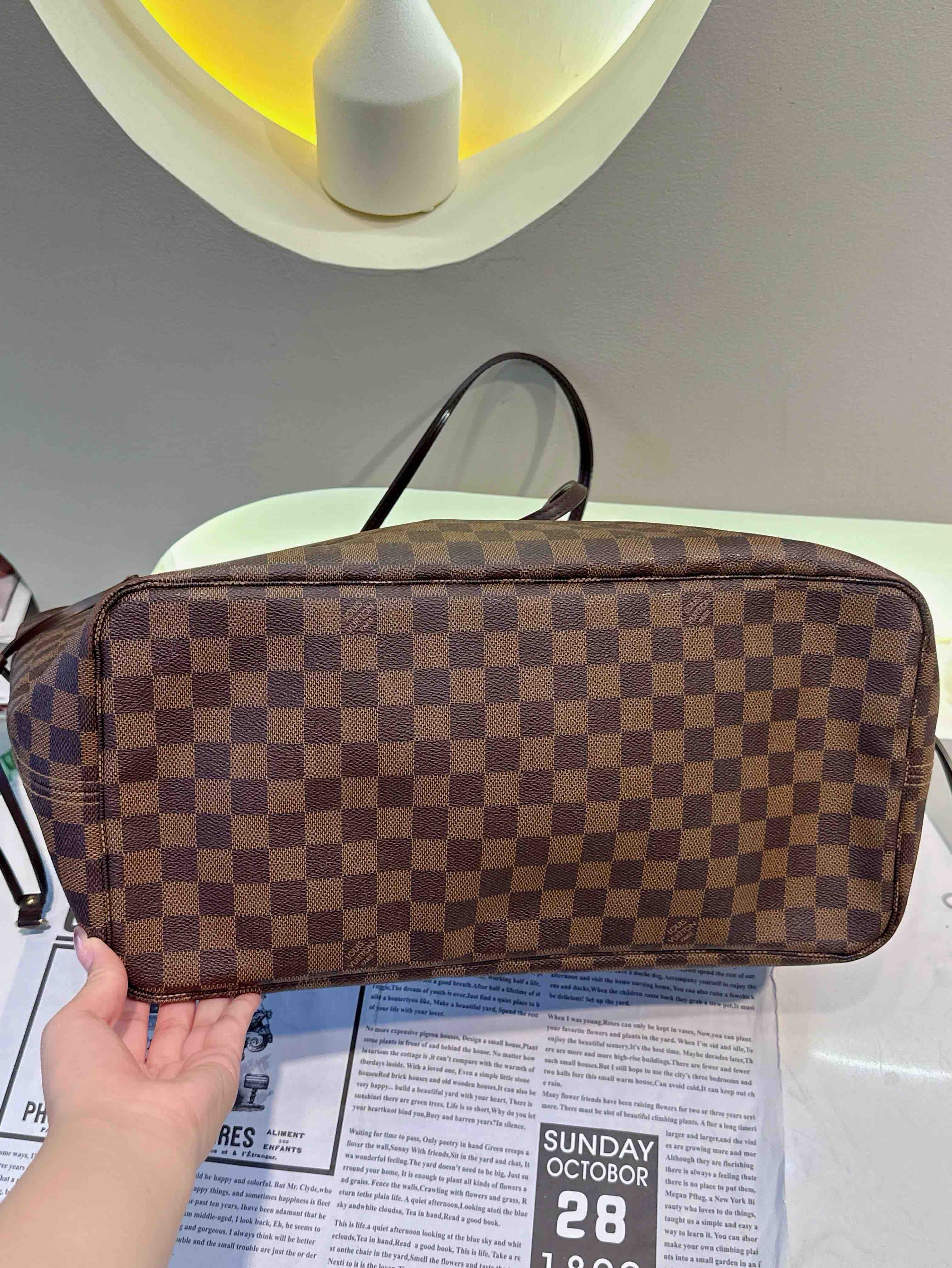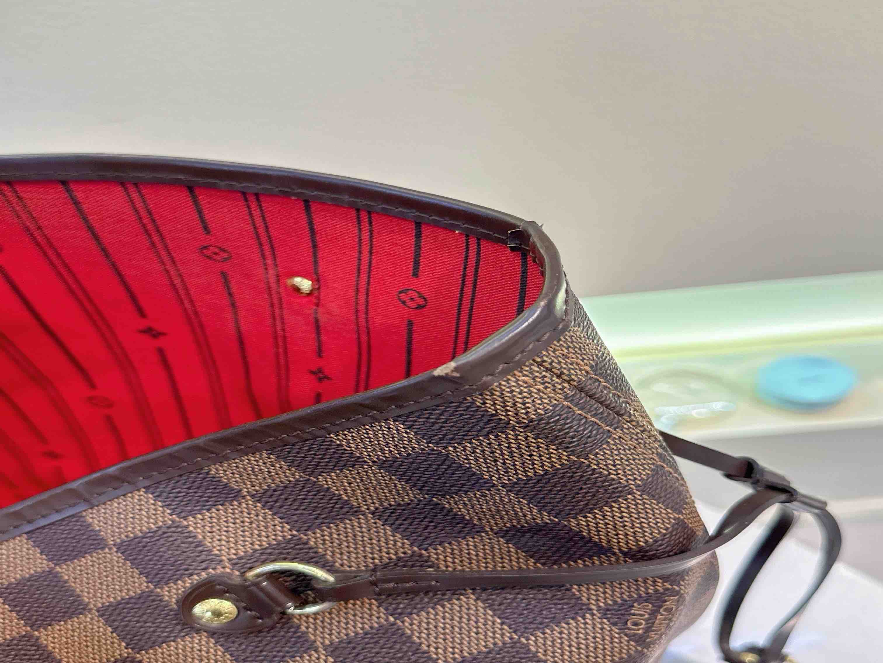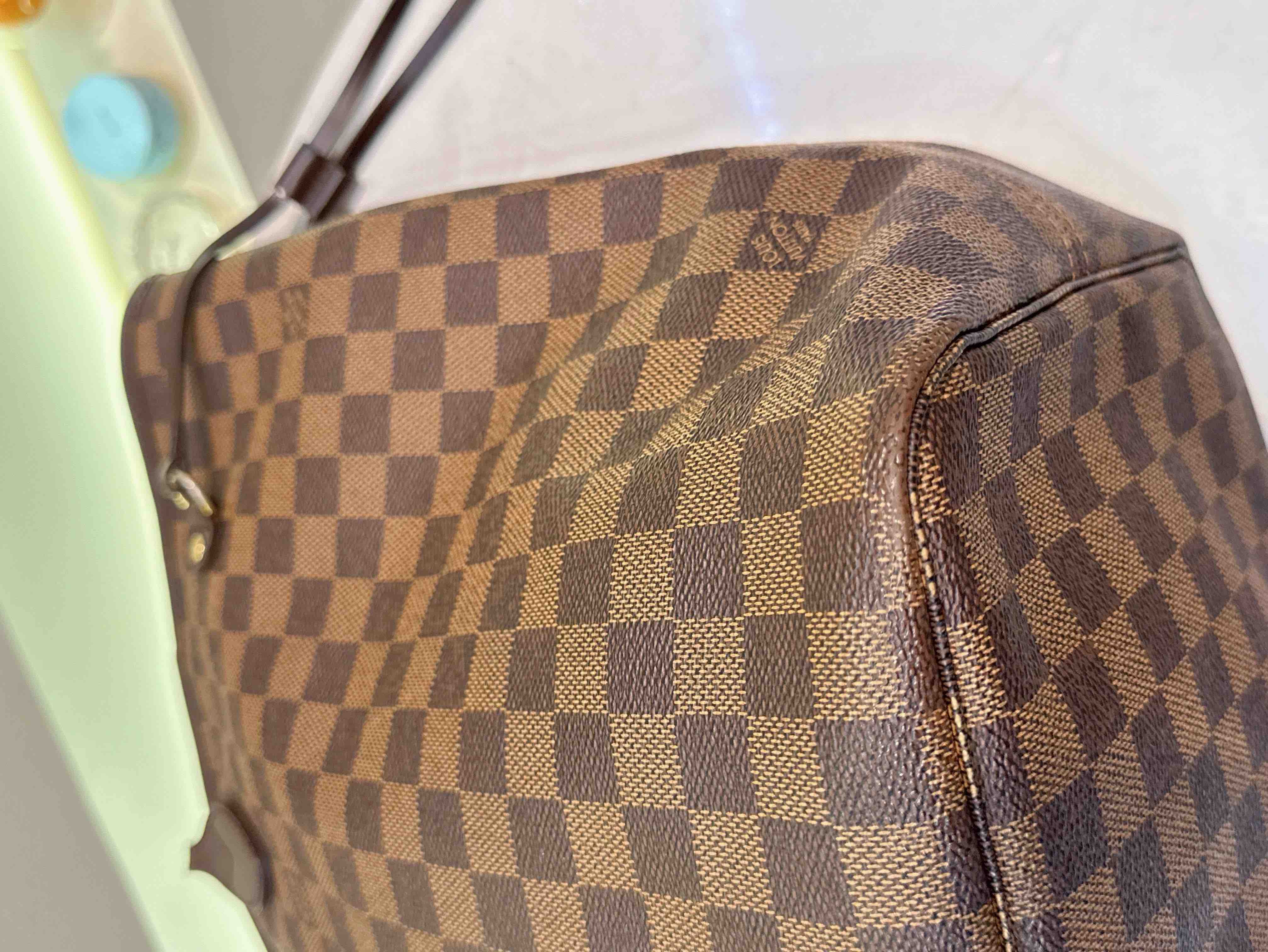 【商品詳情】正品二手 LV 大号 棕棋盘格 红条纹内里 nf 托特包🧸 93新 39*32 配件:子袋。包口包边有使用摩擦 内里有轻微使用脏。经典托特