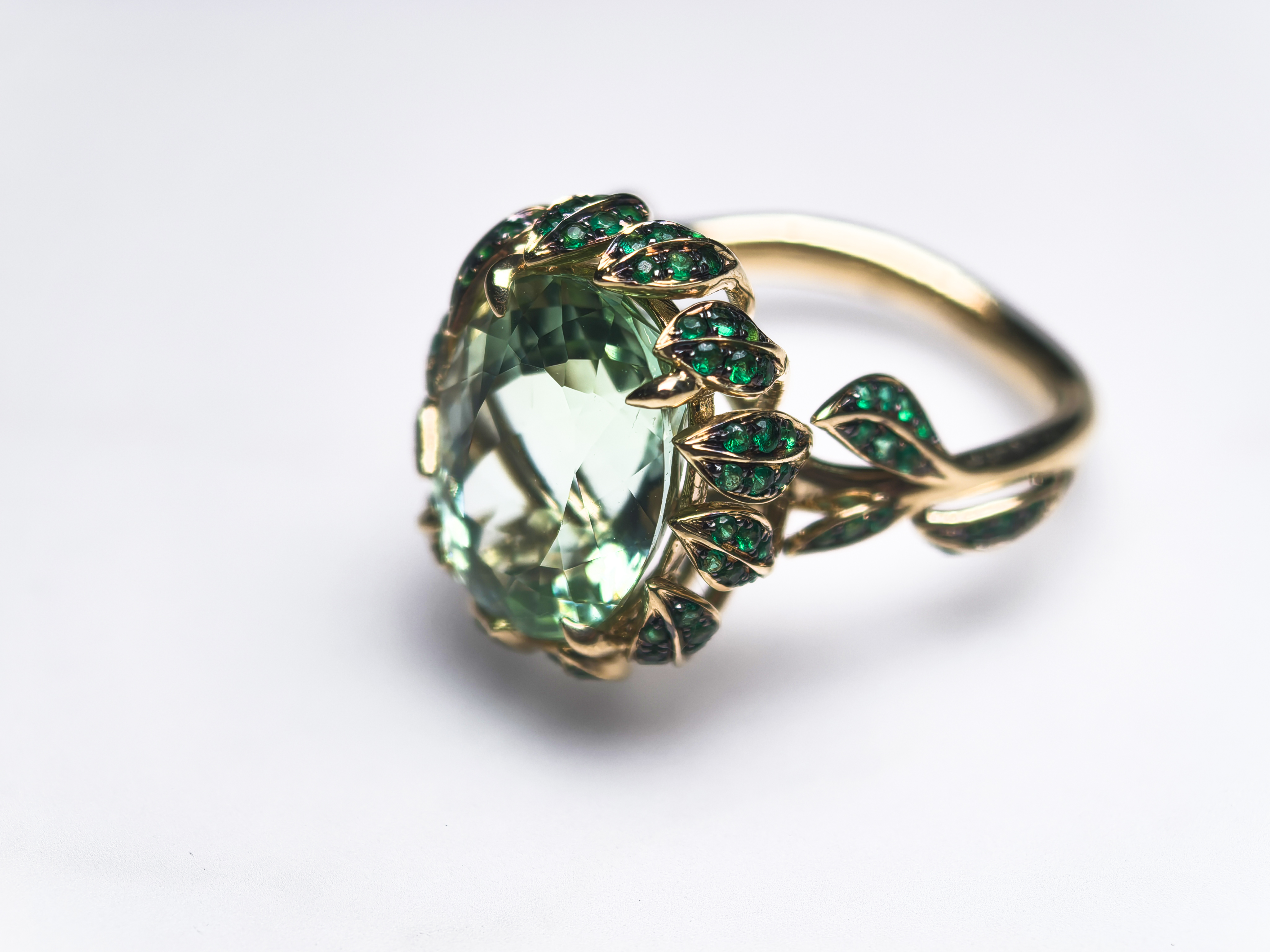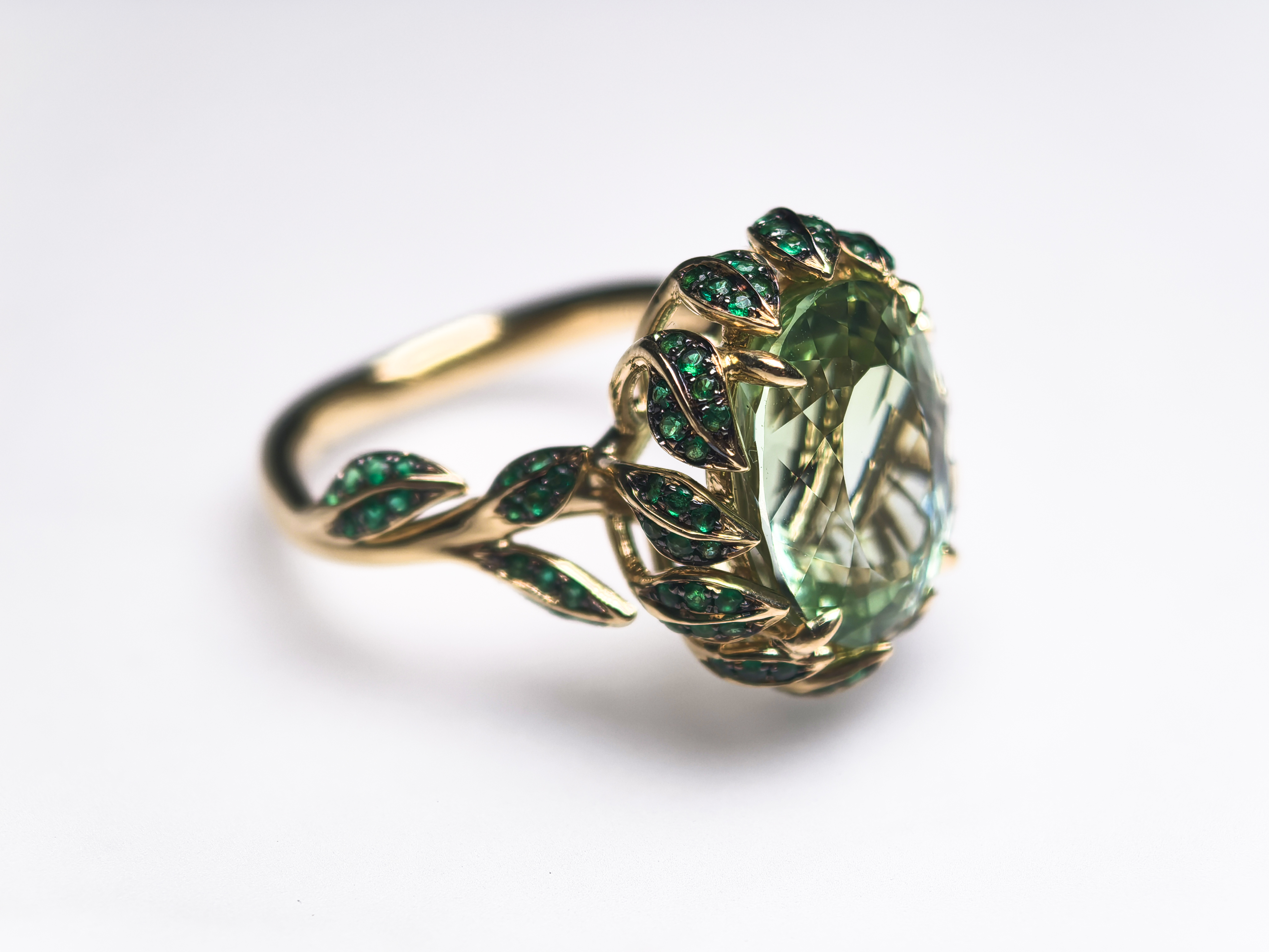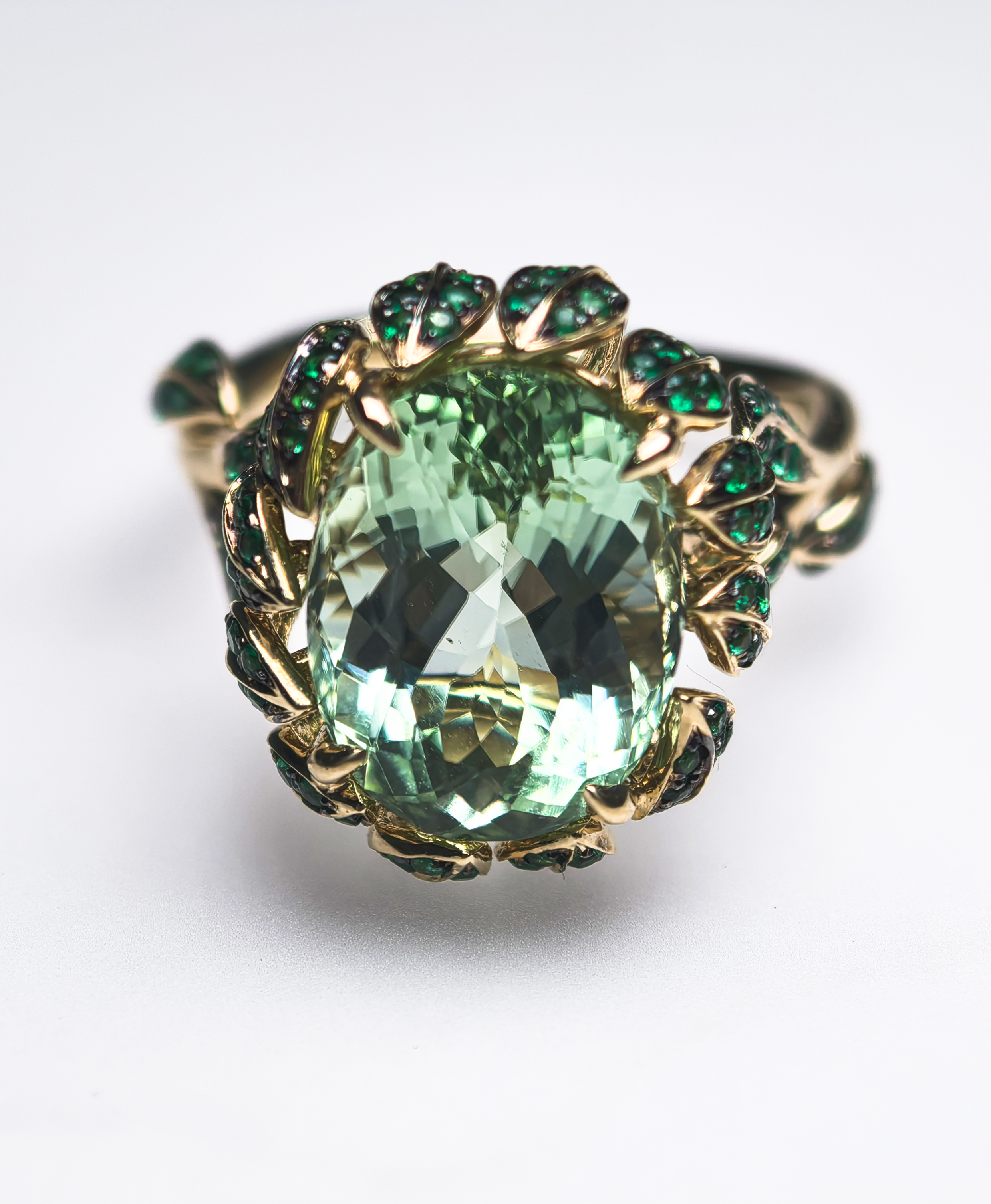 商品材质:18K金 主石:绿色碧玺 其他:祖母绿